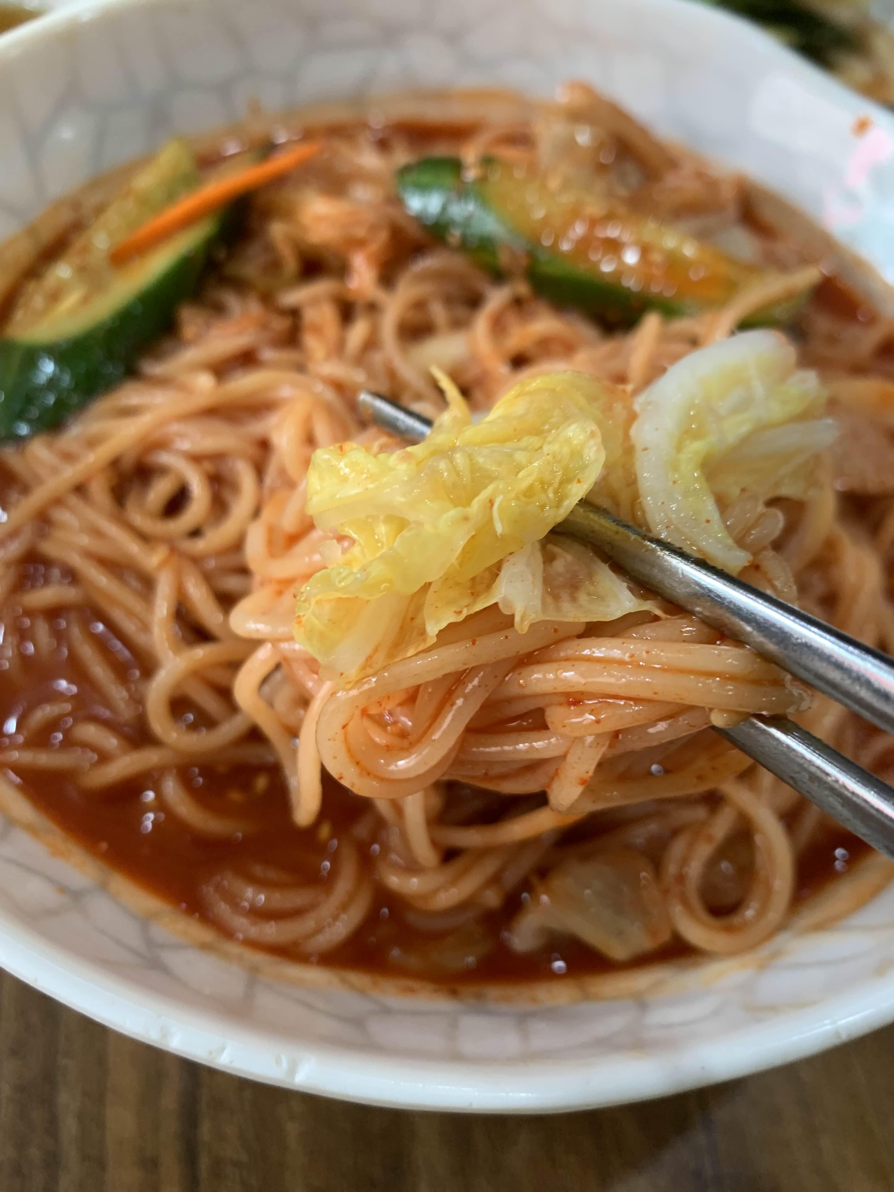 다른 느낌의 양념장이다. 대박비빔국수는... 달달함이 있는 양념맛이다.