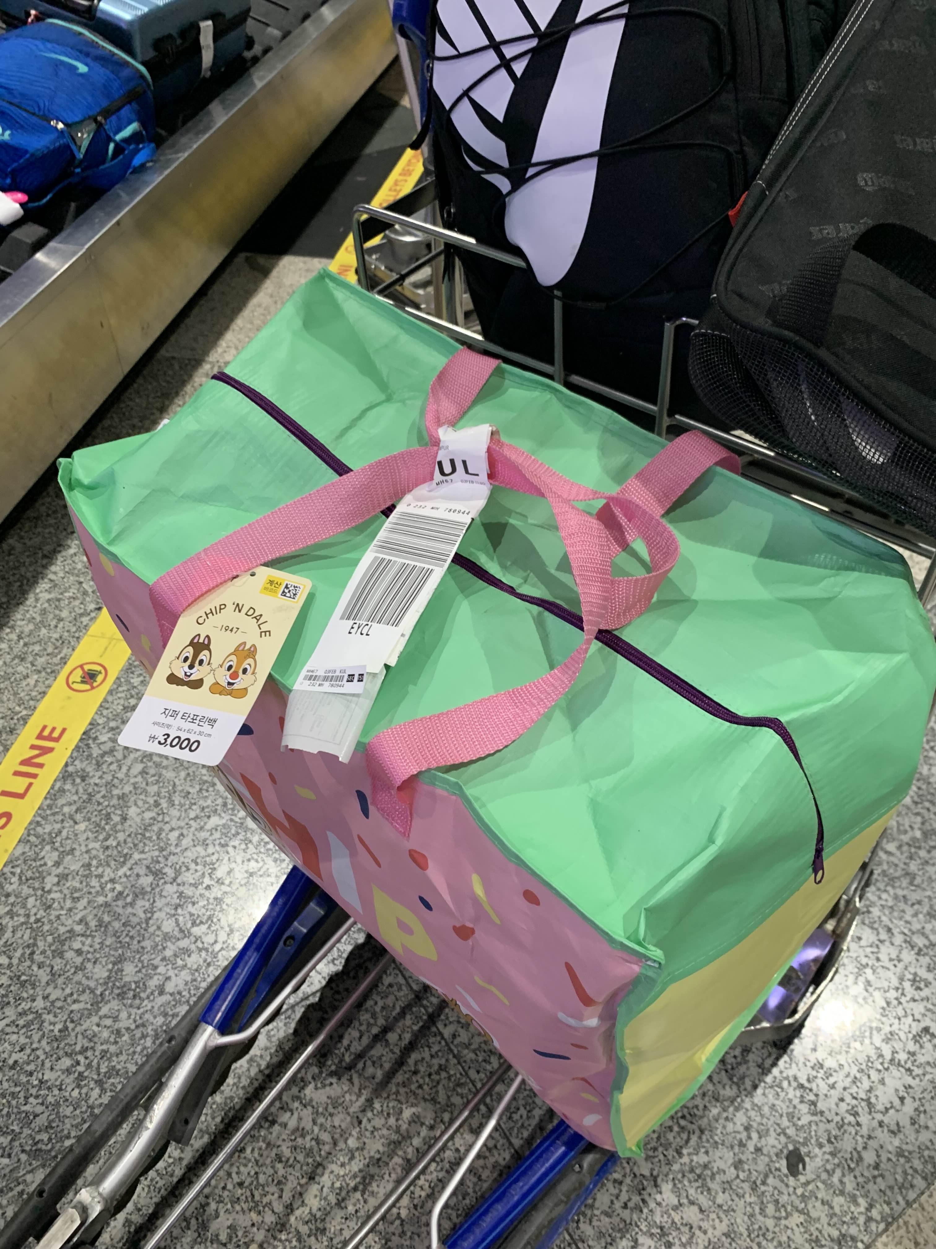 다이소에서 3천 원 구매한 케리어 대용 가방이 잘 나오고 있다.