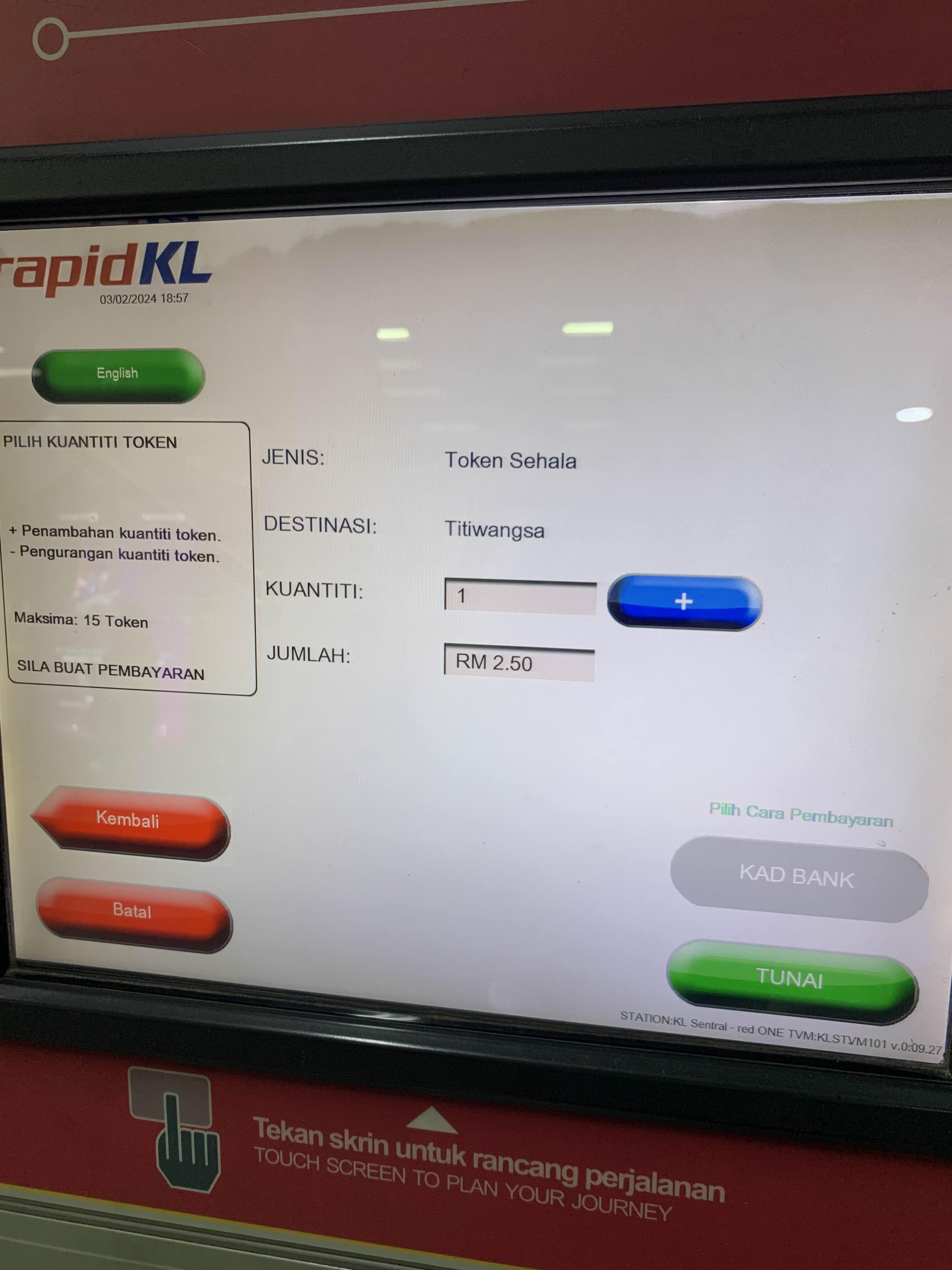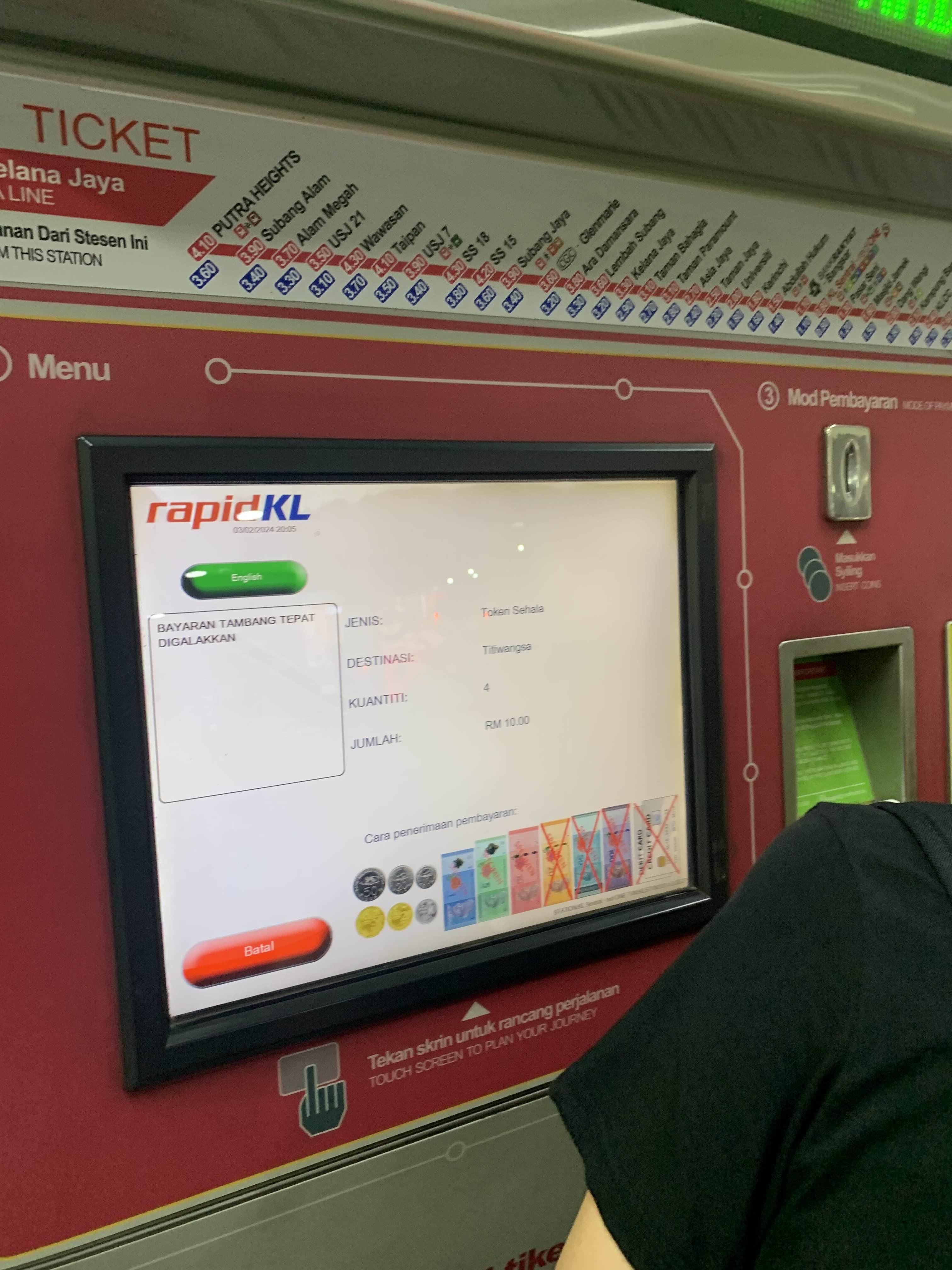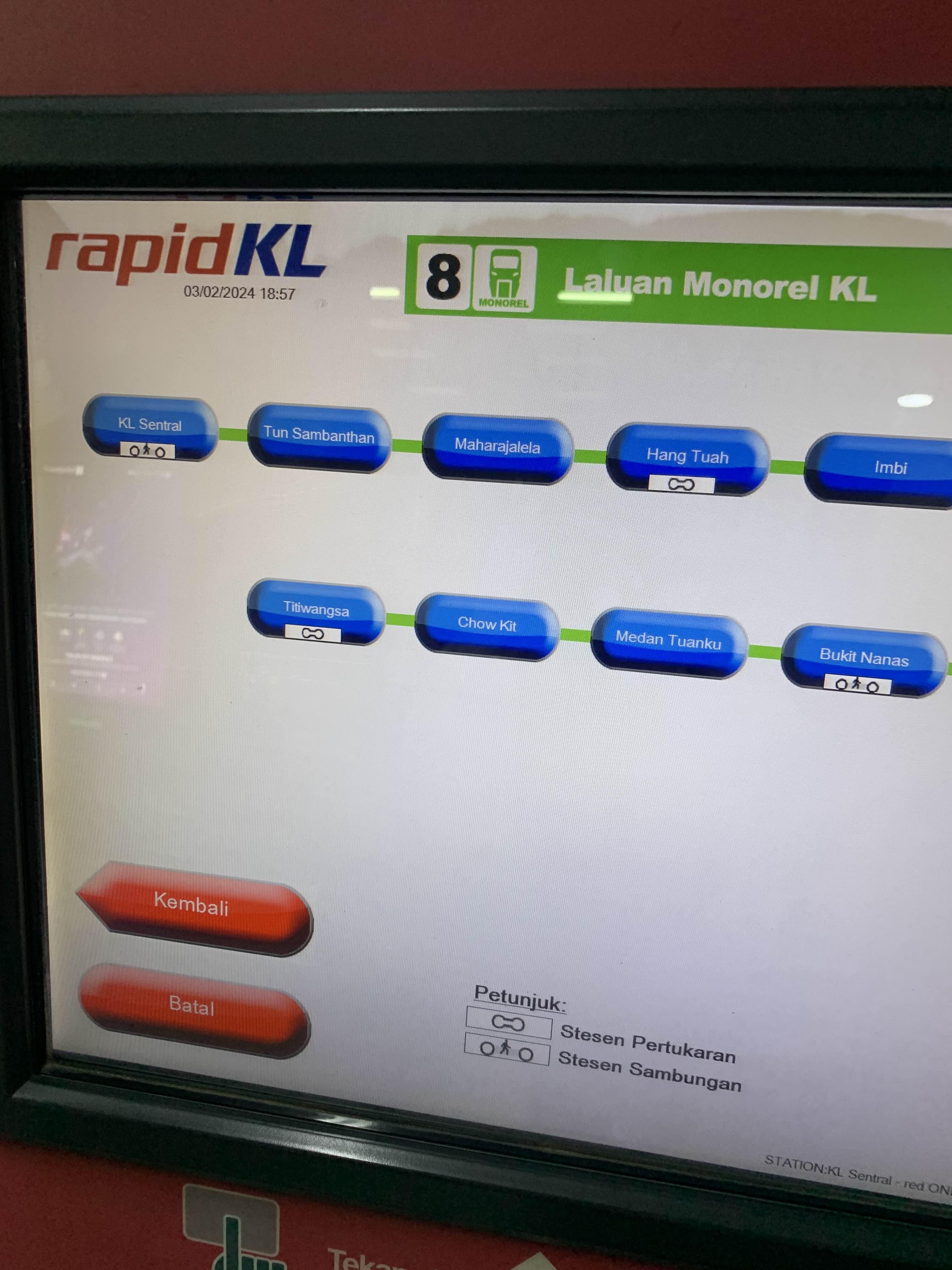 말레이시아는 한국의 대중교통처럼 환승 시스템이 없는 거 같다. 역과 역의 연결이... 다른 역이라.. 밖으로 나가야 하고! 티켓을 새로 구입해야 한다.