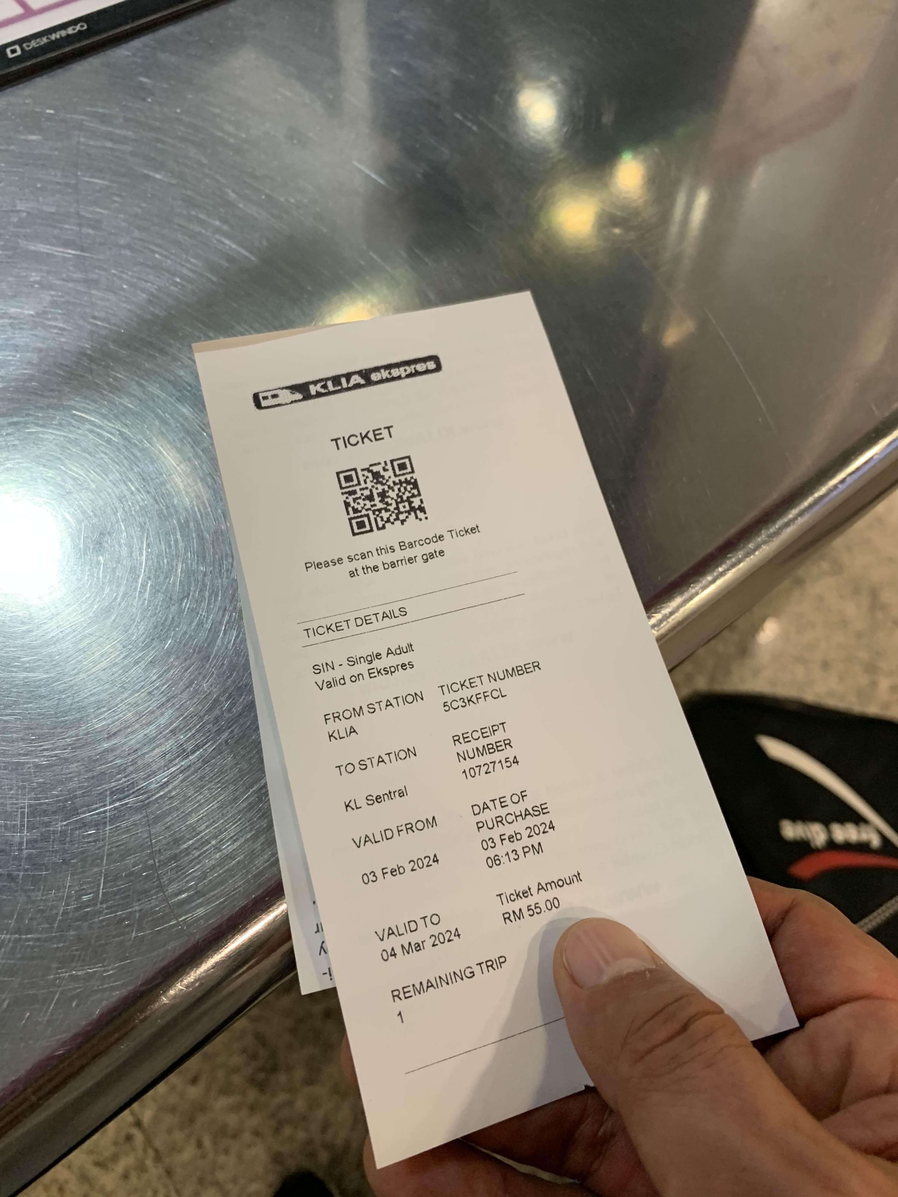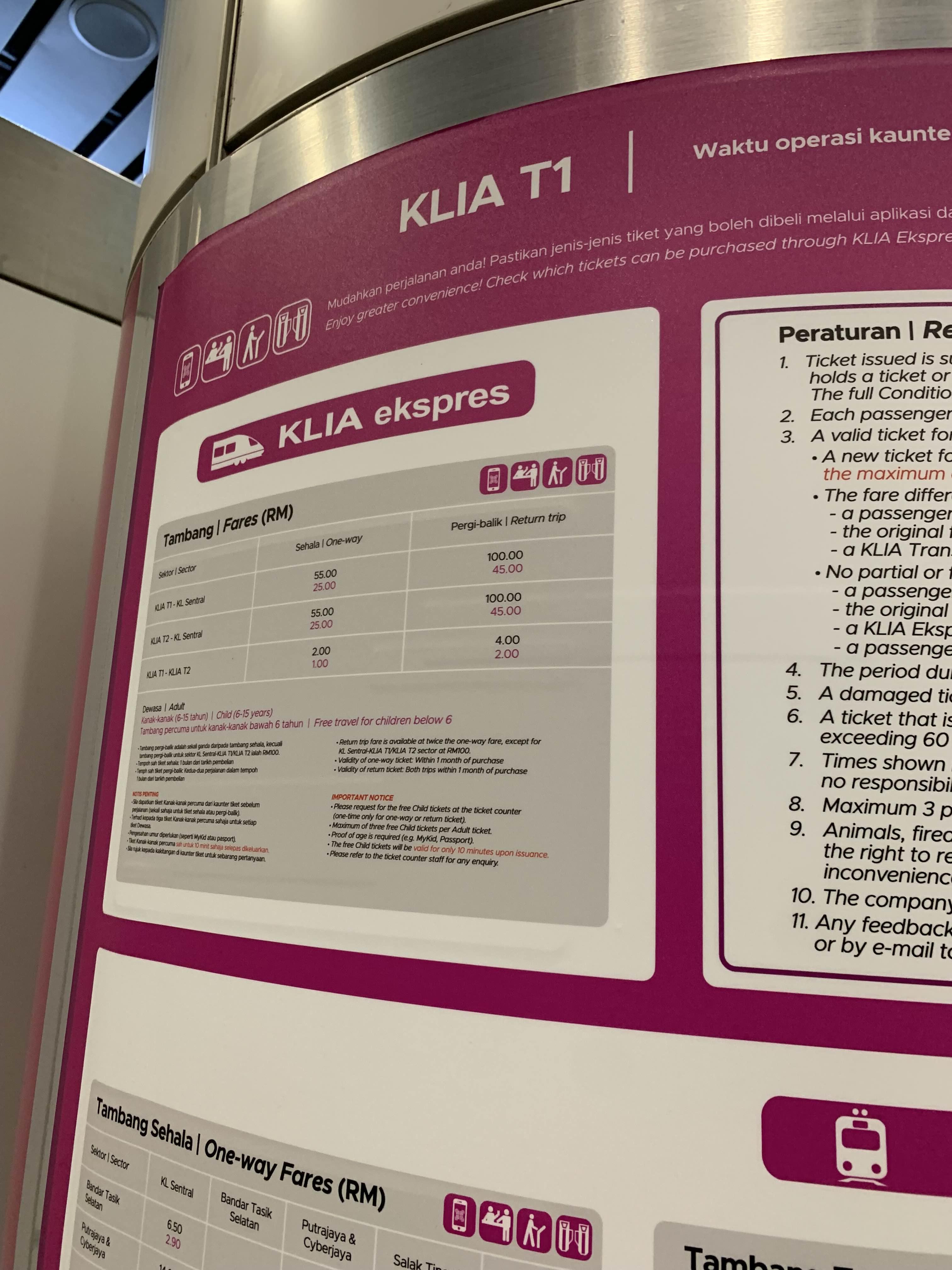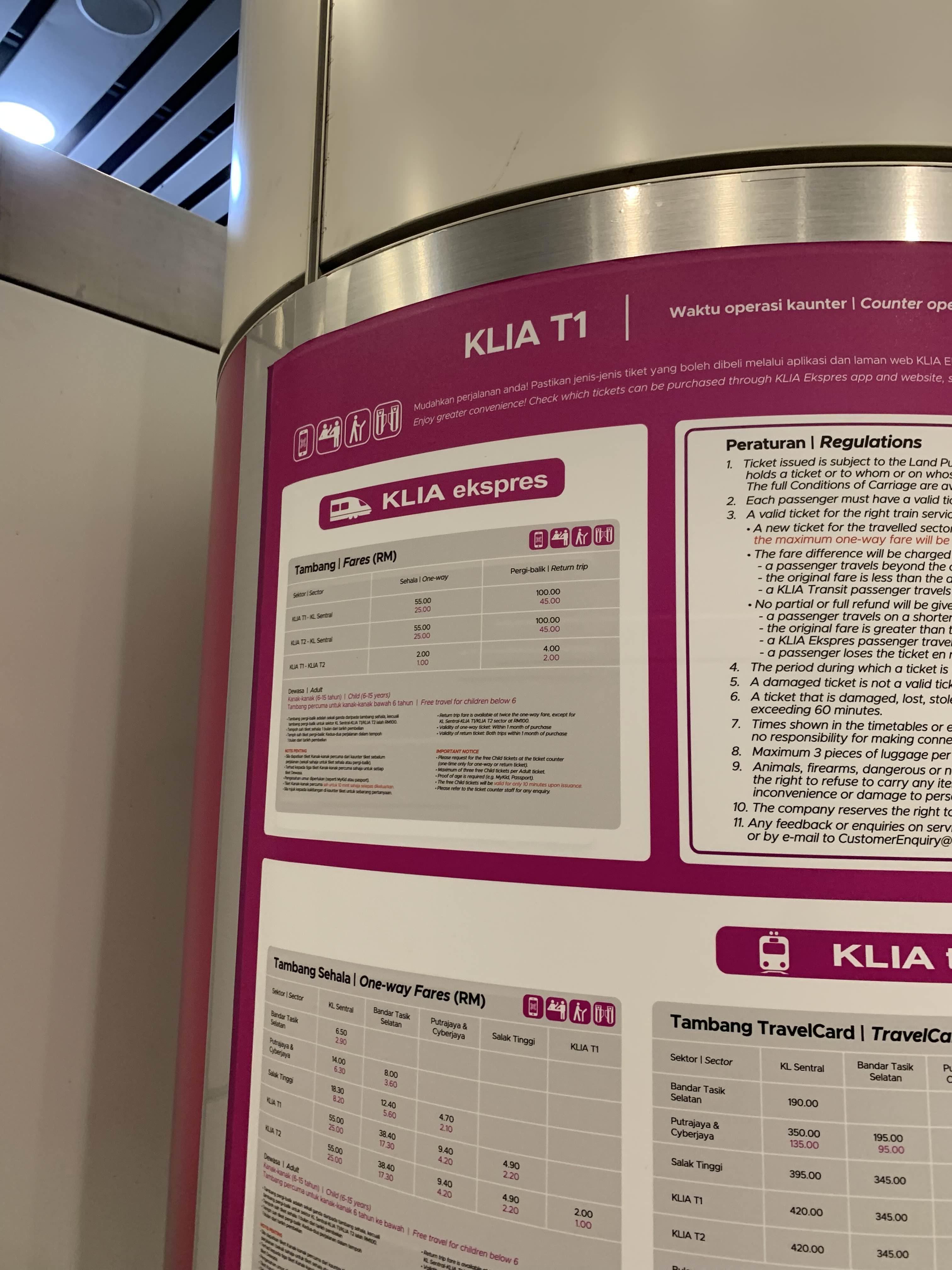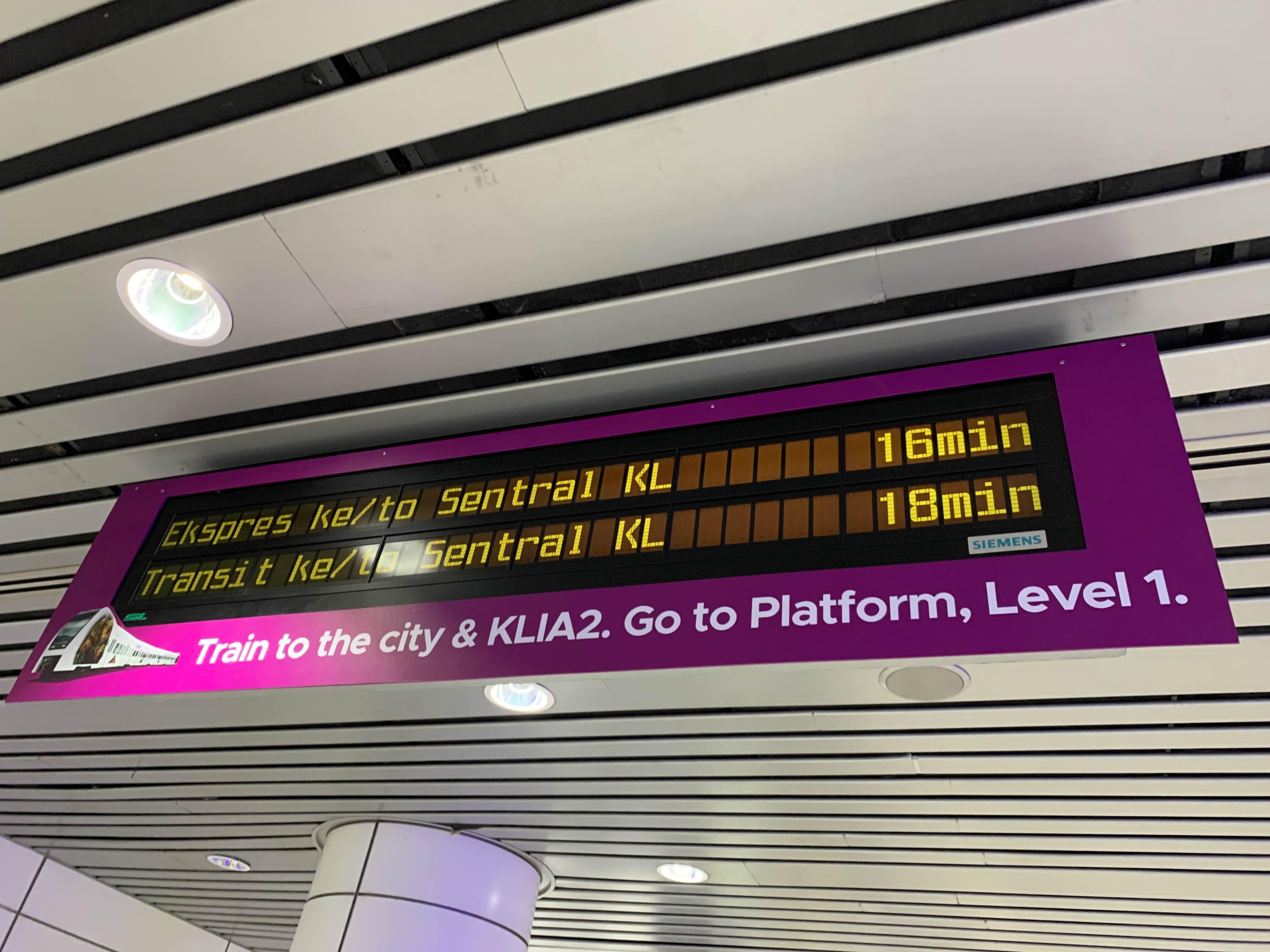 공항철도는 55링깃에 갈 수 있다. 무엇보다 공항철도가 좋은 점은..... 빠른 시간이다. 열차는 20분 간격으로 운행한다.
