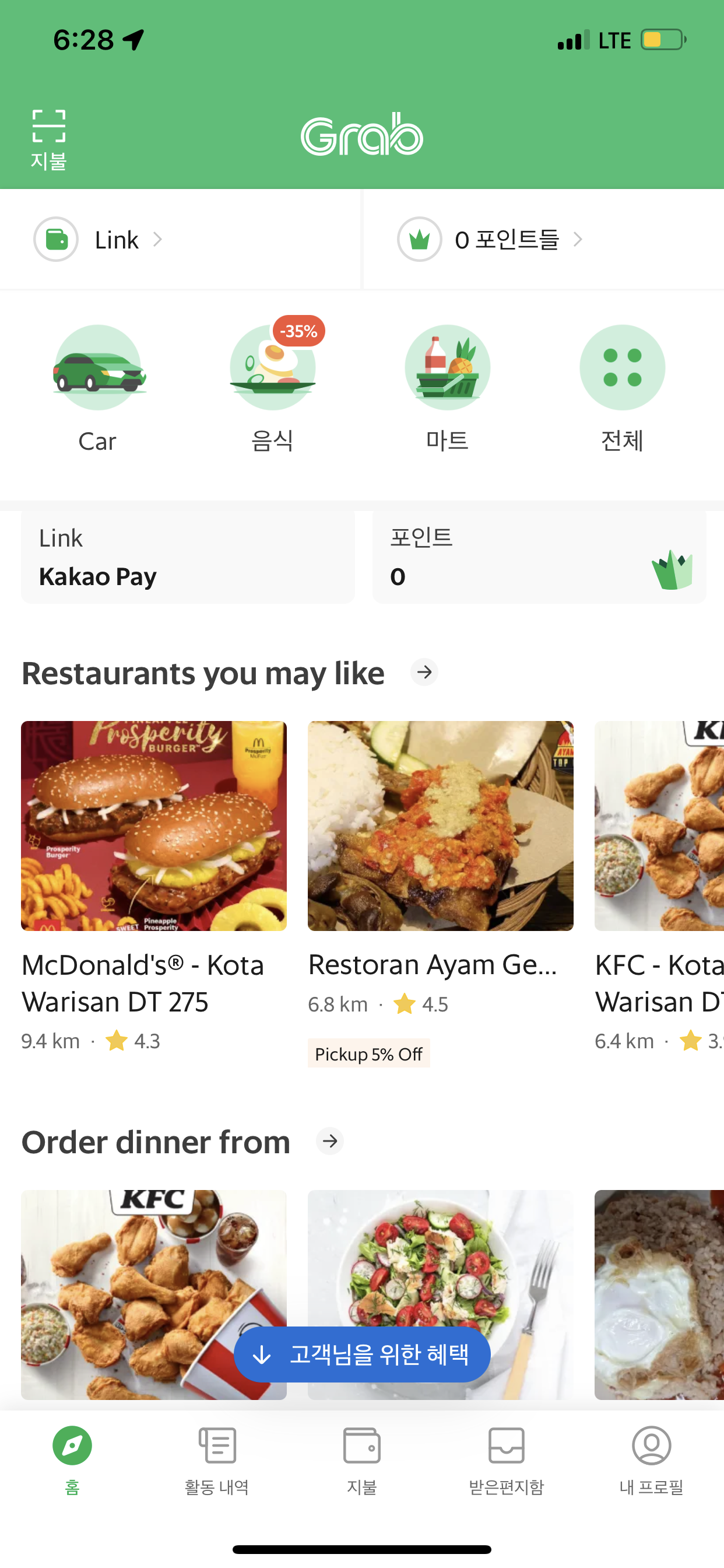 말레이시아에 도착하니... 그랩의 다양한 메뉴가 활성화되었다. 다양한 배달음식, 마트배달이.... ㅎㅎ