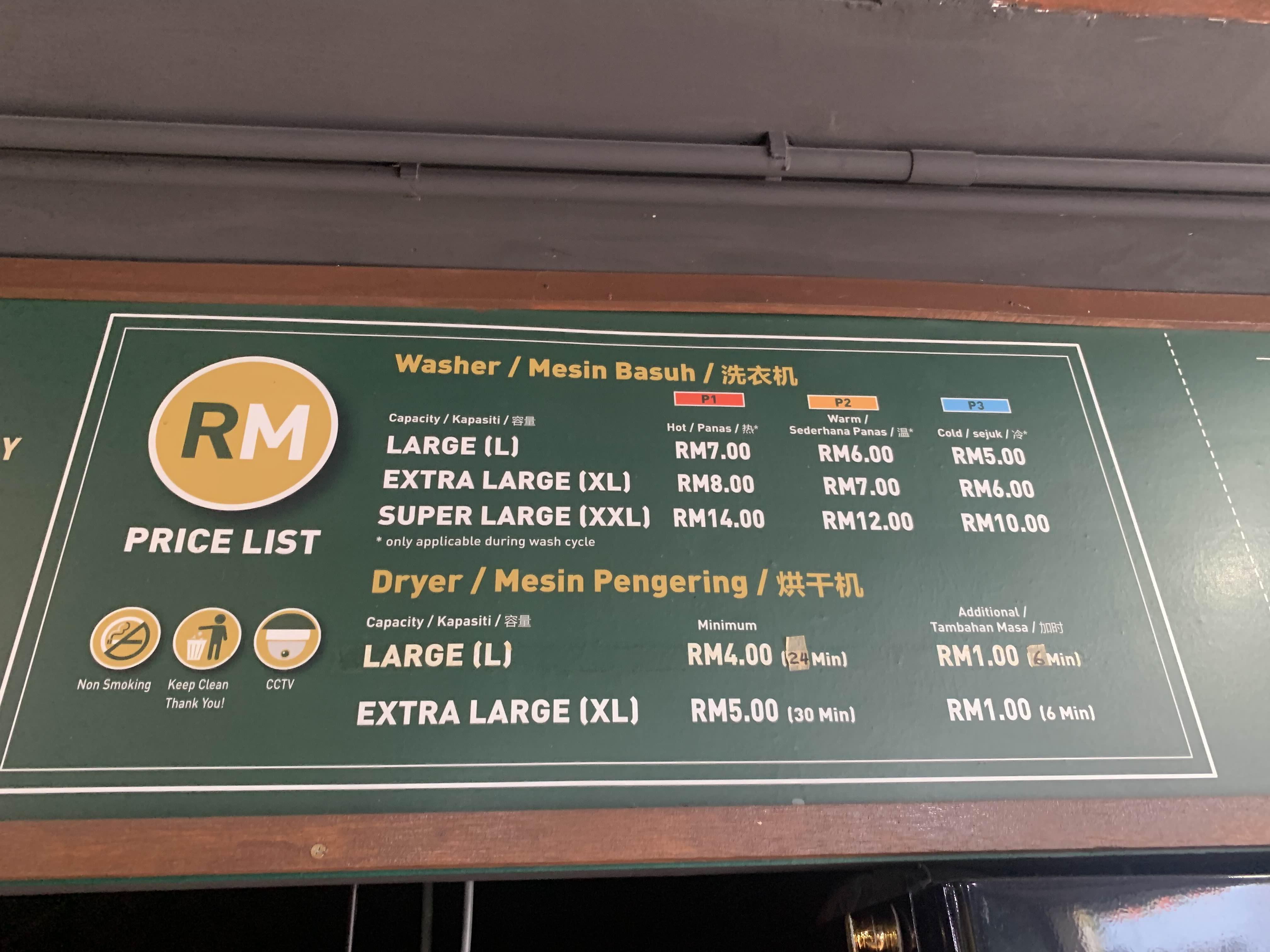 대략 세탁과 건조기를 한 번에 돌리면 15링깃!! 한 번에 맡기는 세탁양이 많으니, 2번을 돌리니 30링깃은 나온다. 대략 9,000원 정도인데...