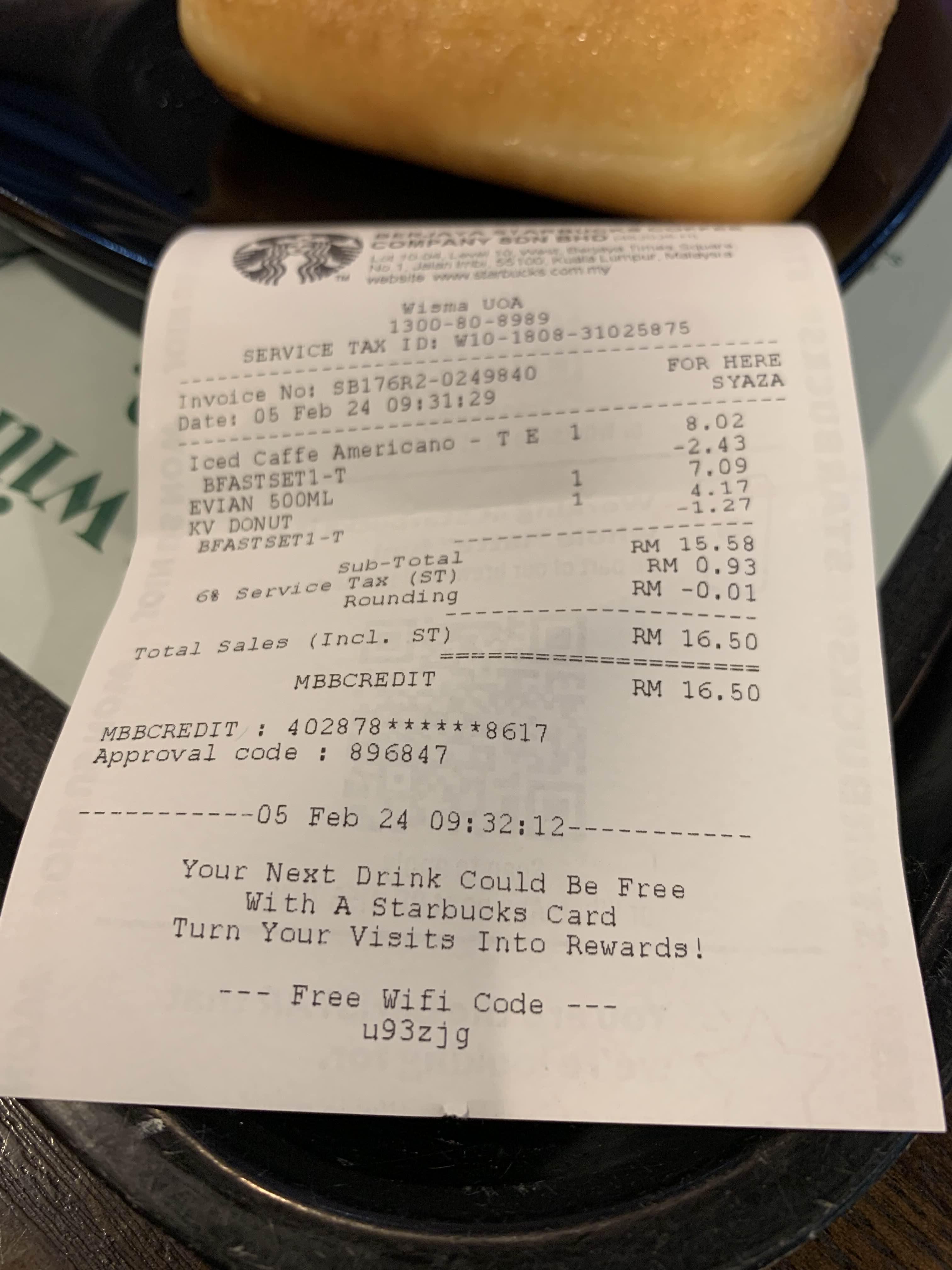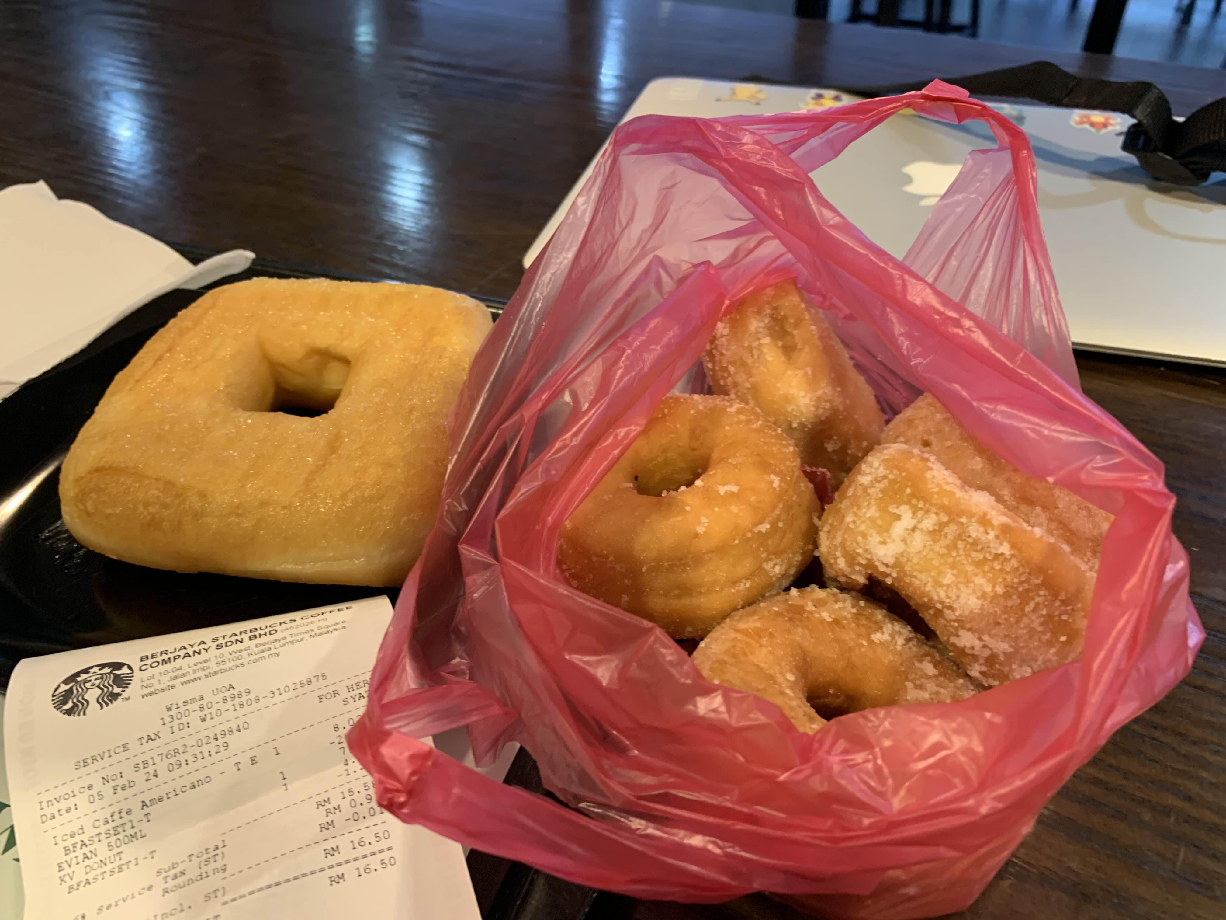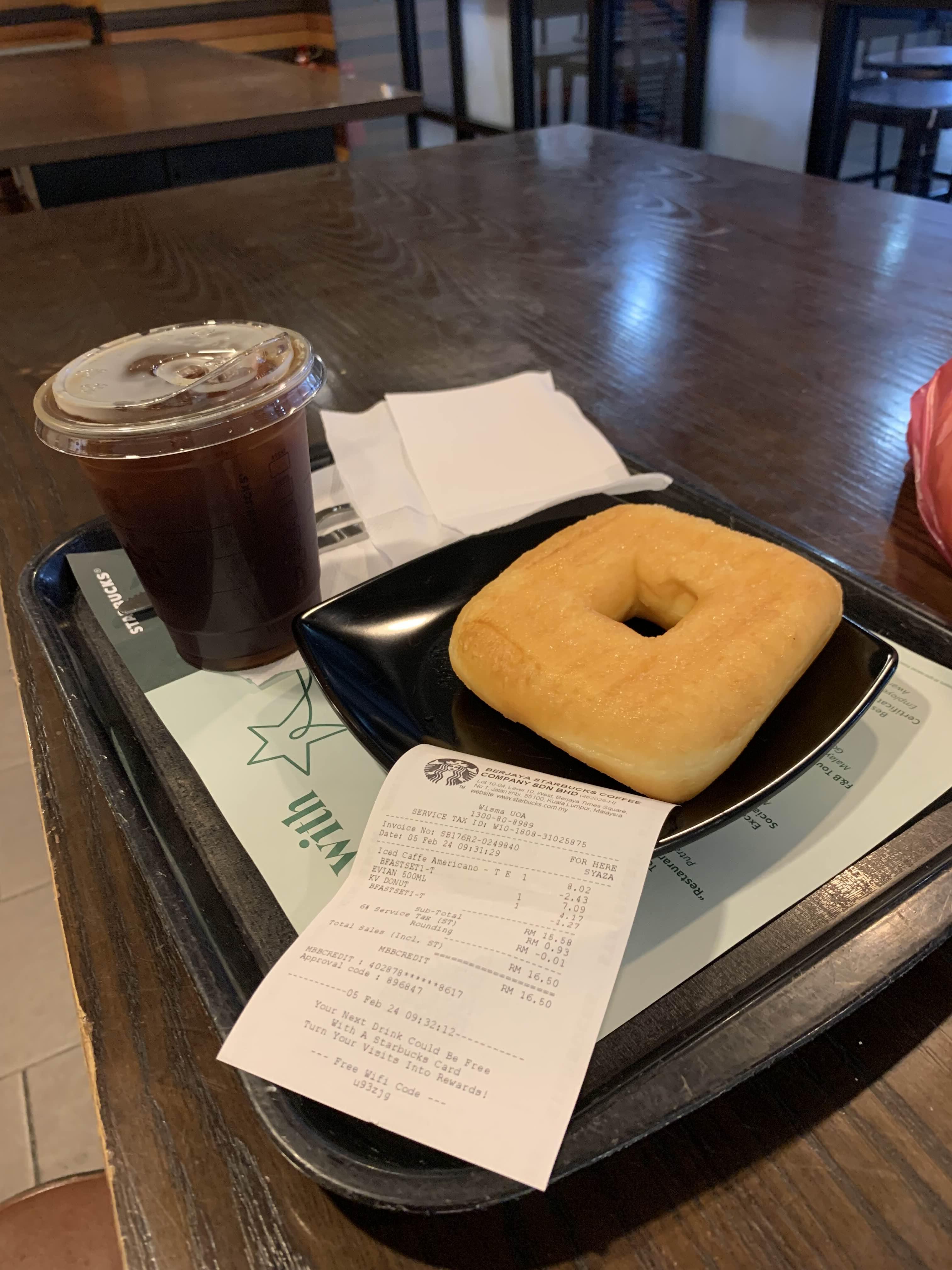 스타벅스는 아메리카노와 도넛세트는 대략 9 링킷!! 2,700원 정도 한다.