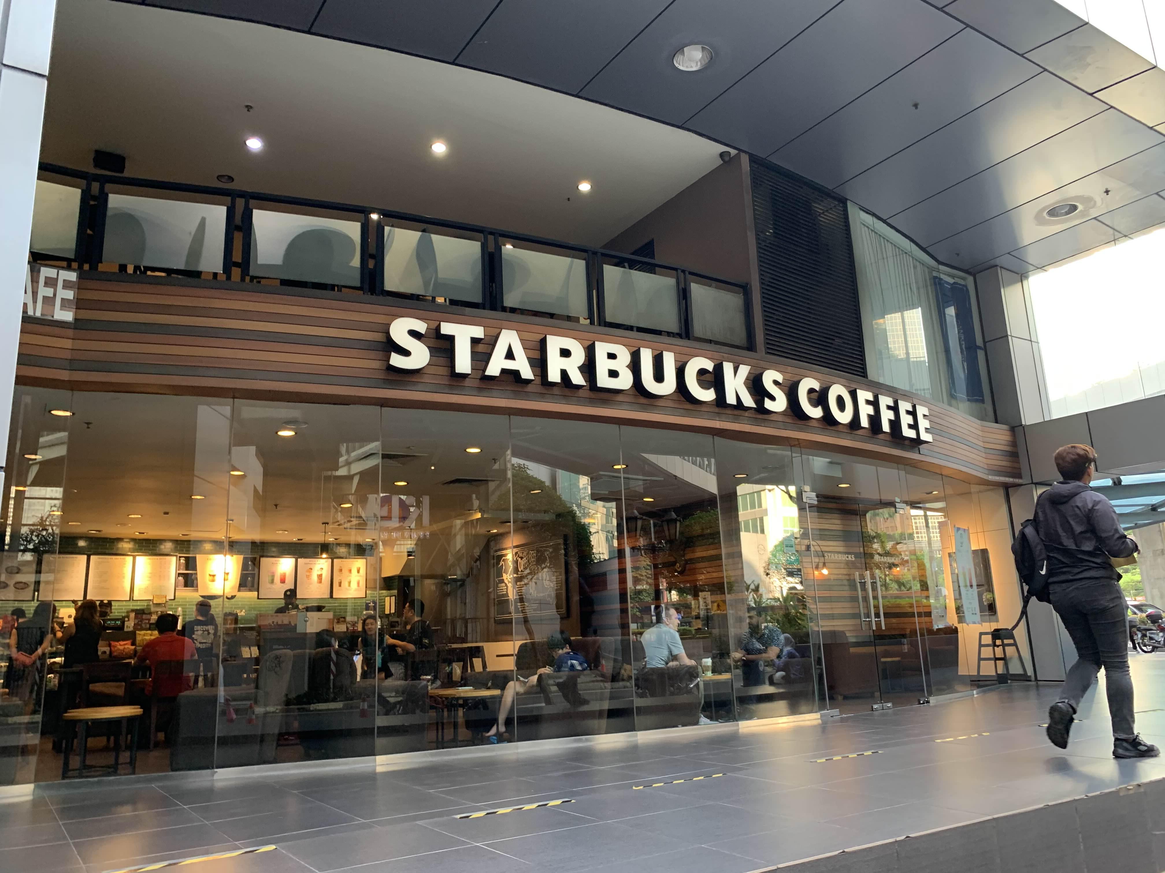스타벅스는 아침세트로 할인 판매를 진행한다.