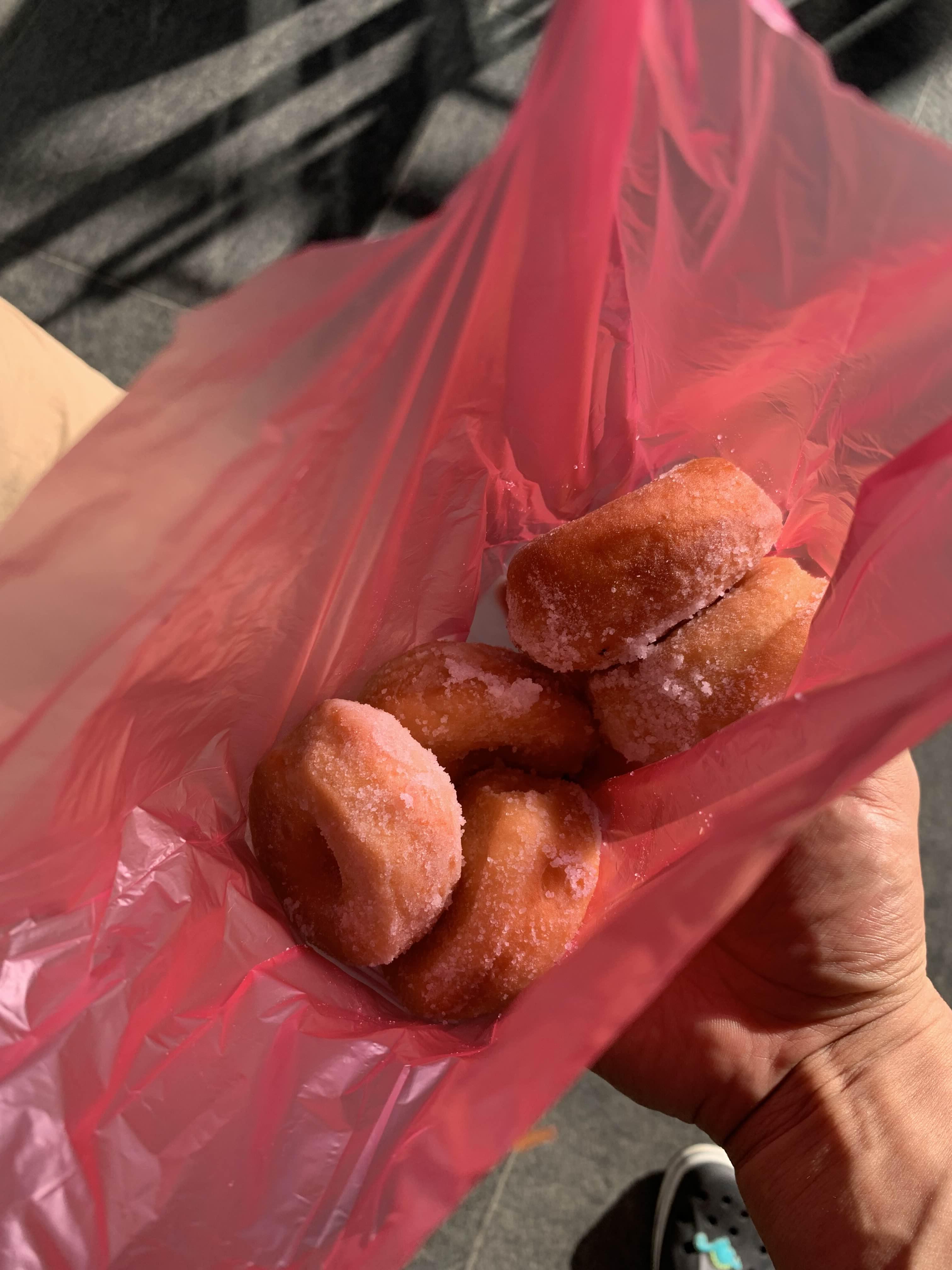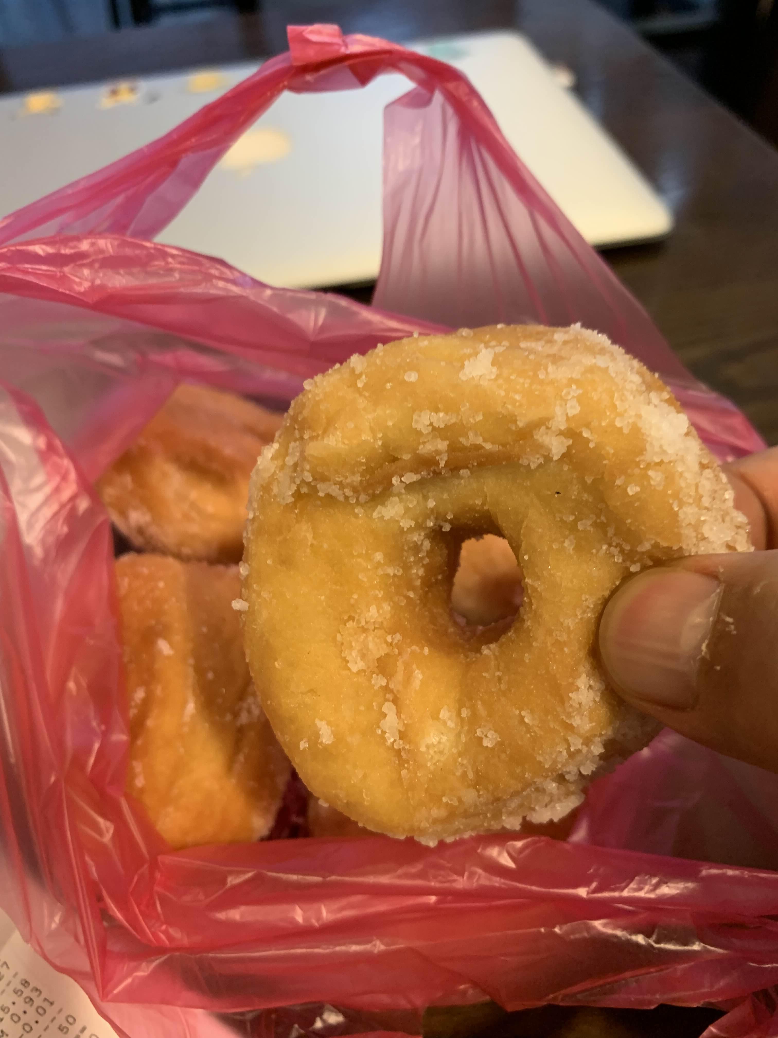 역시 달달한 설탕이 적절하게 묻어있는... 길거리야 도넛 맛이 좋다.