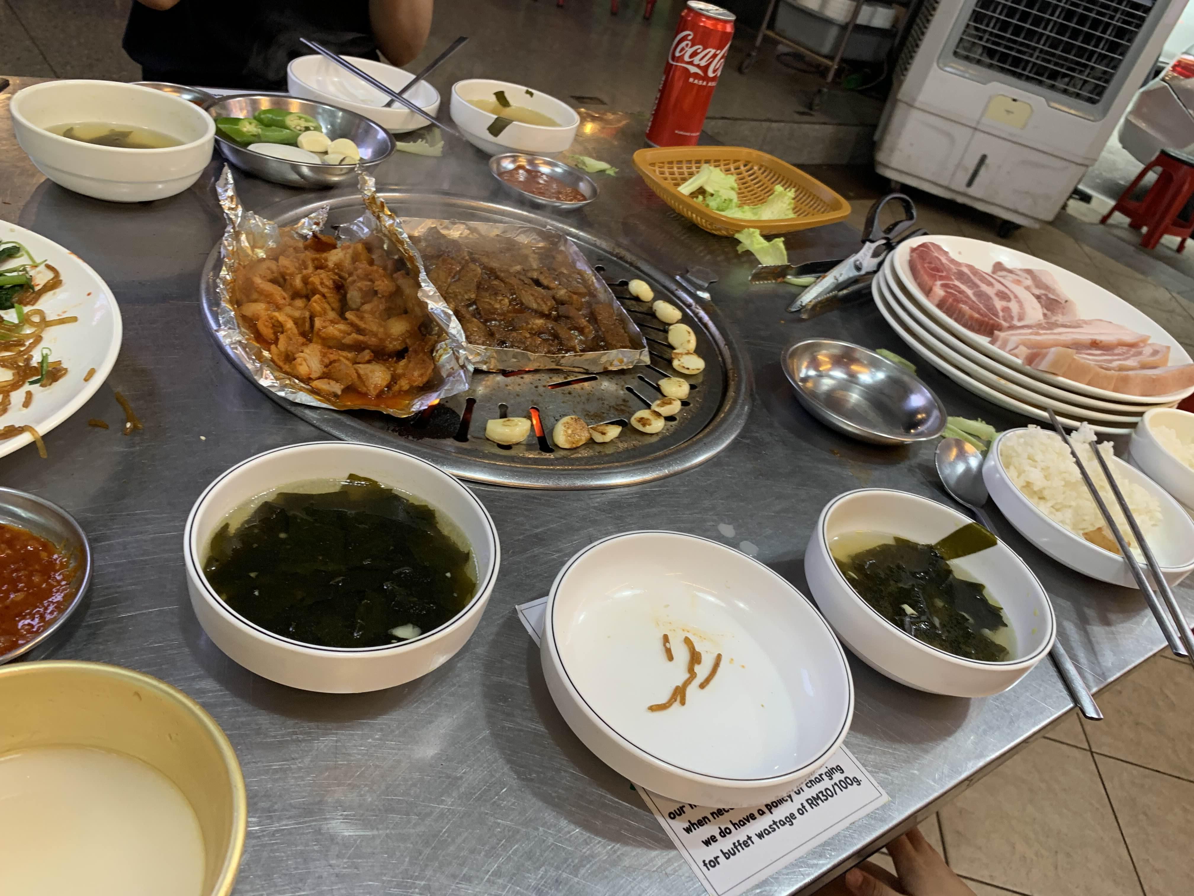 미역국과 공깃밥도 뷔페 고깃값에 포함되어 있다.