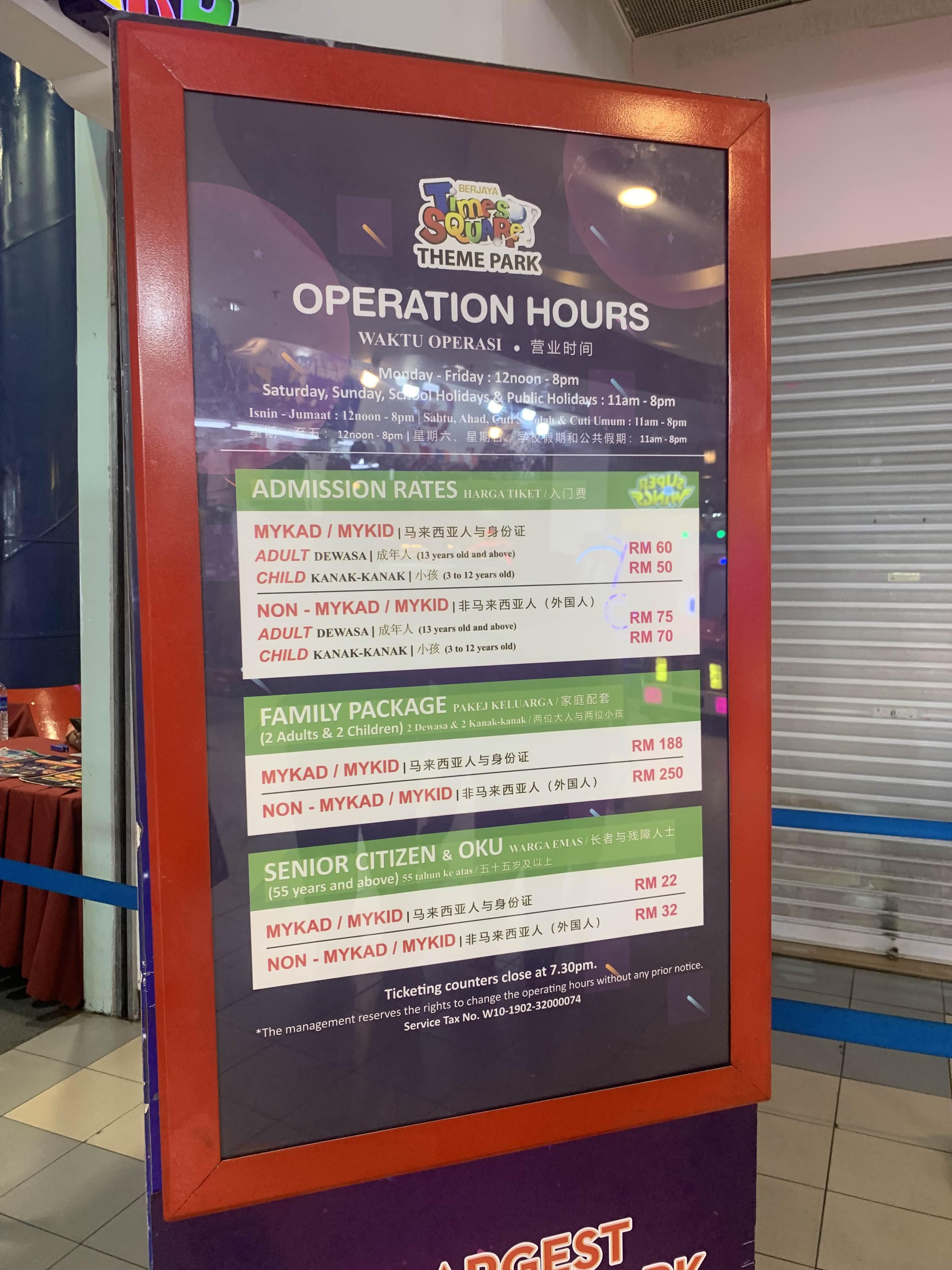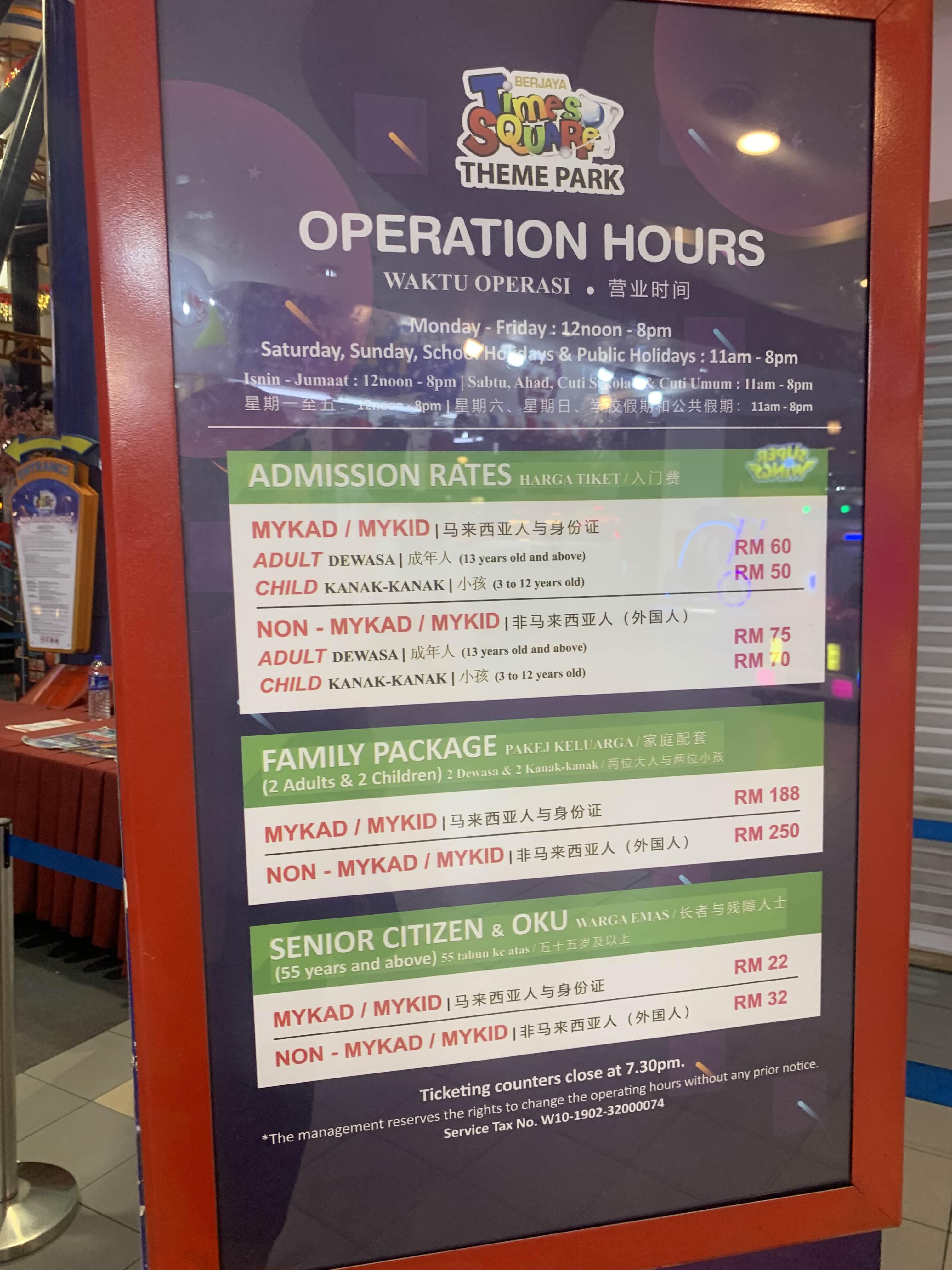 말레이시아인은 60링깃, 그 외 사람들은 75링깃(22,500원)으로 가격은 상당히 비싸더군요. 테마파크의 가격이 2만 원 정도면... 그렇게 비싸다고 할 수는 없지만... 내부 규모면에서는.... 상당히 작은 테마파크입니다.