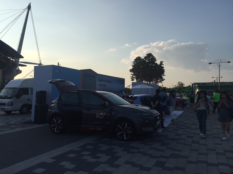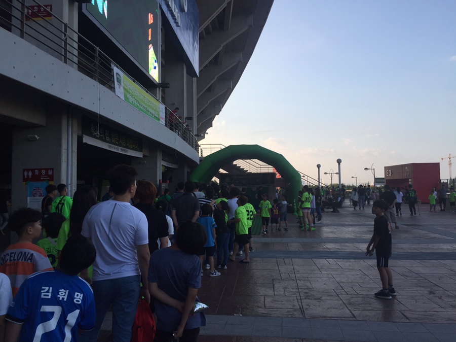 경기 시간 한 시간? 전에 도착해서 경기장에 들어서는데.... 매표소에는 입장권을 구매하는 사람들이 꽤 많이 있었네요. 오늘 관중이 꽤 많을 거 같습니다. 아이와 시즌권이 있어서 매표소는 패스, 현대자동차 코나 행사장도 패스~ 나중에 소나타 상위 차량을 구매할 생각이어서 코나 행사장도 패스, 아이가 좋아하는 슛돌이 게임으로 직행했습니다. 일몰시간이 경기가 진행되어 그렇게 덮지 않겠다고 생각했으나,,,,, 날씨가 무지 더웠습니다.