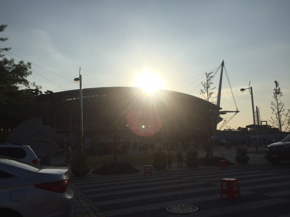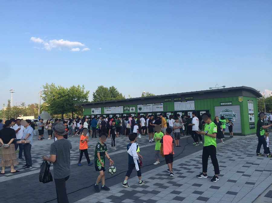 경기 시간 한 시간? 전에 도착해서 경기장에 들어서는데.... 매표소에는 입장권을 구매하는 사람들이 꽤 많이 있었네요. 오늘 관중이 꽤 많을 거 같습니다. 아이와 시즌권이 있어서 매표소는 패스, 현대자동차 코나 행사장도 패스~ 나중에 소나타 상위 차량을 구매할 생각이어서 코나 행사장도 패스, 아이가 좋아하는 슛돌이 게임으로 직행했습니다. 일몰시간이 경기가 진행되어 그렇게 덮지 않겠다고 생각했으나,,,,, 날씨가 무지 더웠습니다.