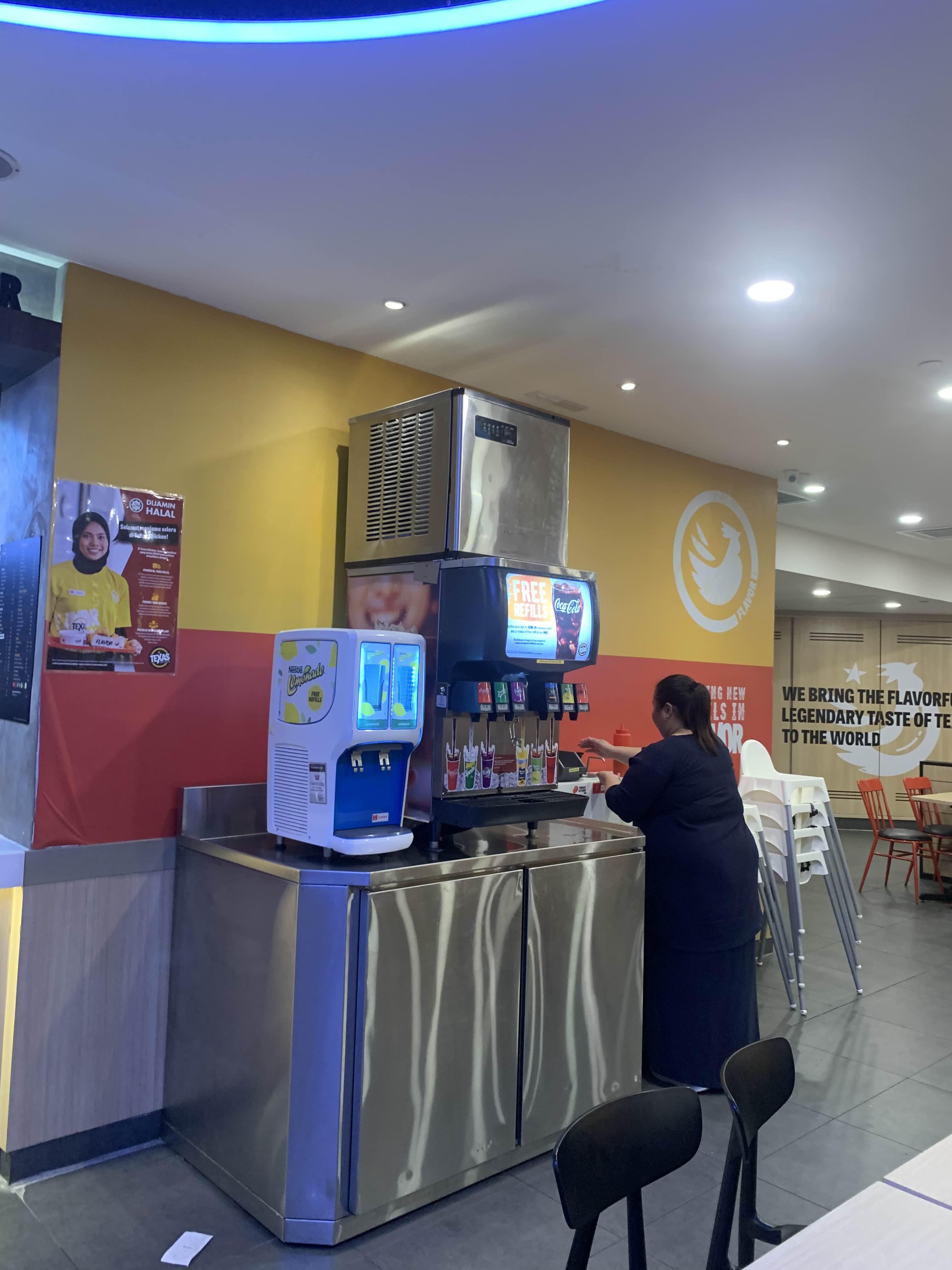 매장에 들어가 보니... 음료수가 리필이 가능하다. 더욱이... 사람들이 치킨을 엄청 맛나게 드신다.
