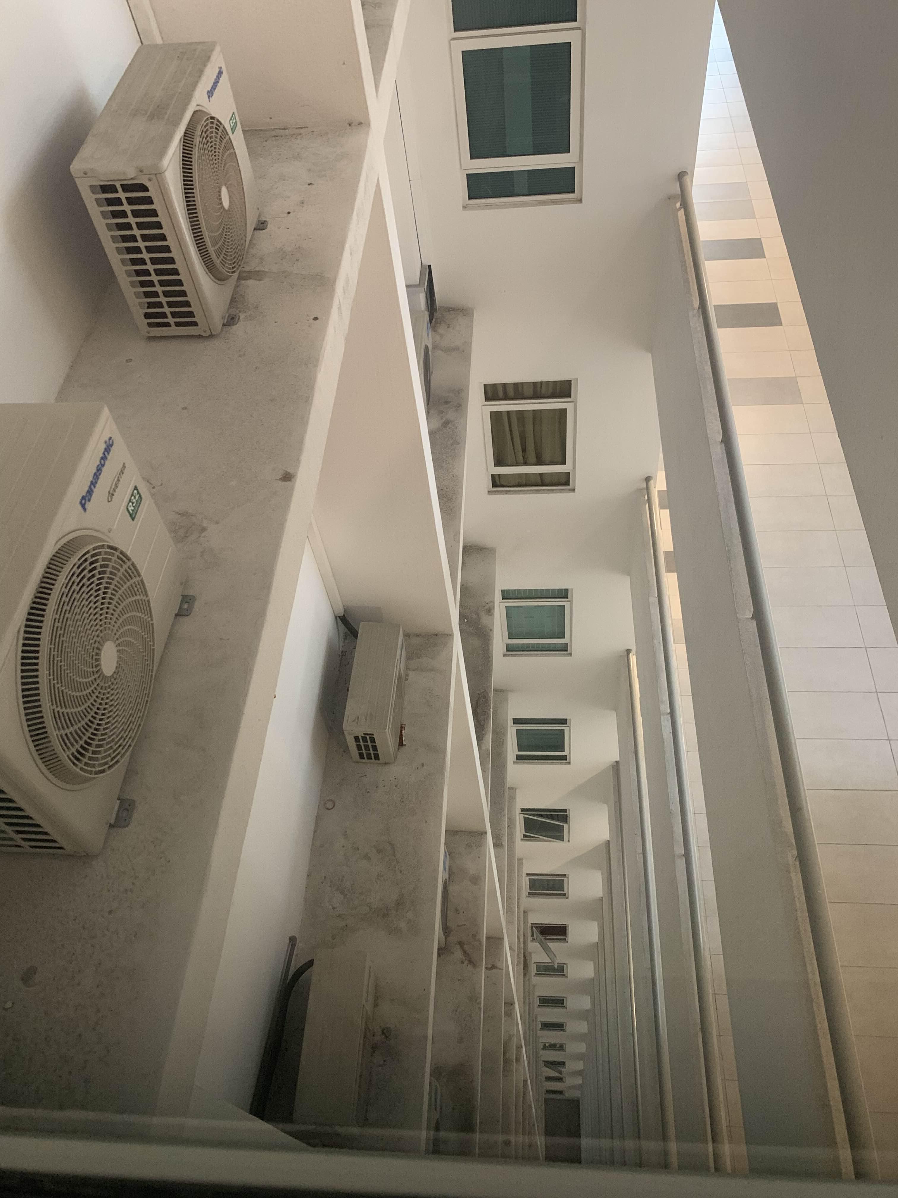 숙소의 환기설비... 하나의 층에 대략 20 가구 정도 구성되어 있다.