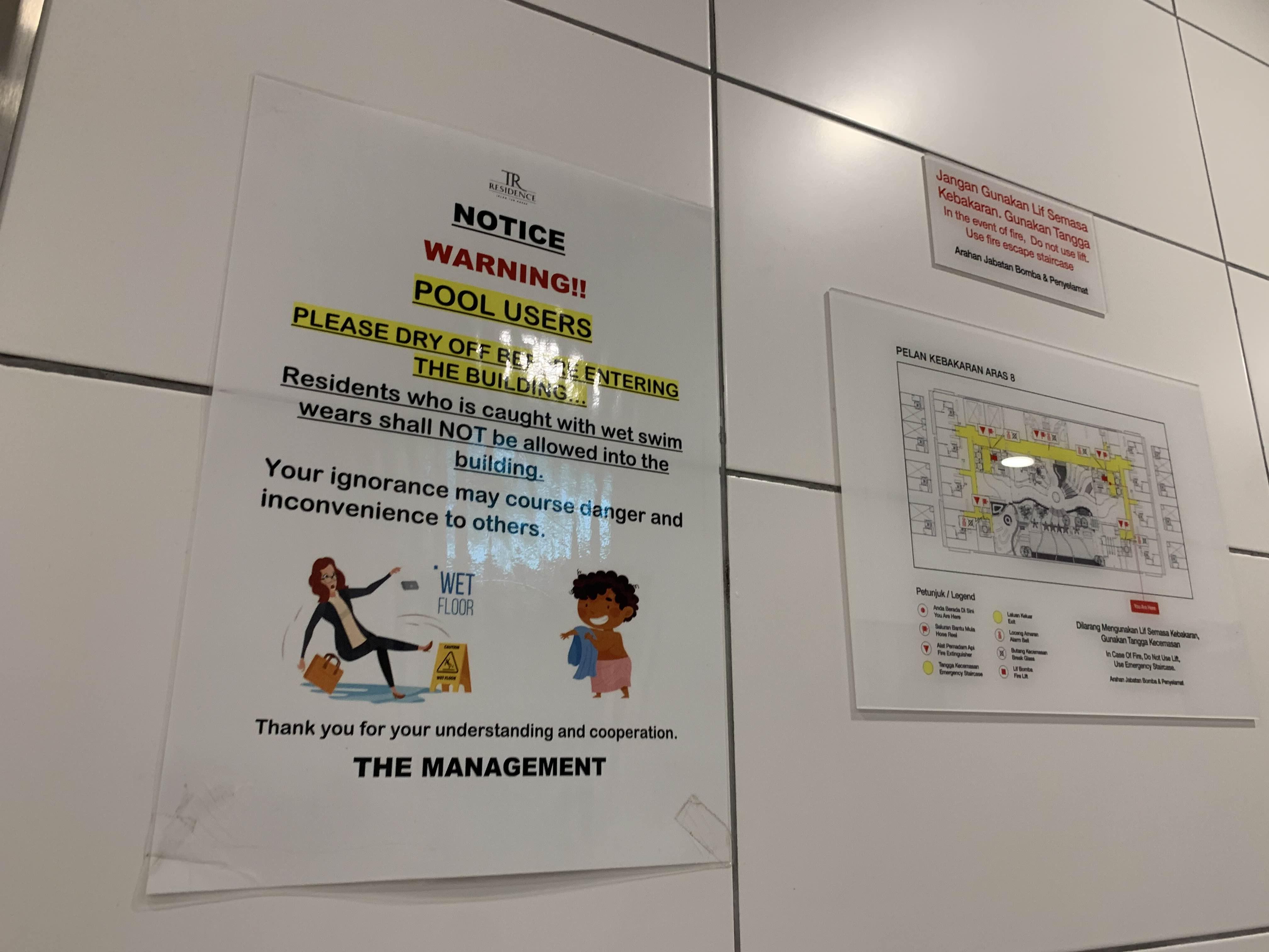 숙소의 거실/주방 및 화장실의 바닥 마감은 타일!! 시원한 바닥타일 마감이다. 우리나라에서도 바닥 마감재를 타일로 설치하는 주택이 많이 있는데.... 타일이 깔끔하기는 하지만, 겨울에는 발이 너무 시리다. 여름..... 일 년 내내 여름인 날씨인 말레이시아에서는 정말 최적의 바닥 마감재라 생각된다.