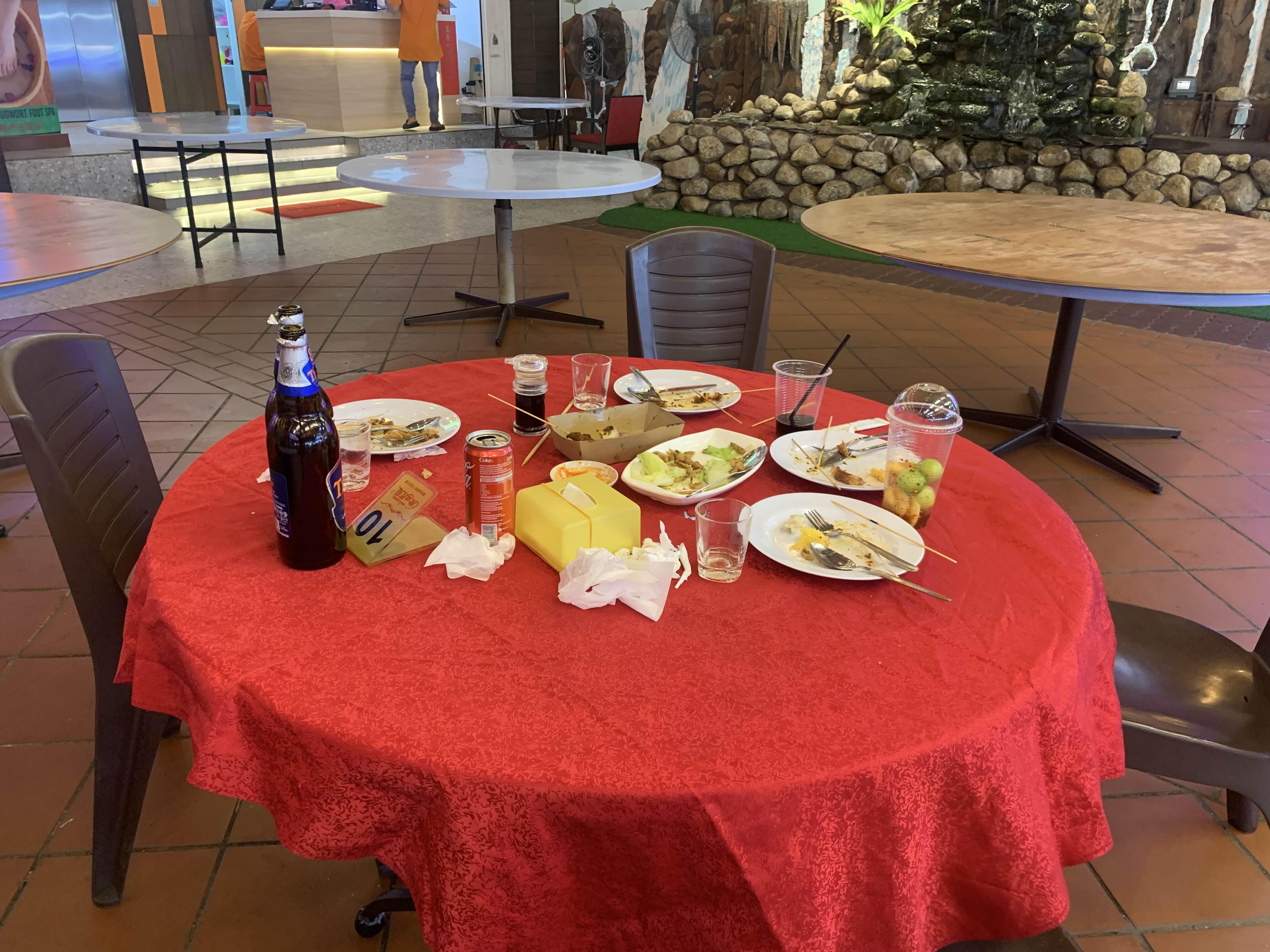 새우튀김이 나오자마자, 주변 테이블을 정리한다.
