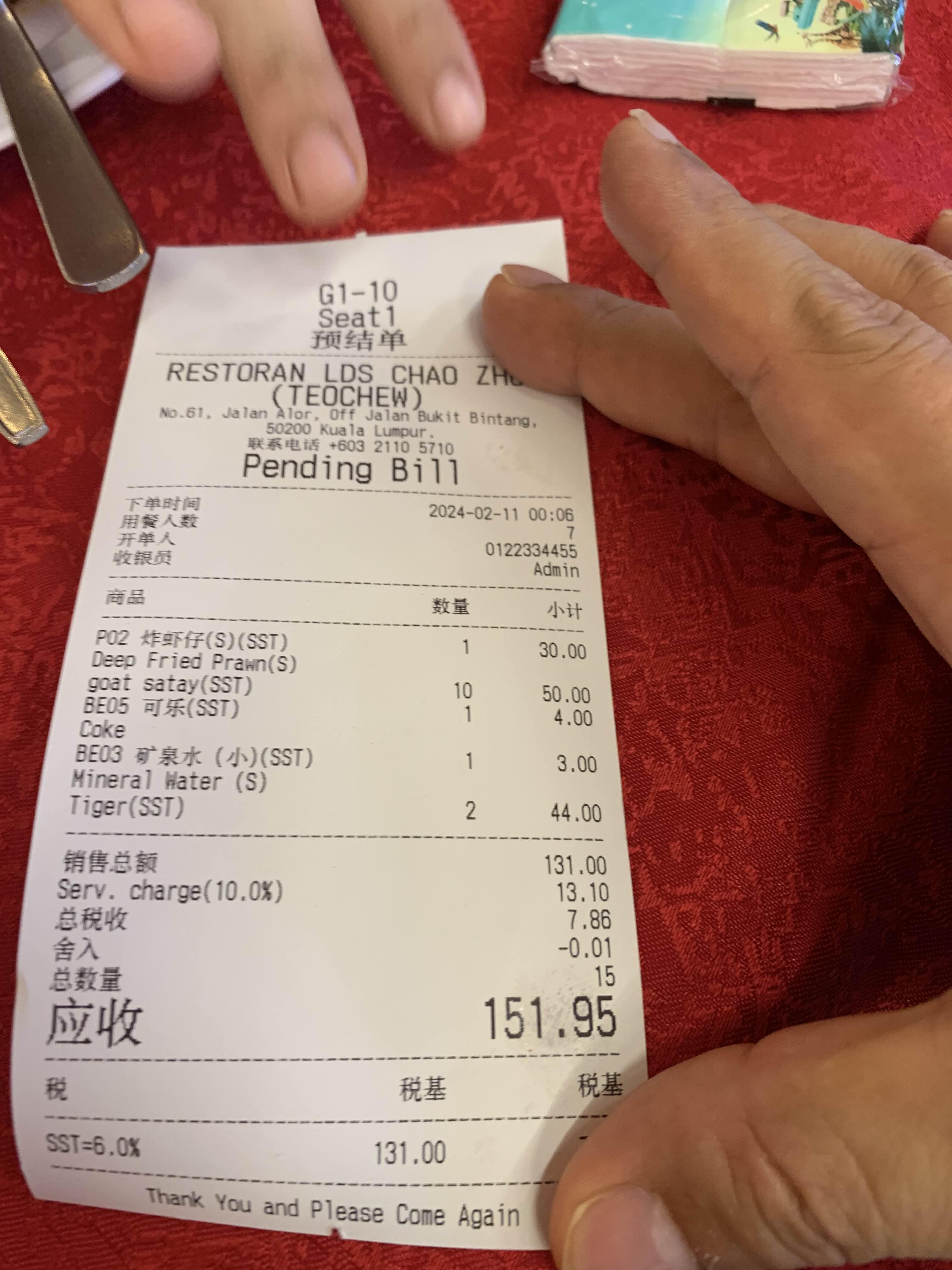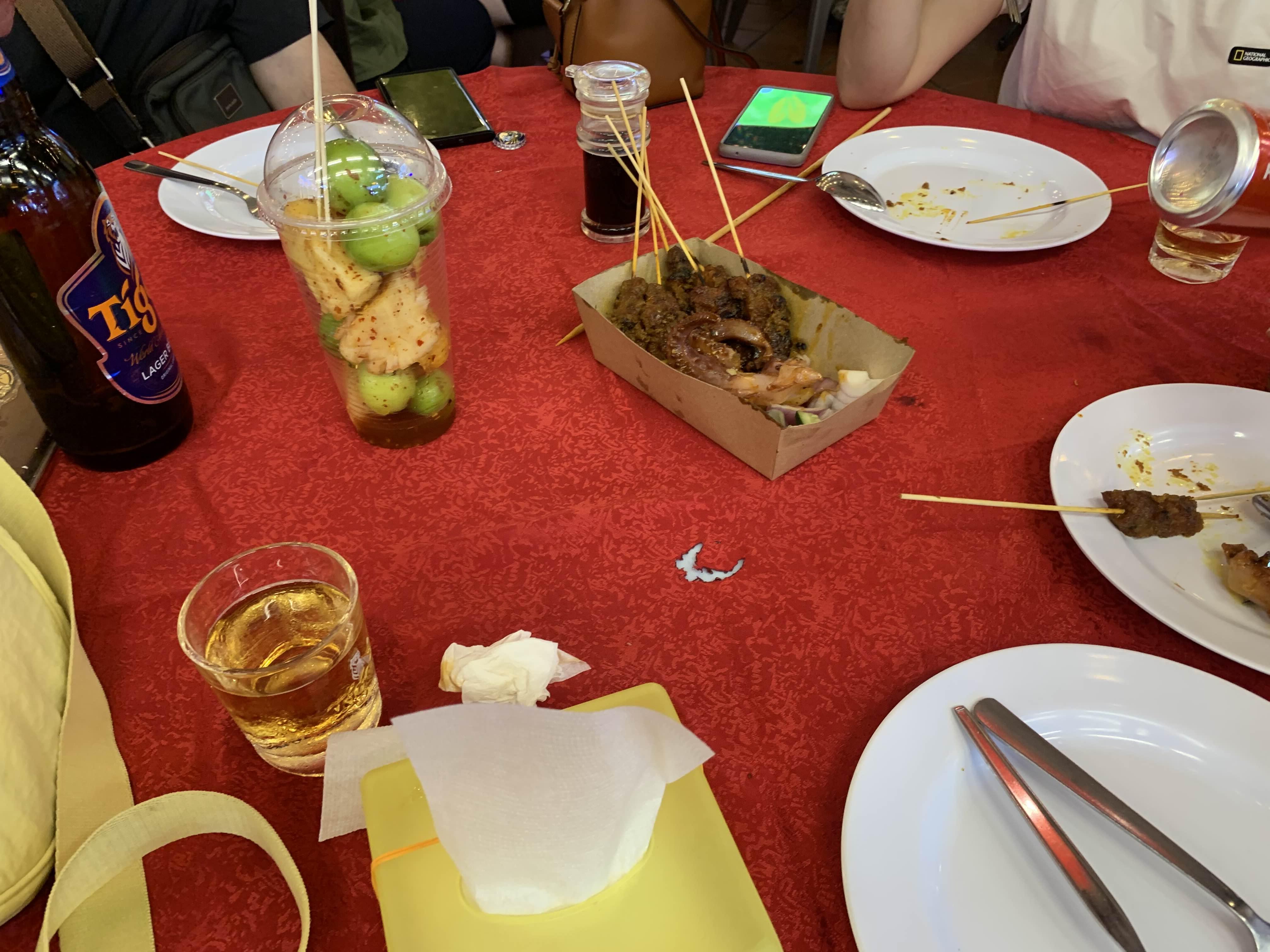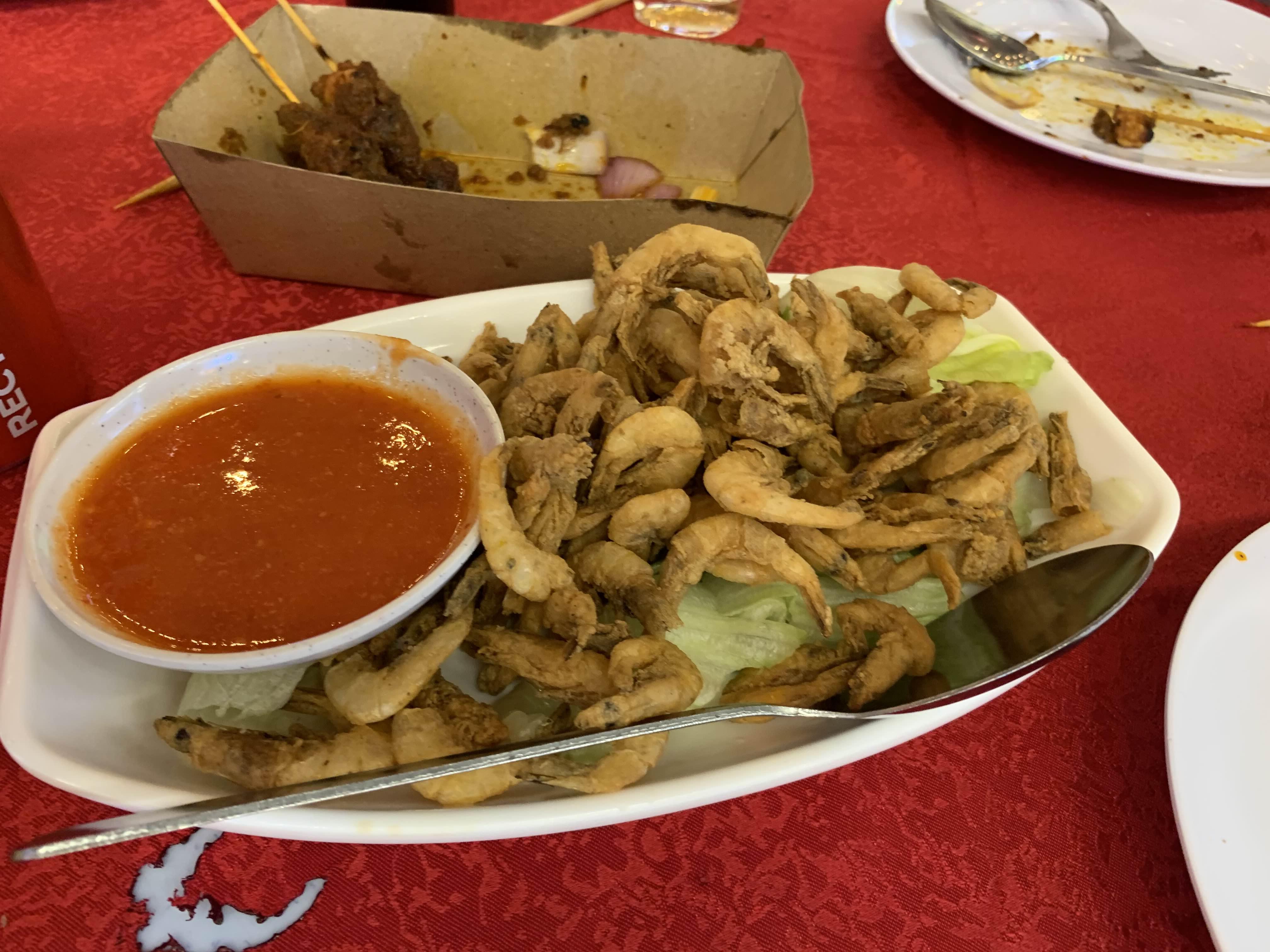 양꼬치는 바로 된다 하여... 주문! 하나에 5링깃! 10개 주문했다. 그리고, 새우튀김 하나~ 음식은 1시간 정도 걸린다고 한다.