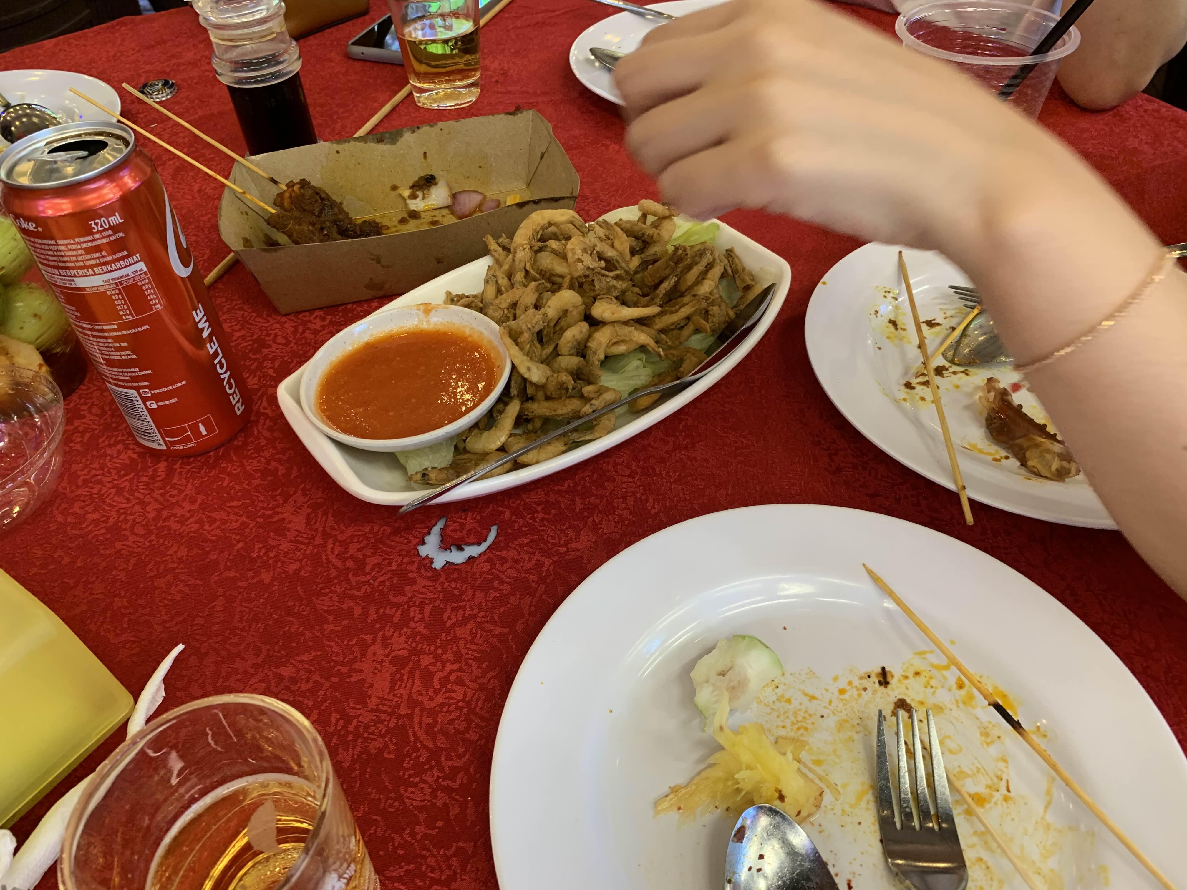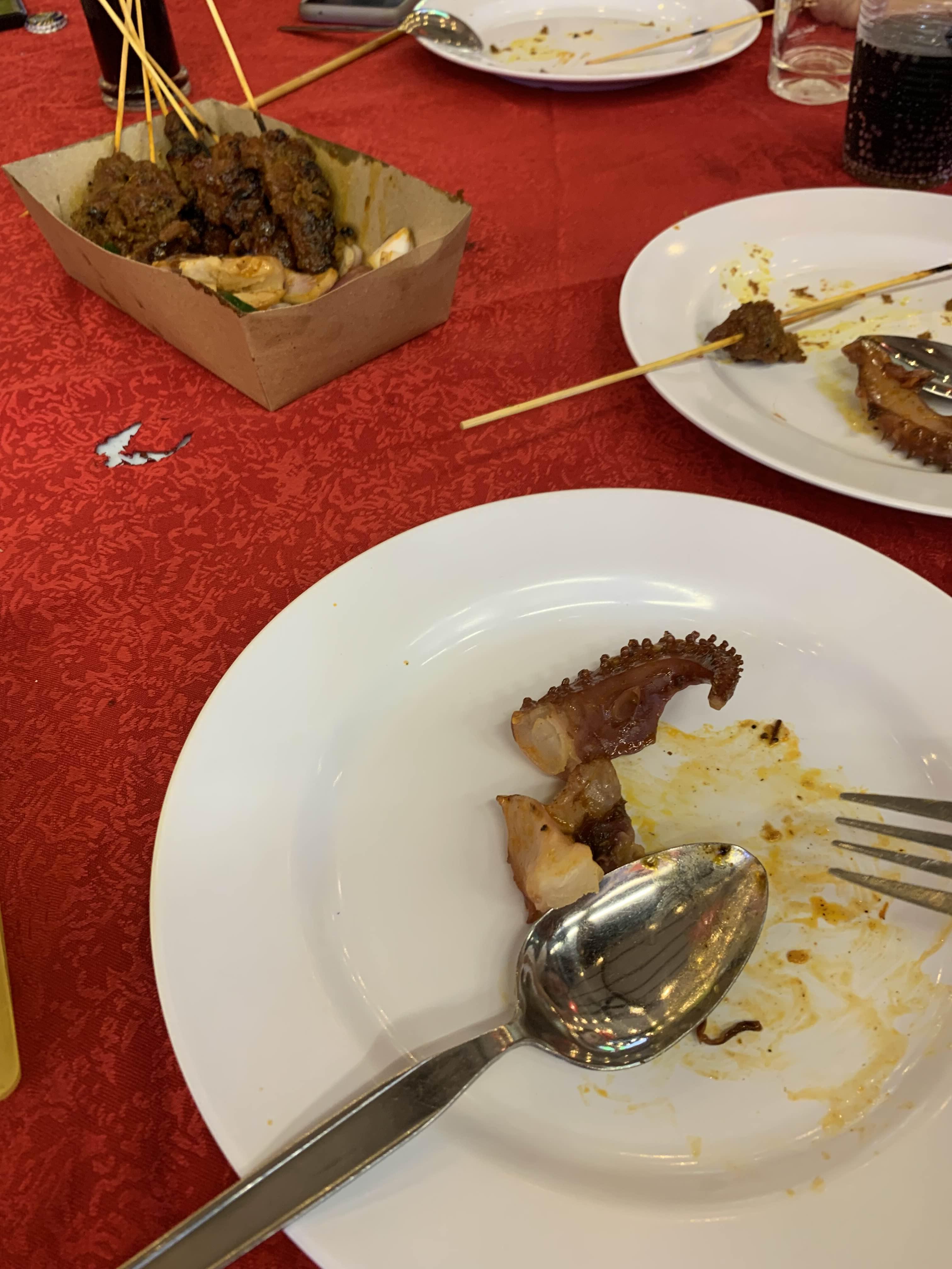 다음 음식은 문어..... 20링깃!! 식감이 상당히..... 안 좋다. 물컹하니, 쫄깃한 식감이 아니다. 가격은 20링깃인데..... 이 정도 맛이면 돈이 아까웠다.
