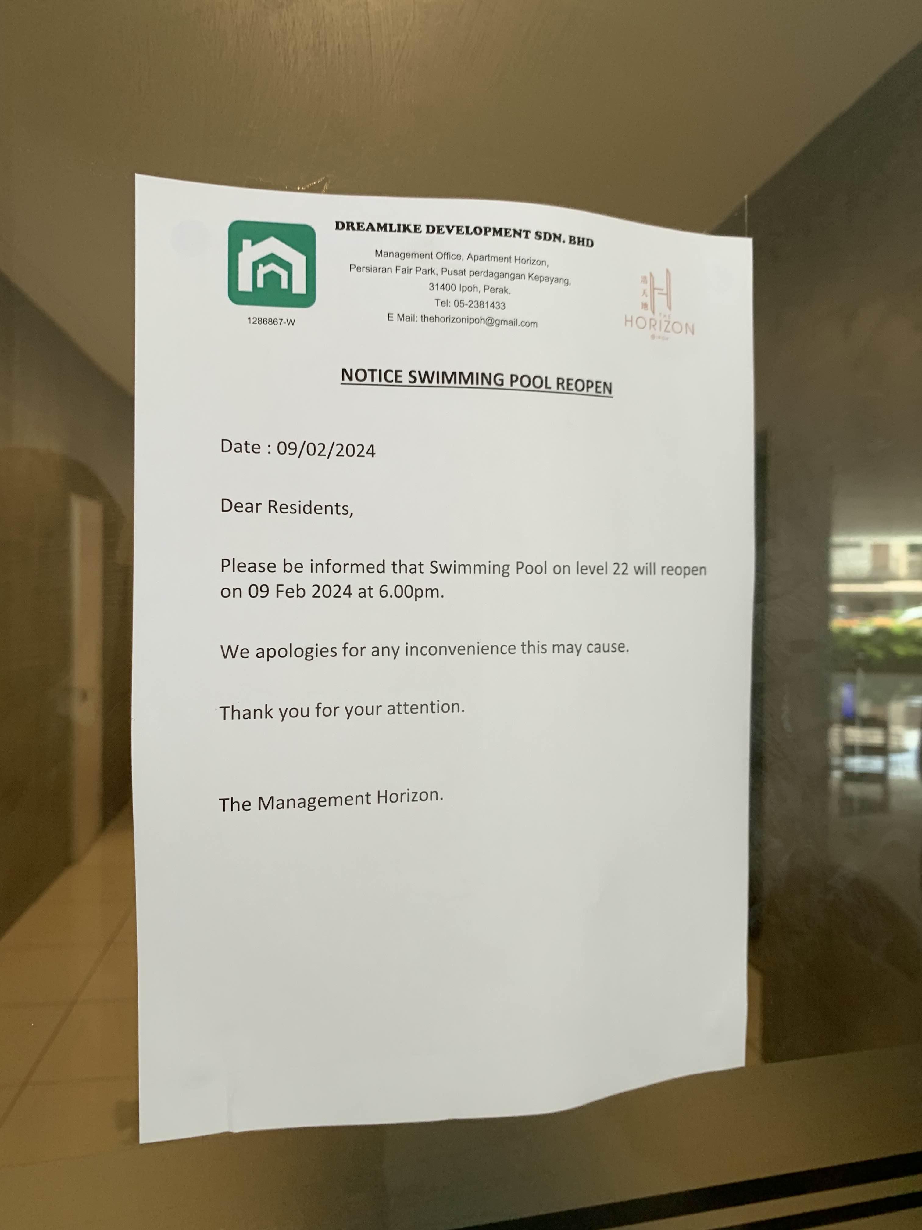 호리존 이포는 최상층인 22층에 수영장과 헬스장이 있습니다. 헬스장 사용하는 사람들은 없고, 수영장은 많이 이용합니다.
