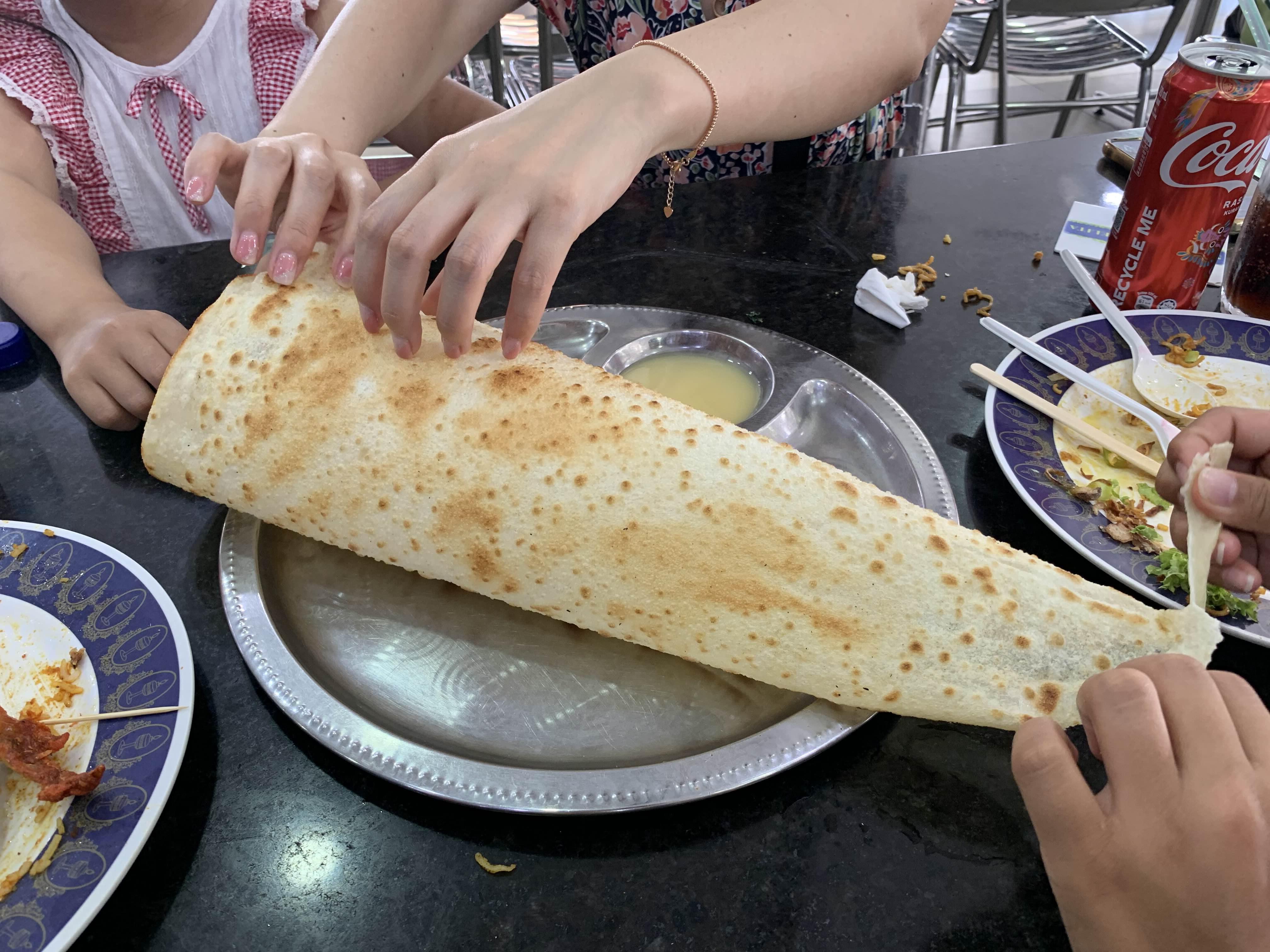음식을 먹던 사이 인도 아이가.... 납작 빵을(뻥튀기와 유사한 납작한 과자) 가져다준다. 밥이랑 먹으면 맛나다고. 파파담이다. 맛나다.