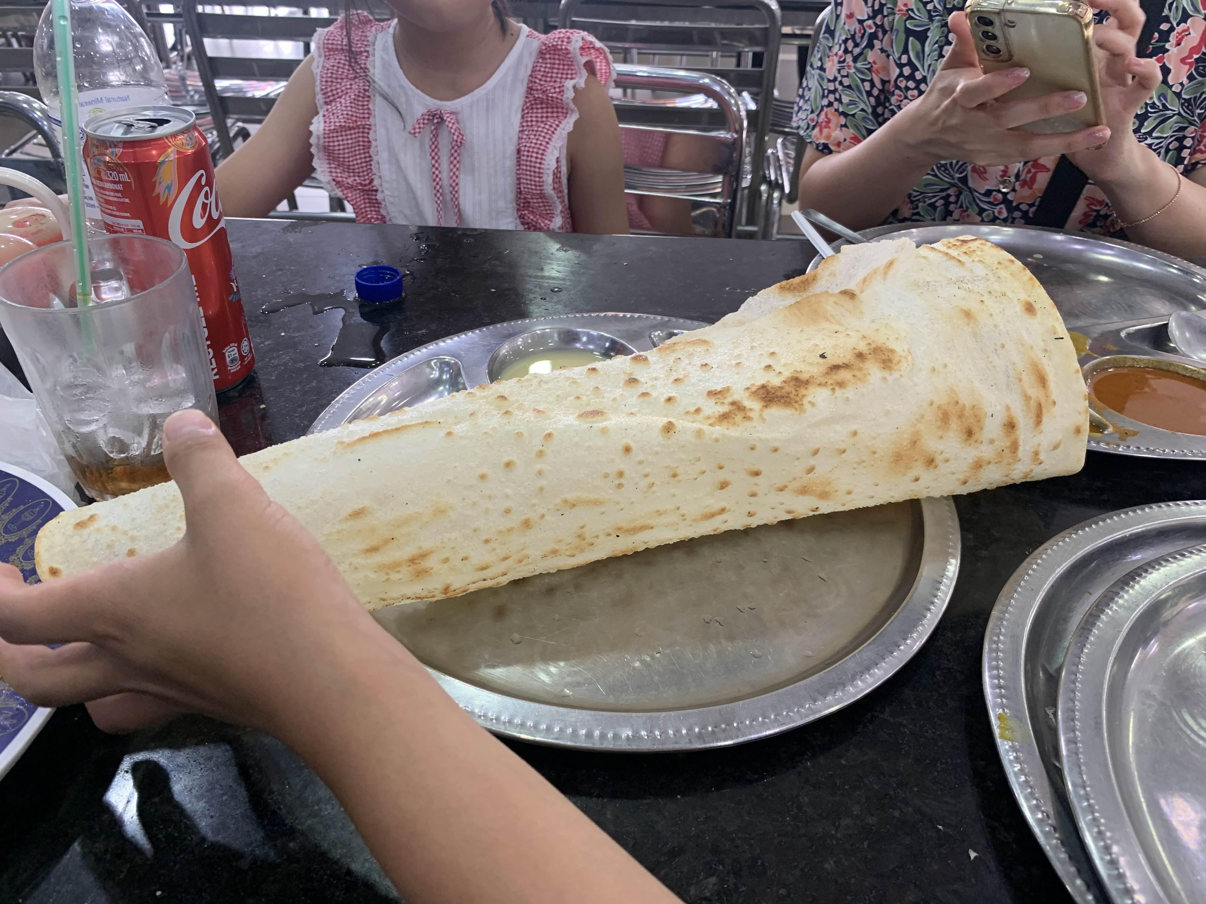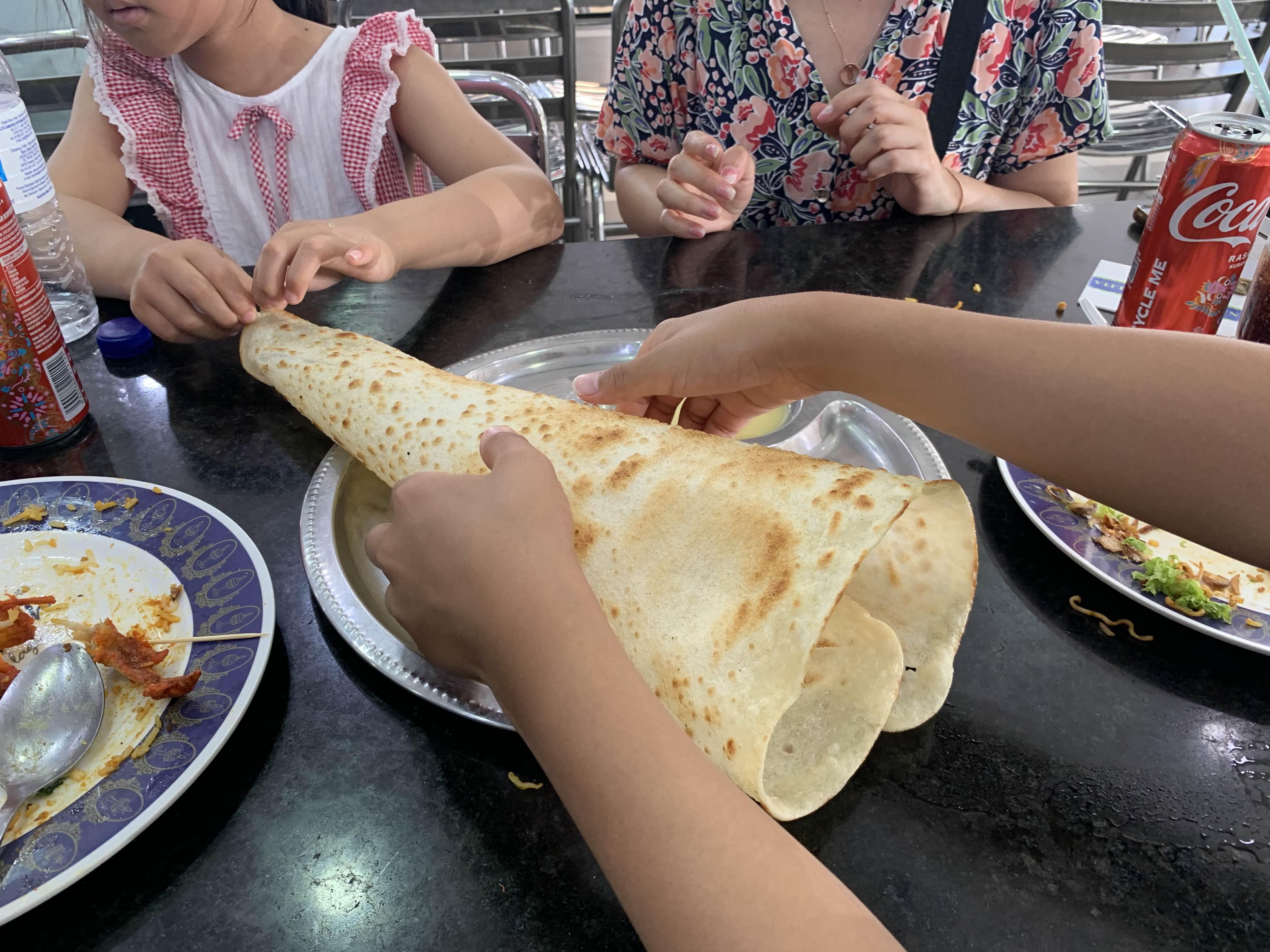 음식을 먹던 사이 인도 아이가.... 납작 빵을(뻥튀기와 유사한 납작한 과자) 가져다준다. 밥이랑 먹으면 맛나다고. 파파담이다. 맛나다.