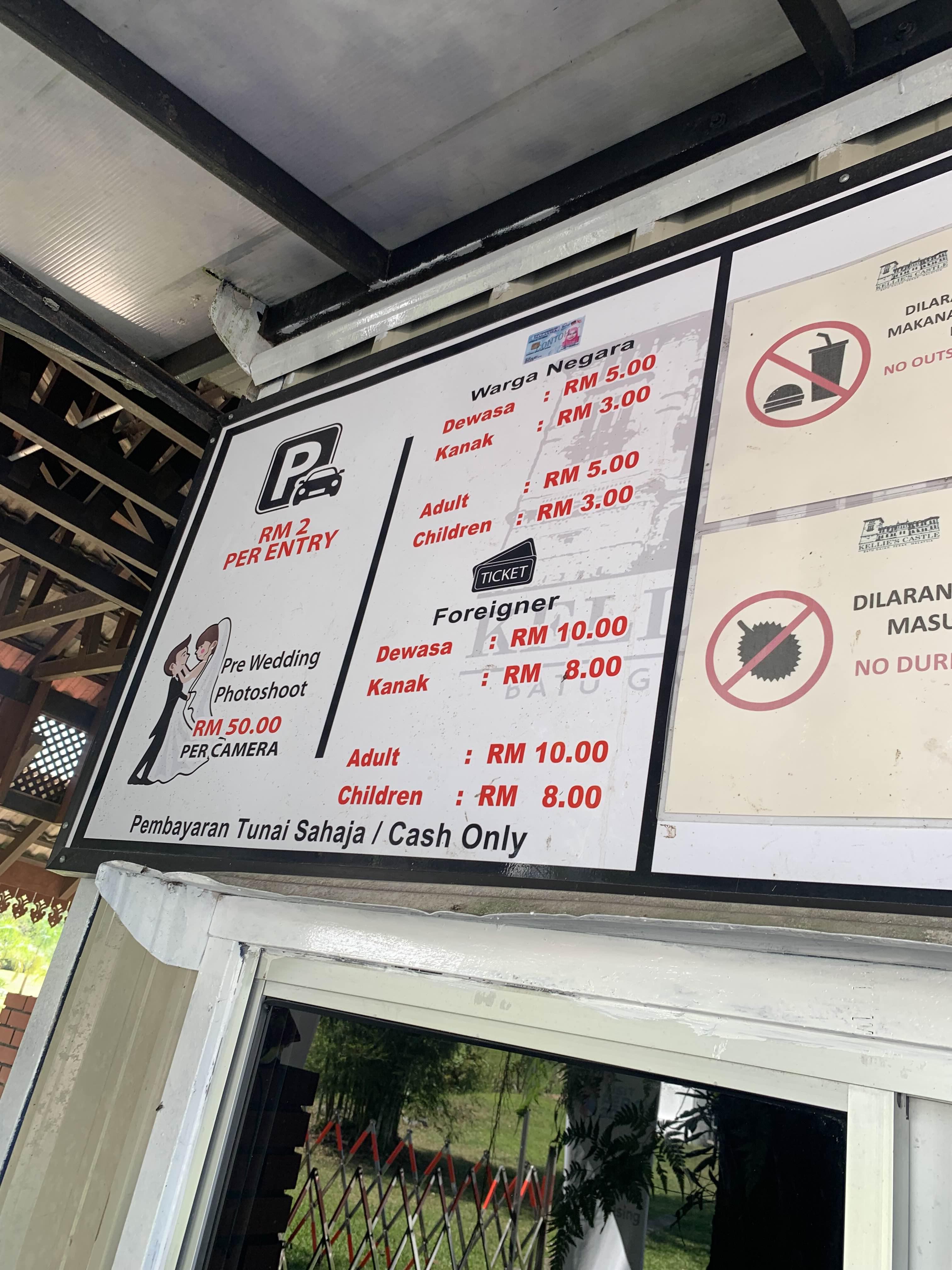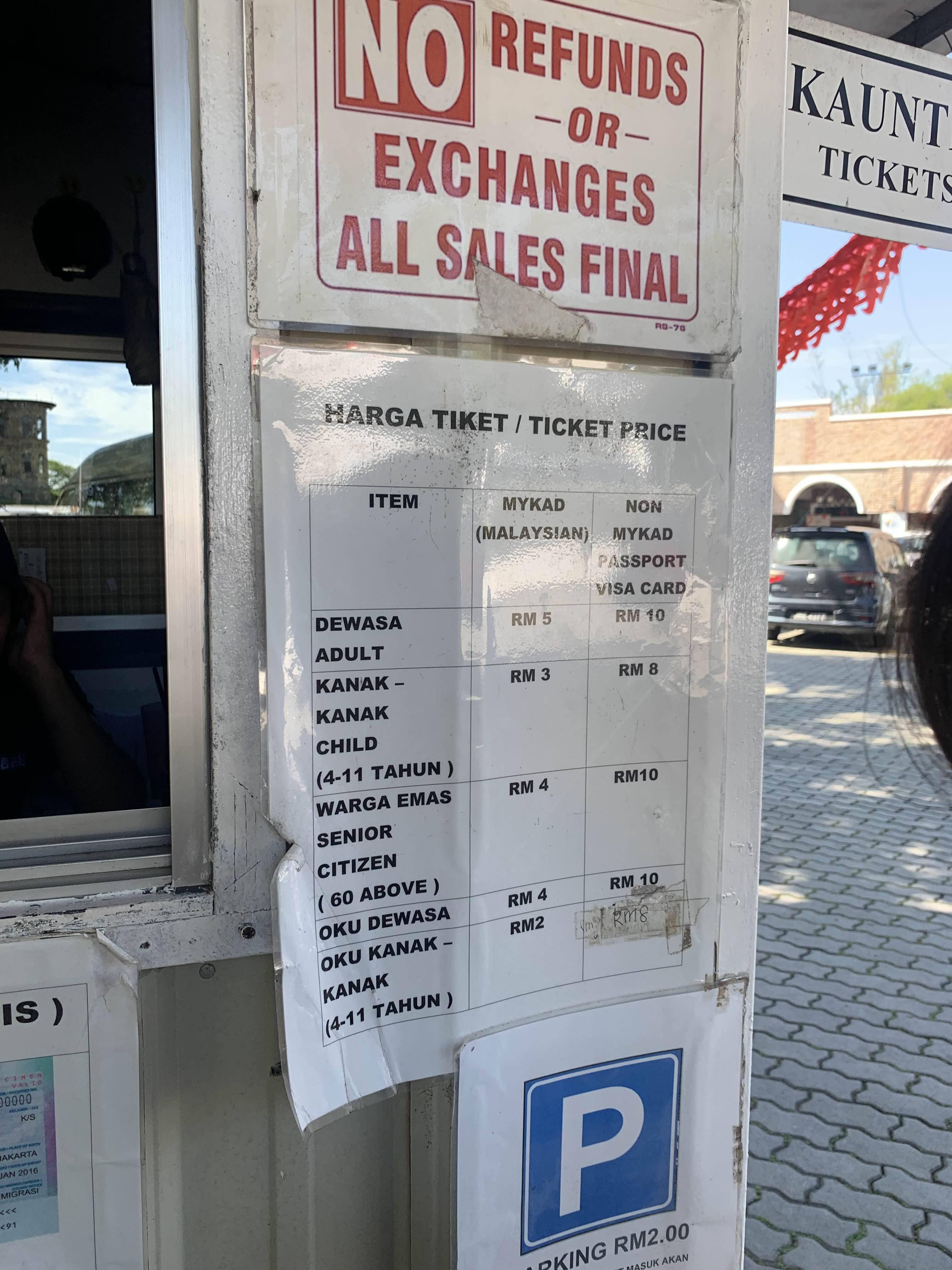 외국인은 성인 10링깃, 아이들은 8링깃!!! 외국인에게 바가지요금이 부과되더군요. 2배 이상의 요금 부과는 너무한 거 아닌가!!!