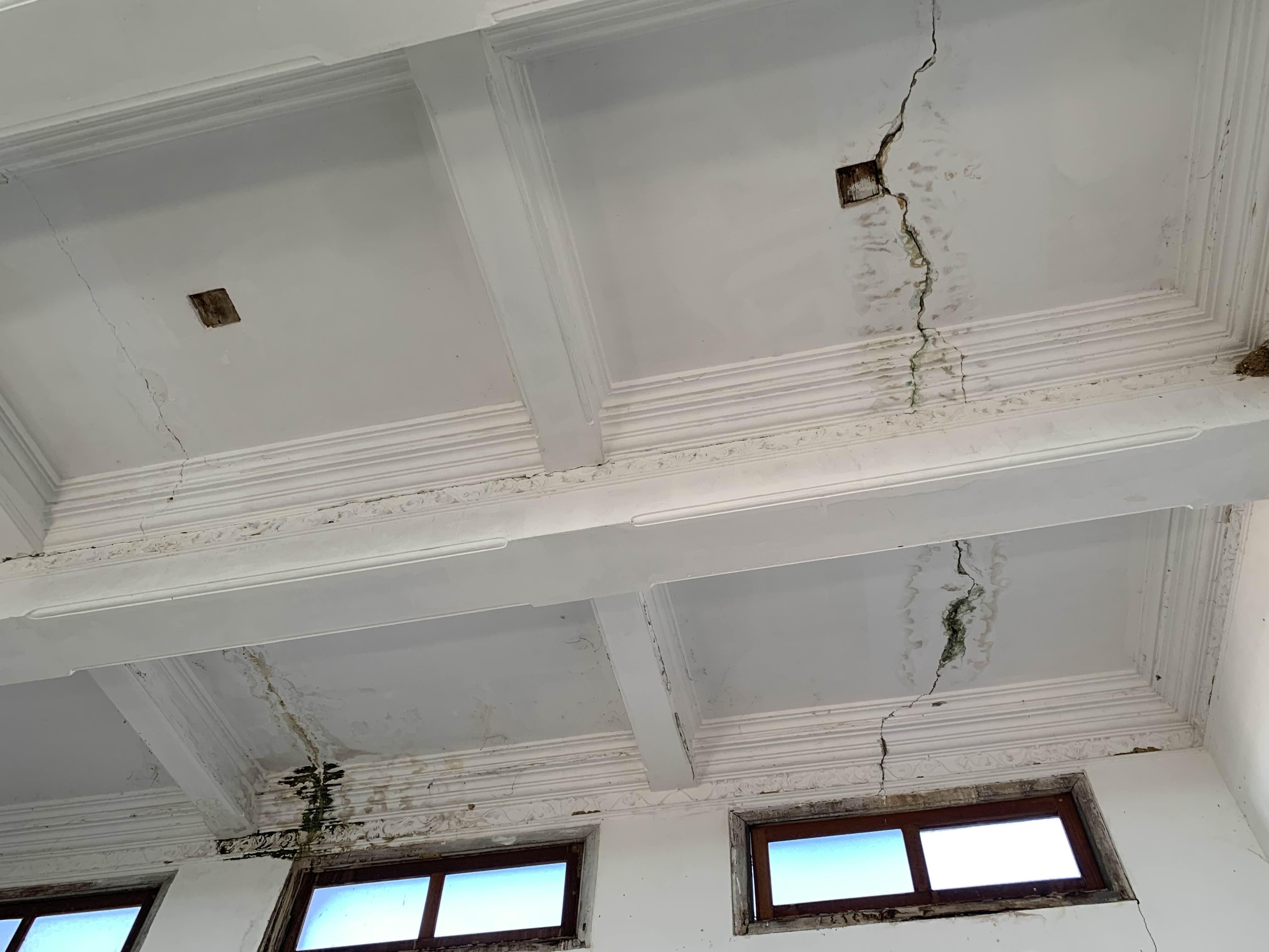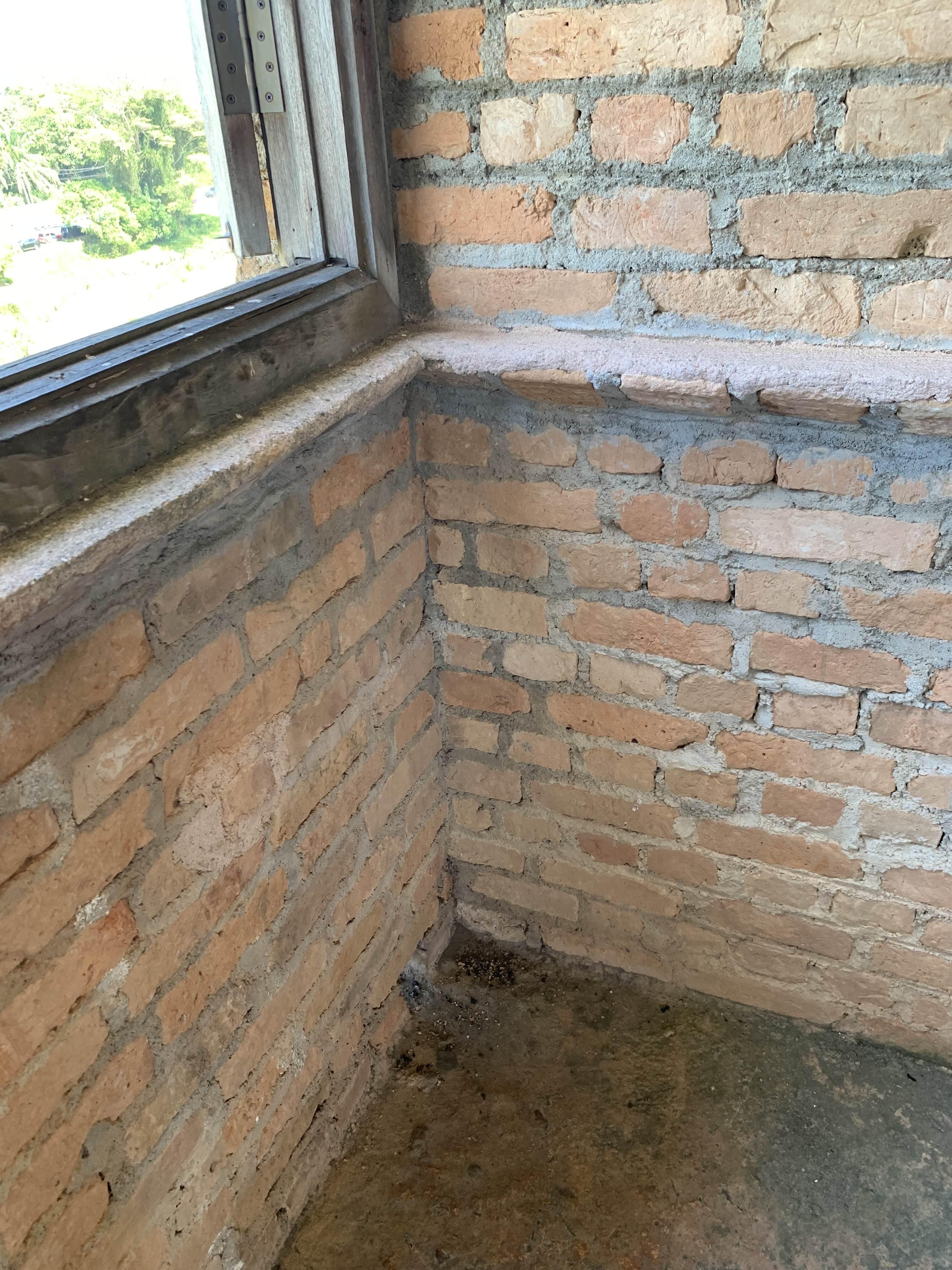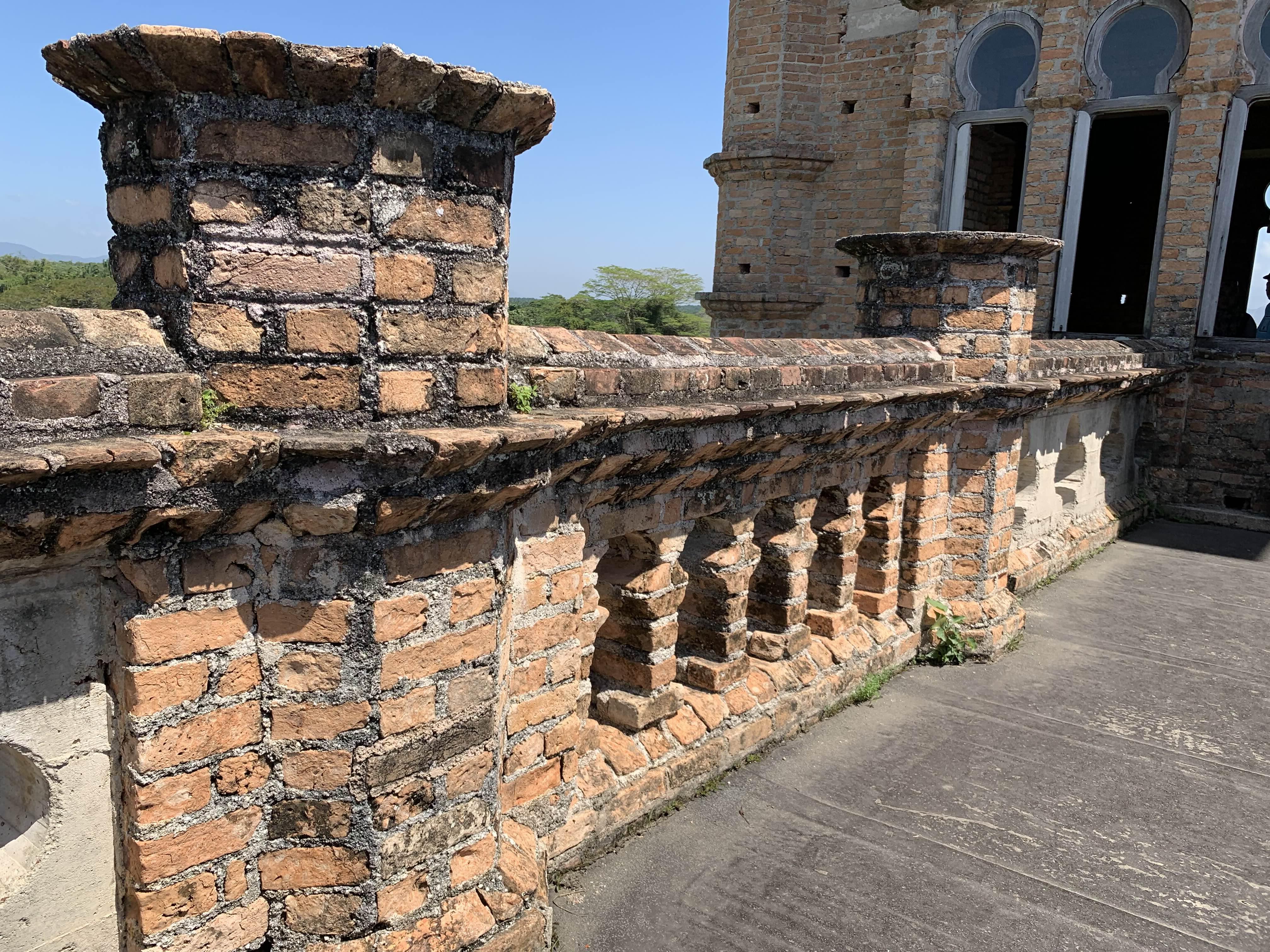 최상층 난간 조적이 파손되었는지... 조적이 아닌, 콘크리트로 보수를 해 놓았다.