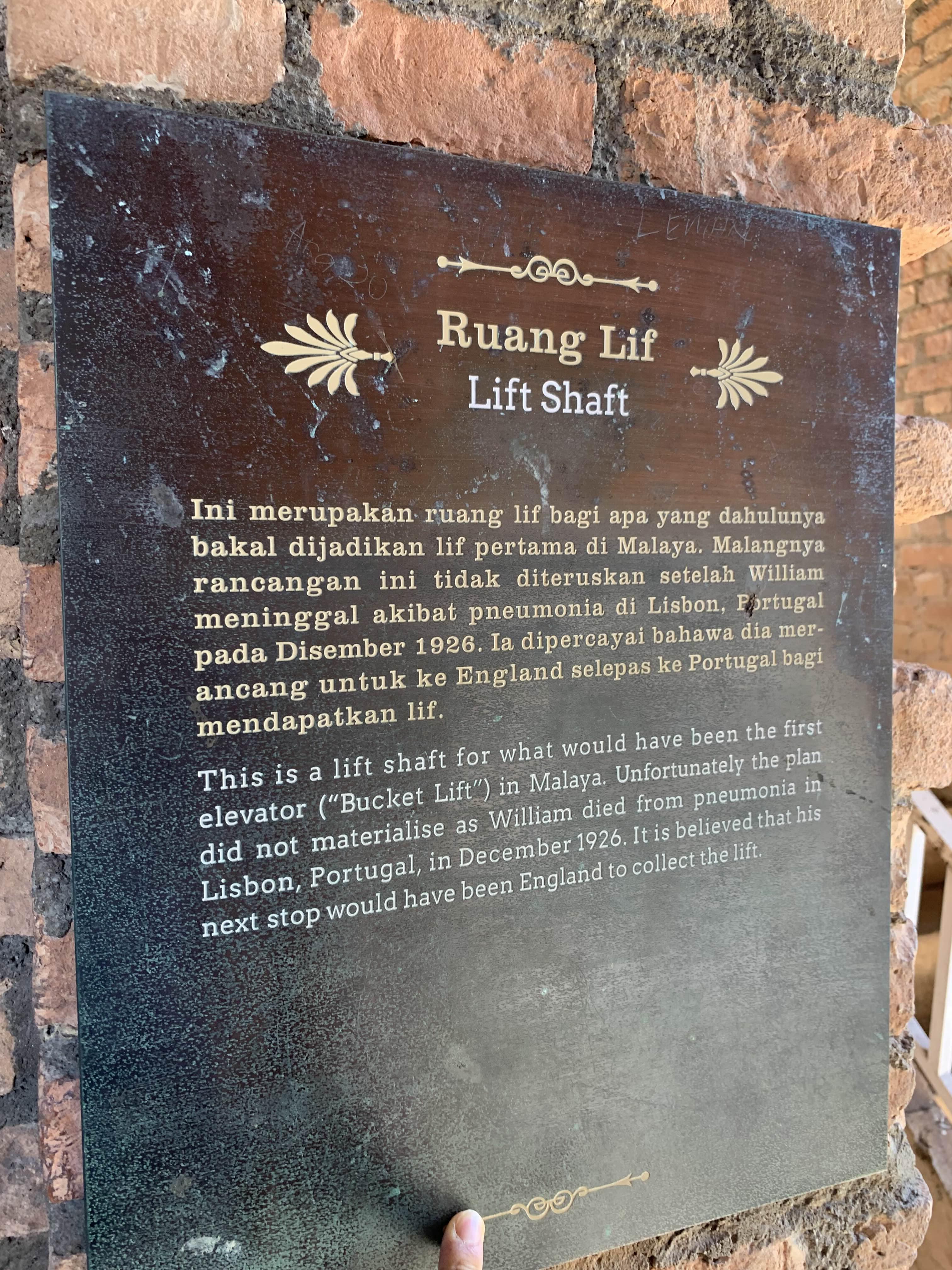 이 건축물이 약 100년 전 건축물인데.... 승강기홀이 있다. 정말 신기했다 그 당시 승강기를 설치하려고 했던 거부터... 말레이시아에 승강기가 있었나?라는 생각도 들어서 안내문을 자세히 읽어보게 되었다.
