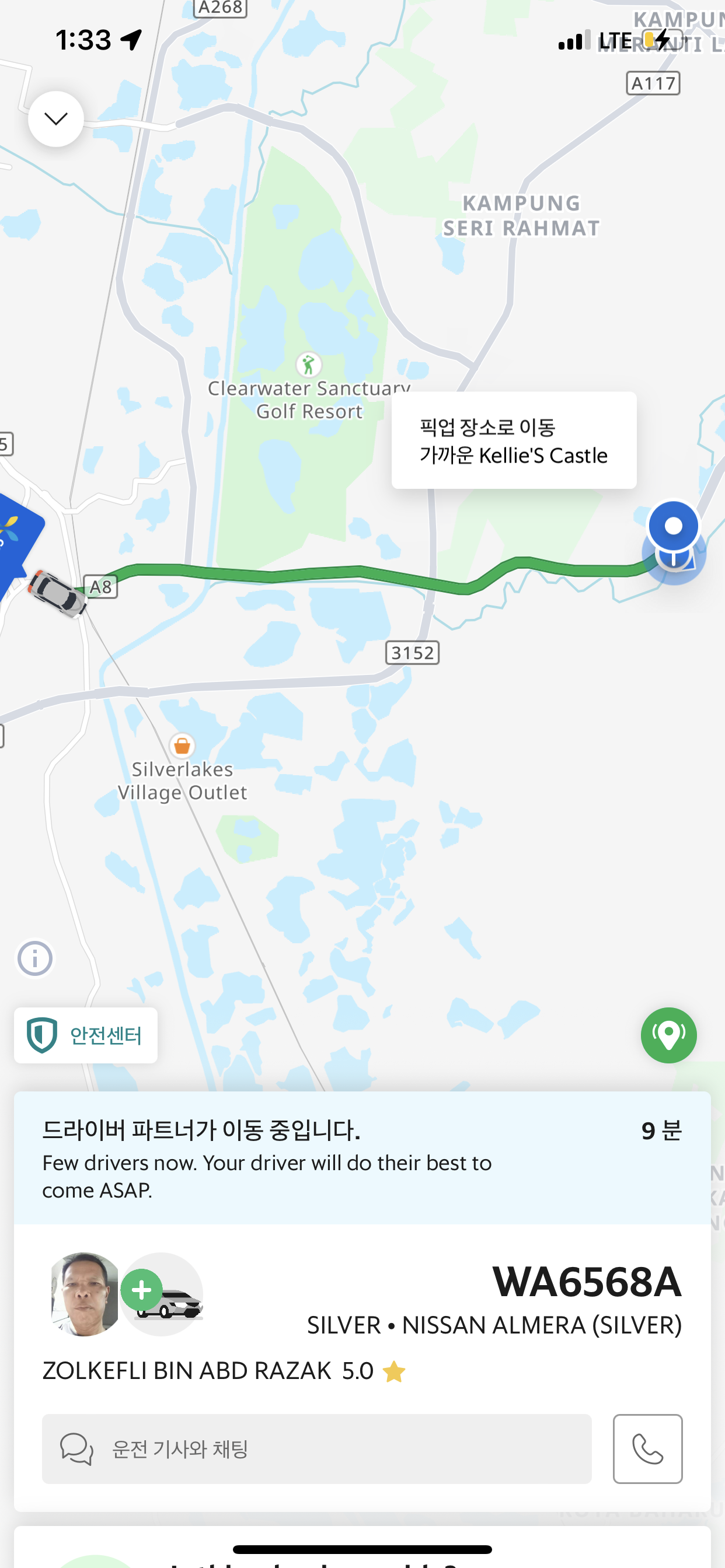 이동거리는 약 25킬로이고 요금은 24링깃(톨게이트 요금 1.48 링킷 별도 부과) 나오더군요. 상당히 저렴한 그랩!!