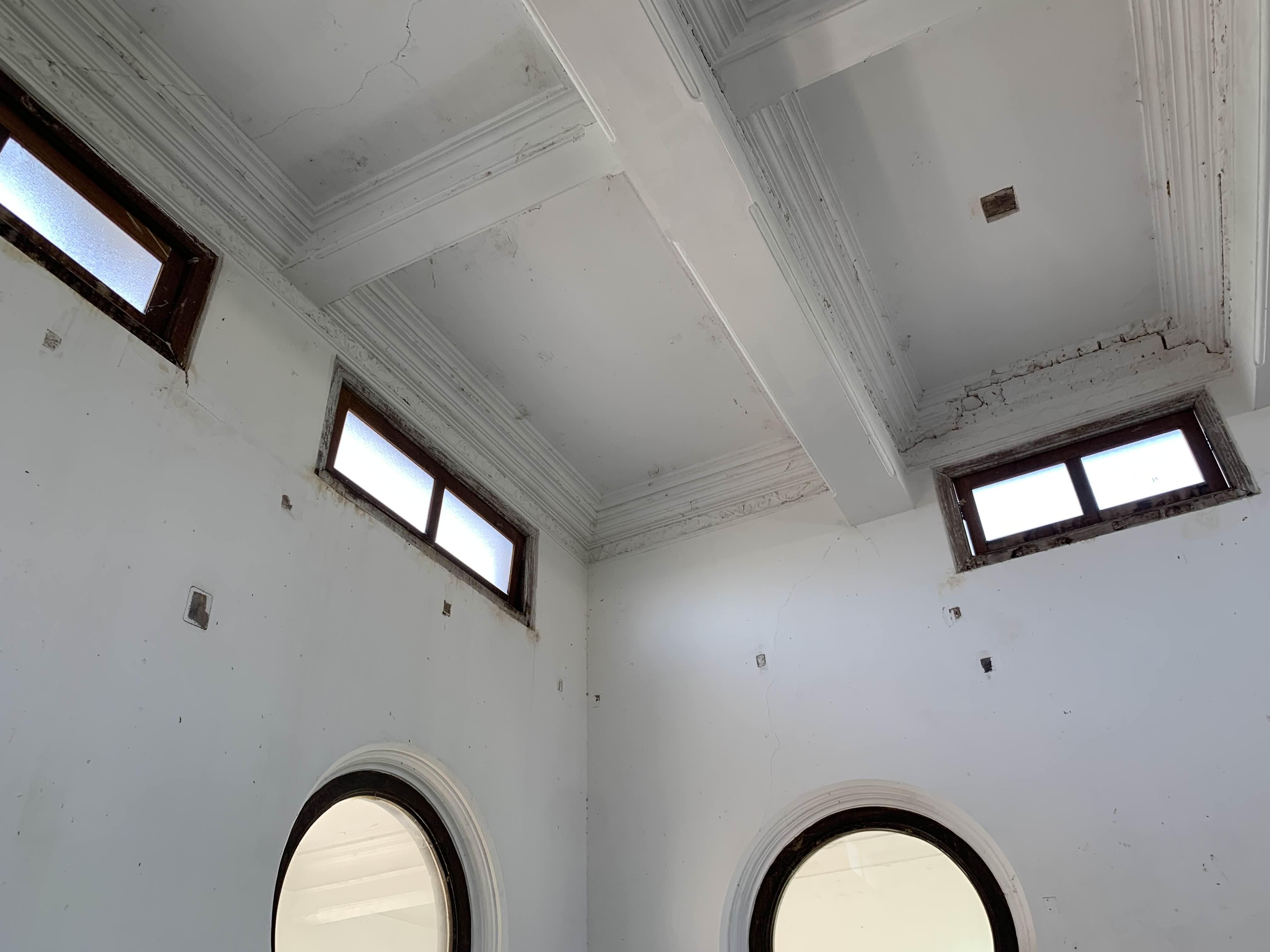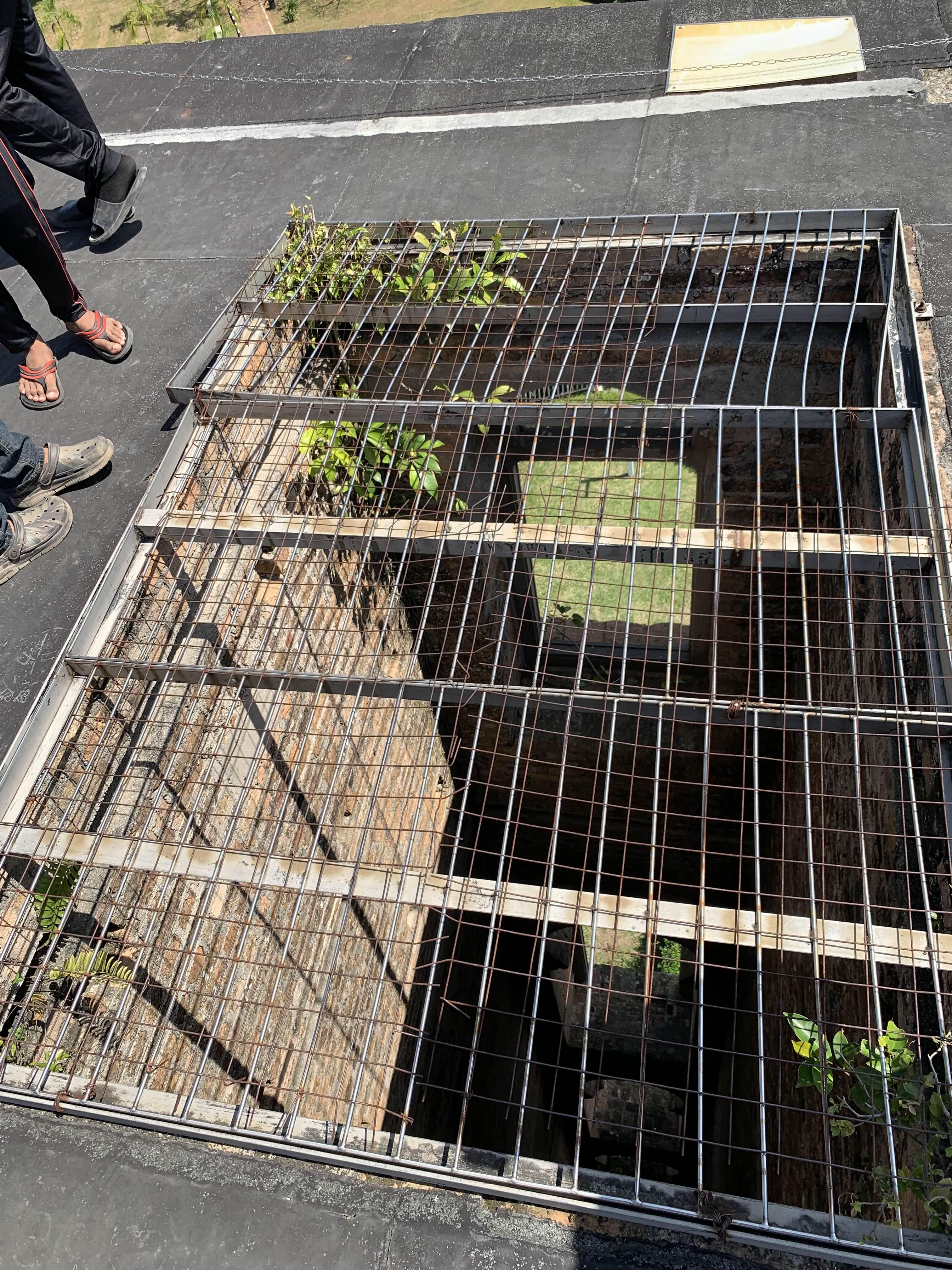 승강기 홀의 특징인.... 상부 오픈형으로... 승강기 훅(고정)이 없는 구조로.... 승강기 모터는 상부가 아닌, 하부에 설치를 계획한 것으로 보인다.