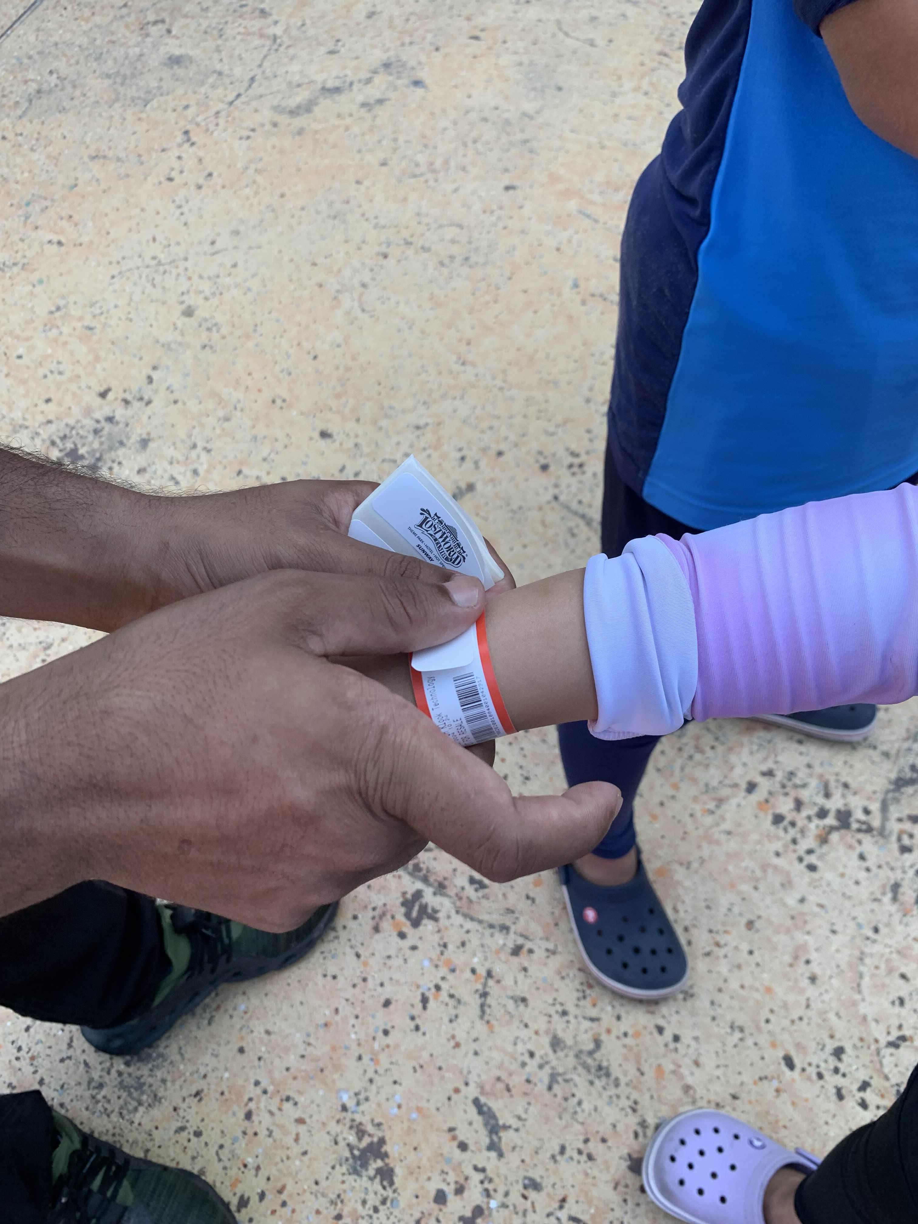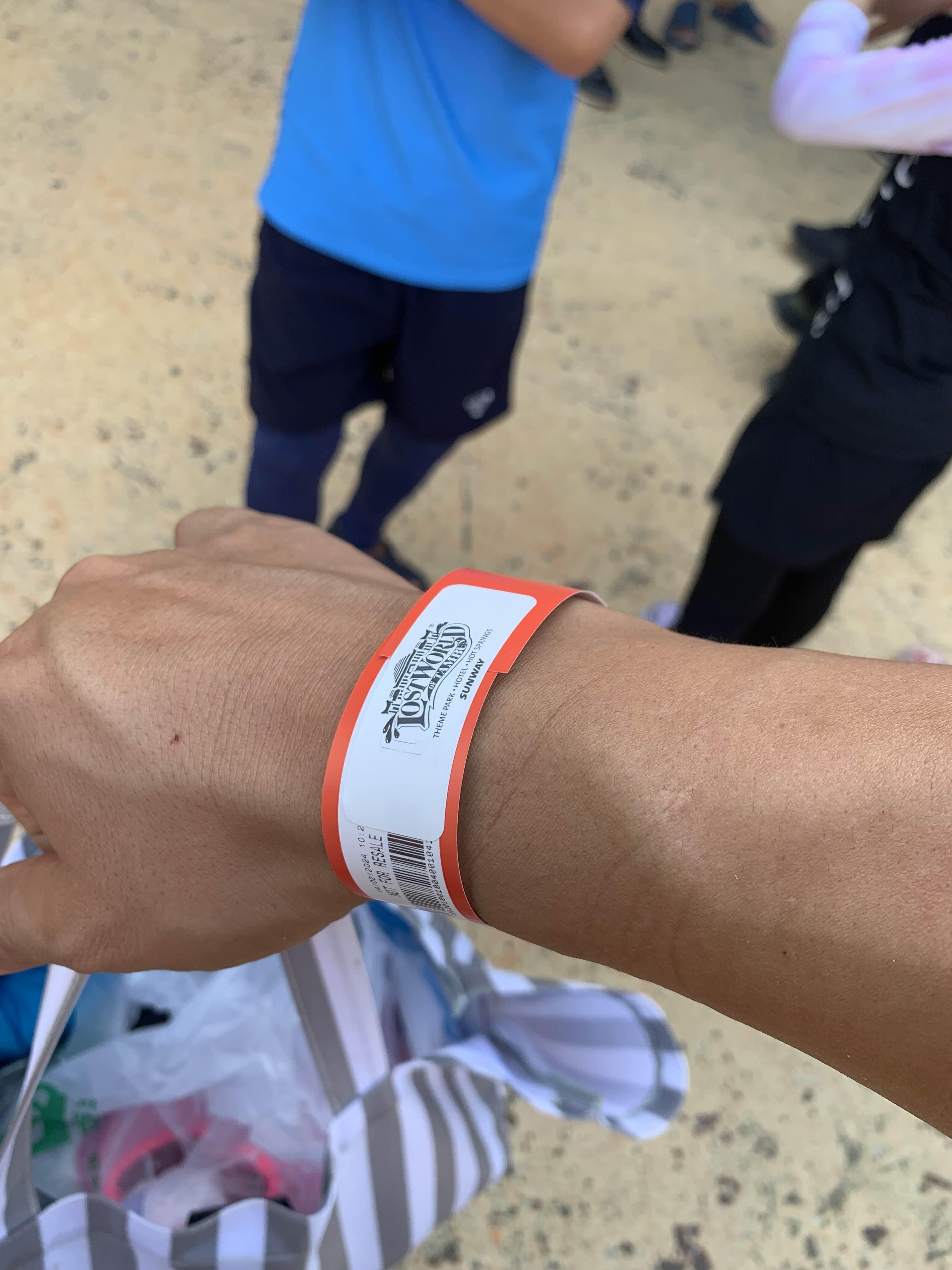 입장티켓으로 바꾼 손목띠!! 입구에서 안내원들이 스티커를 이용하여 손목띠를 붙여주신다.