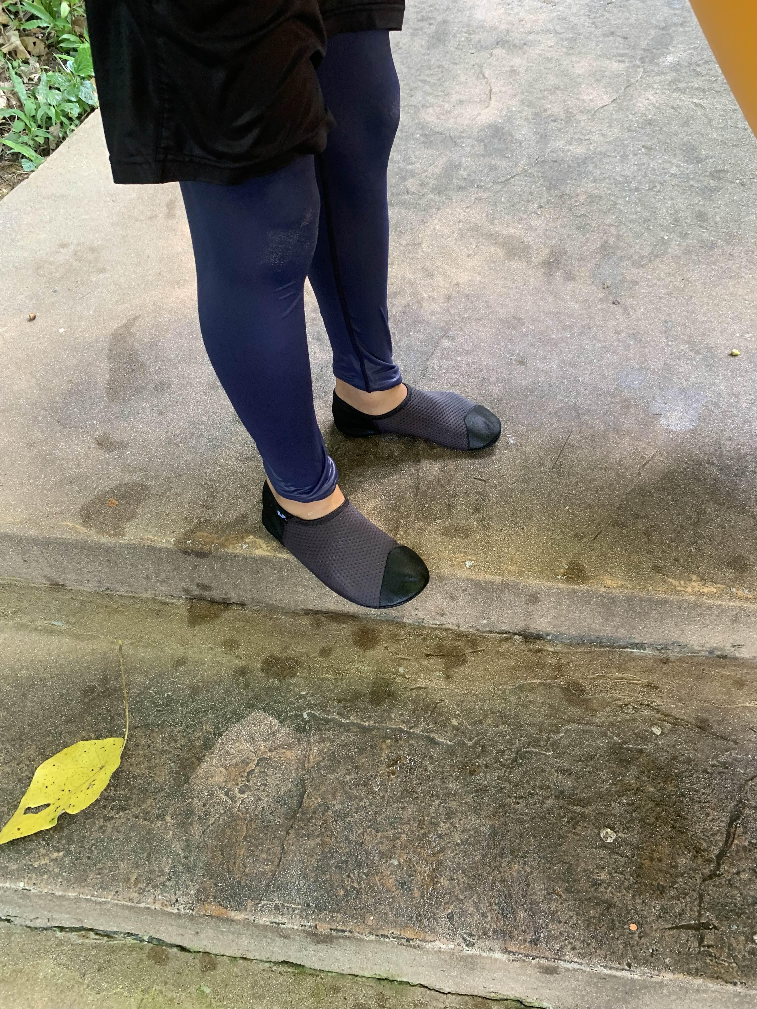 아이들 아쿠아 슈즈는 탑승이 가능하지만, 크록스는 불가!! 멘 발로 다녀야 한다.
