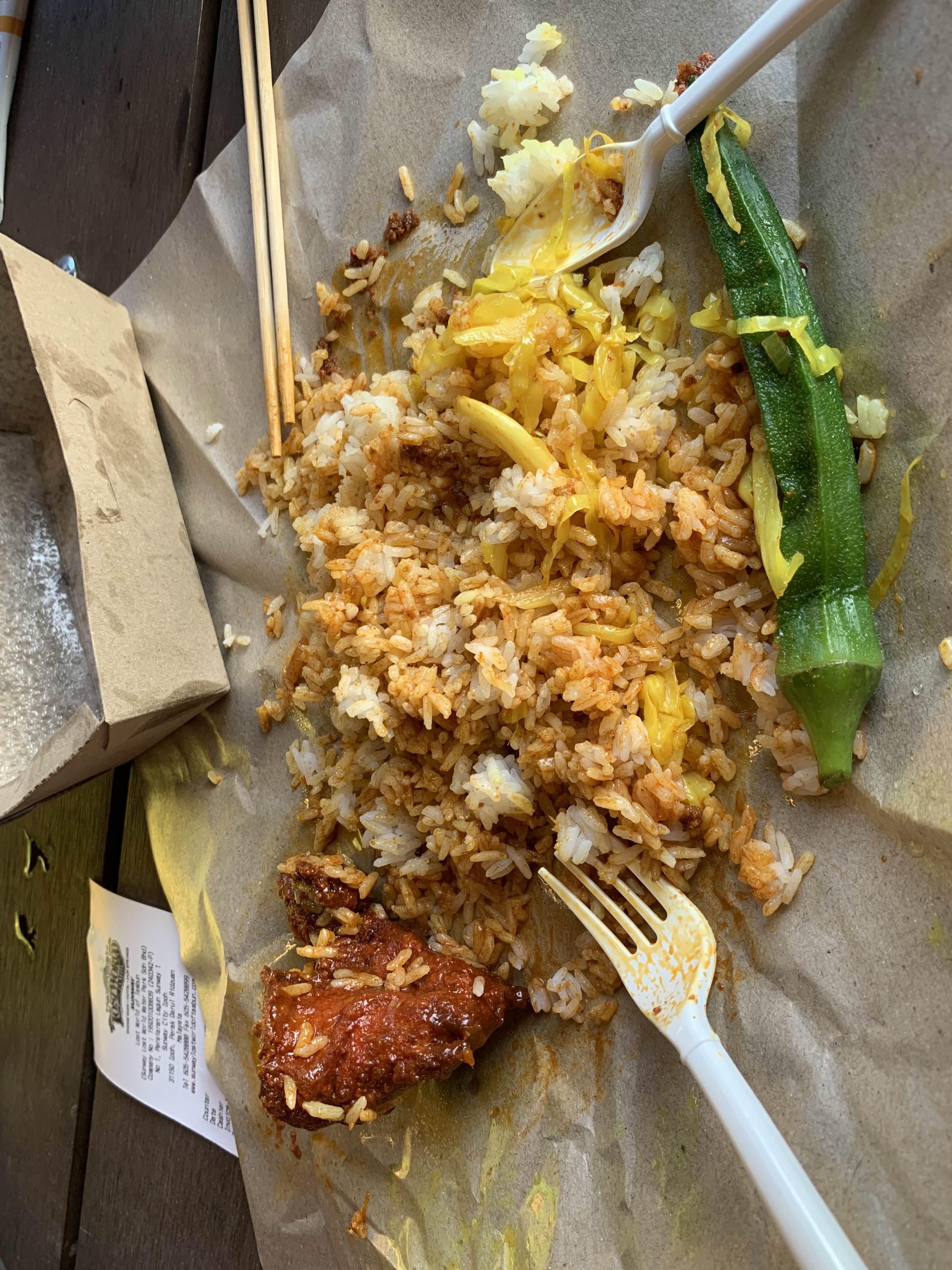 나시고렝은 무난한 맛이라!! 괜찮음... 닭은 튀긴 지 좀 된 닭이라...ㅠㅠ