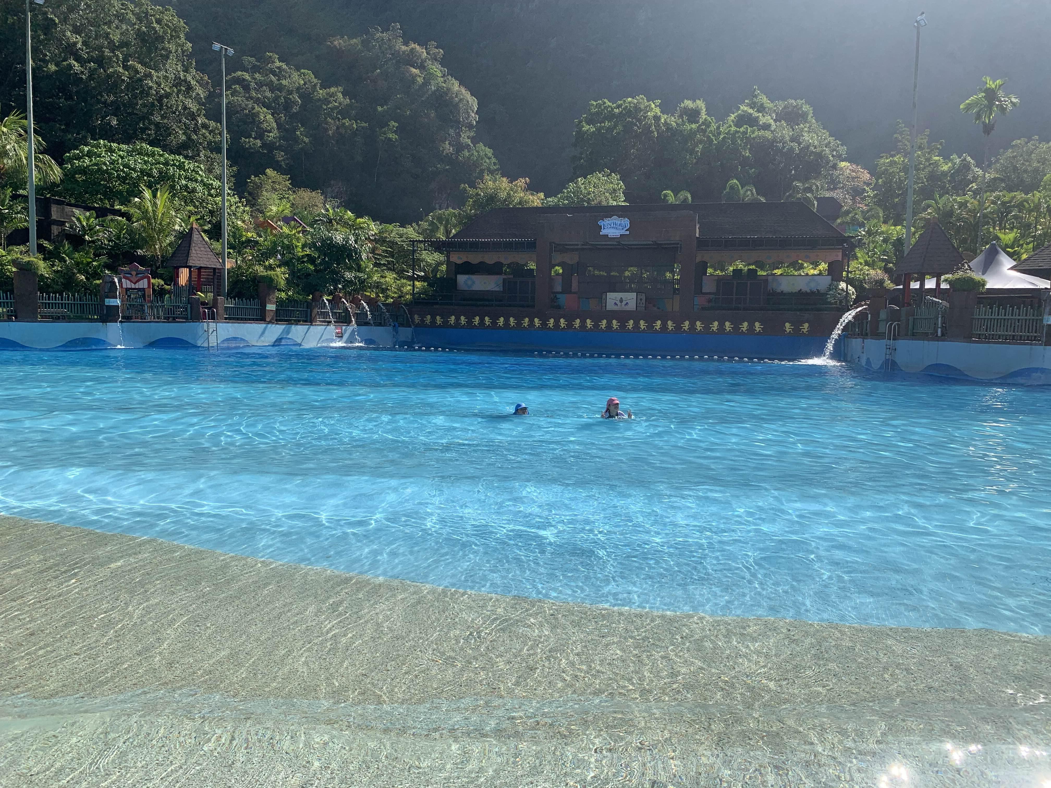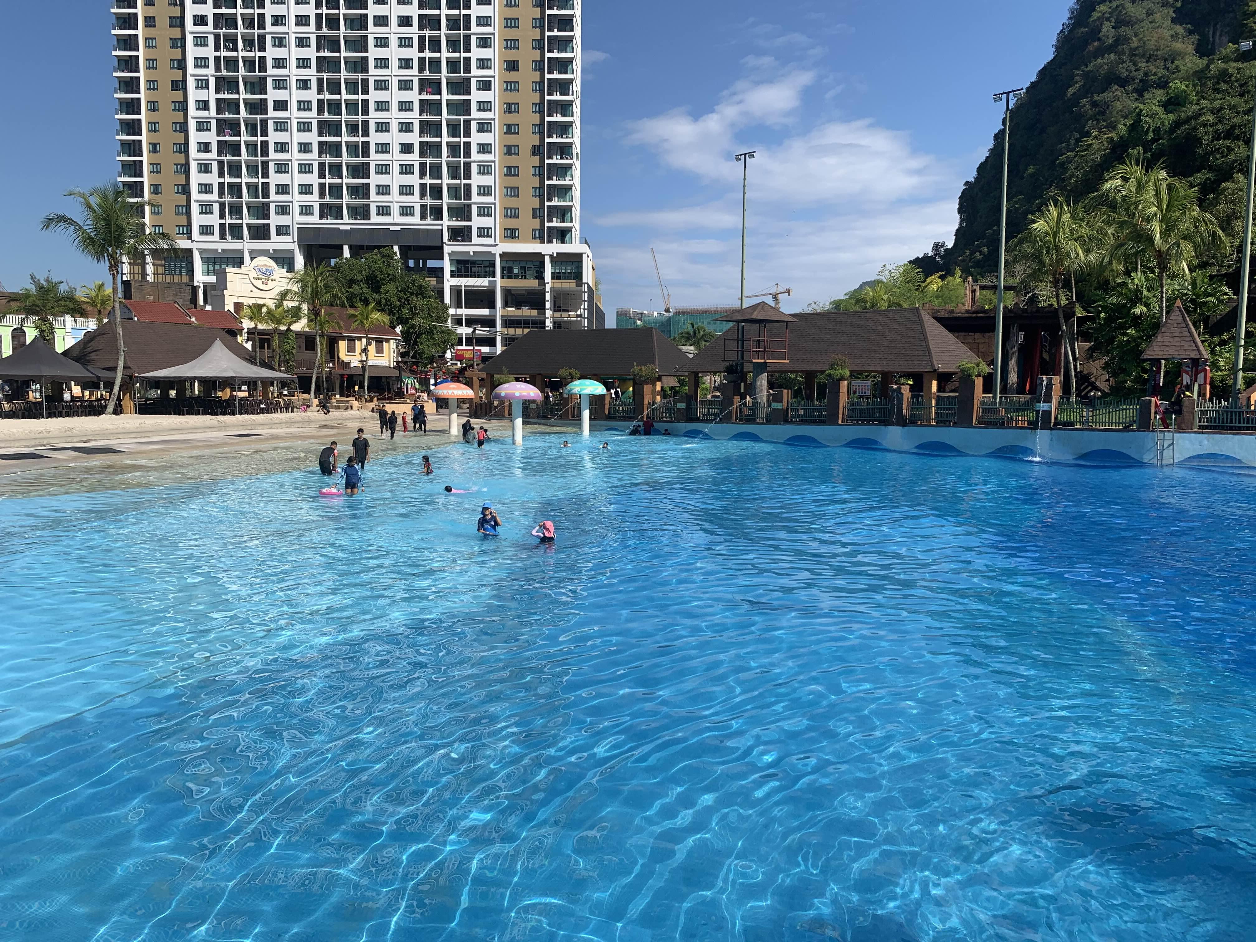 출입구를 통과하면, 파도풀이 보인다. 규모가 상당히 크다.