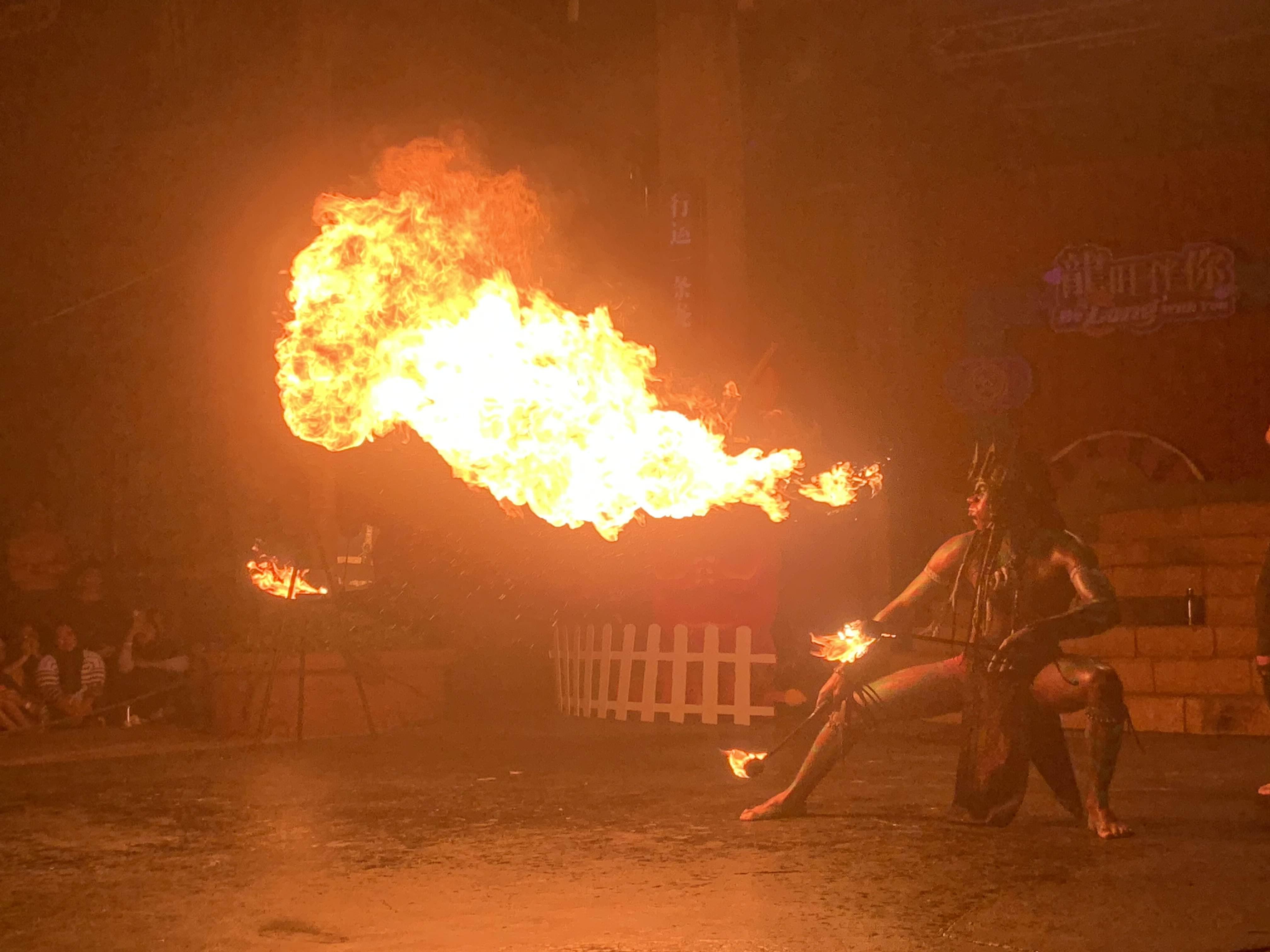 가까이에서 불쇼를 하는데.... 상당히 뜨겁다. ㅎㅎ