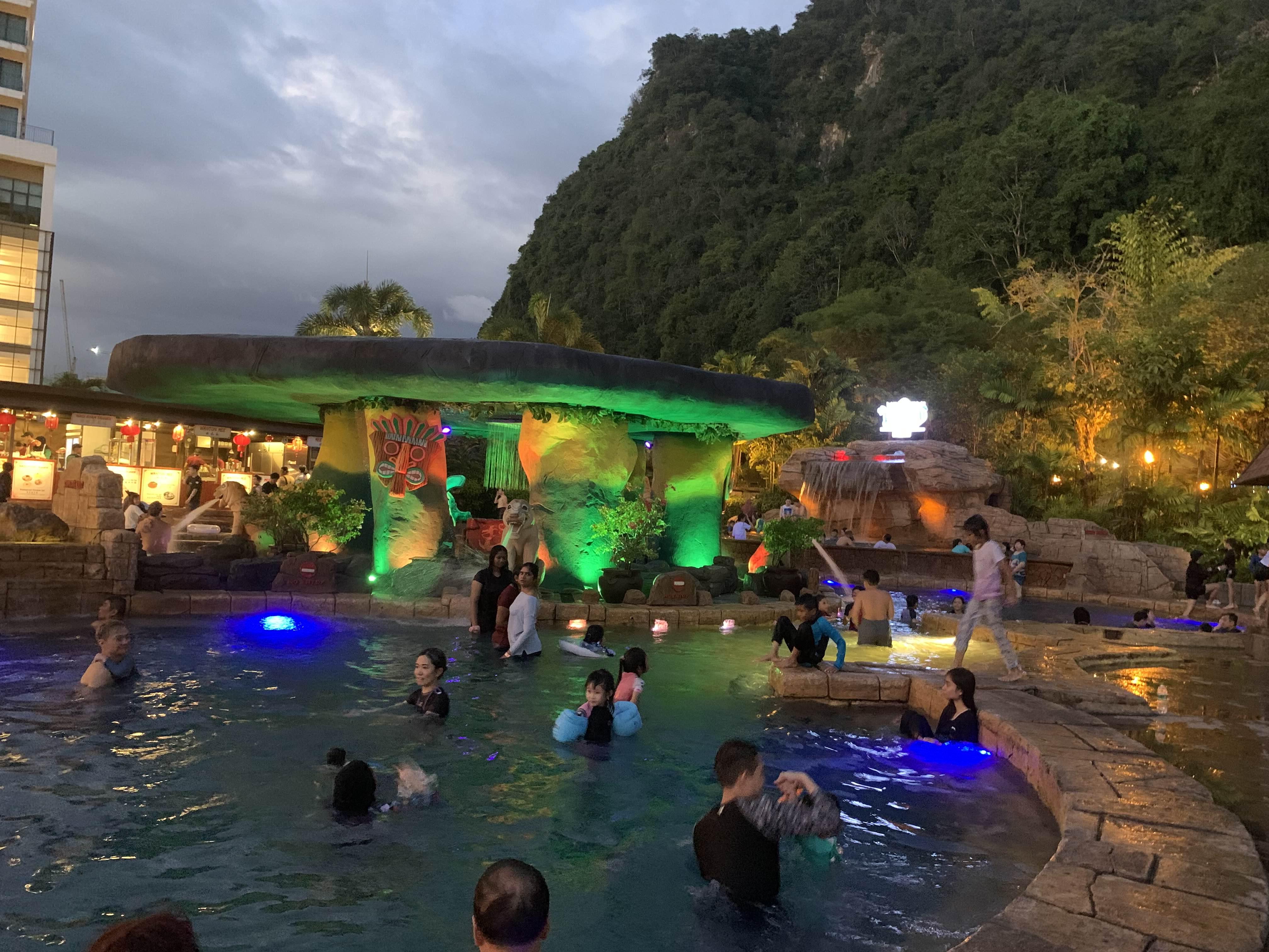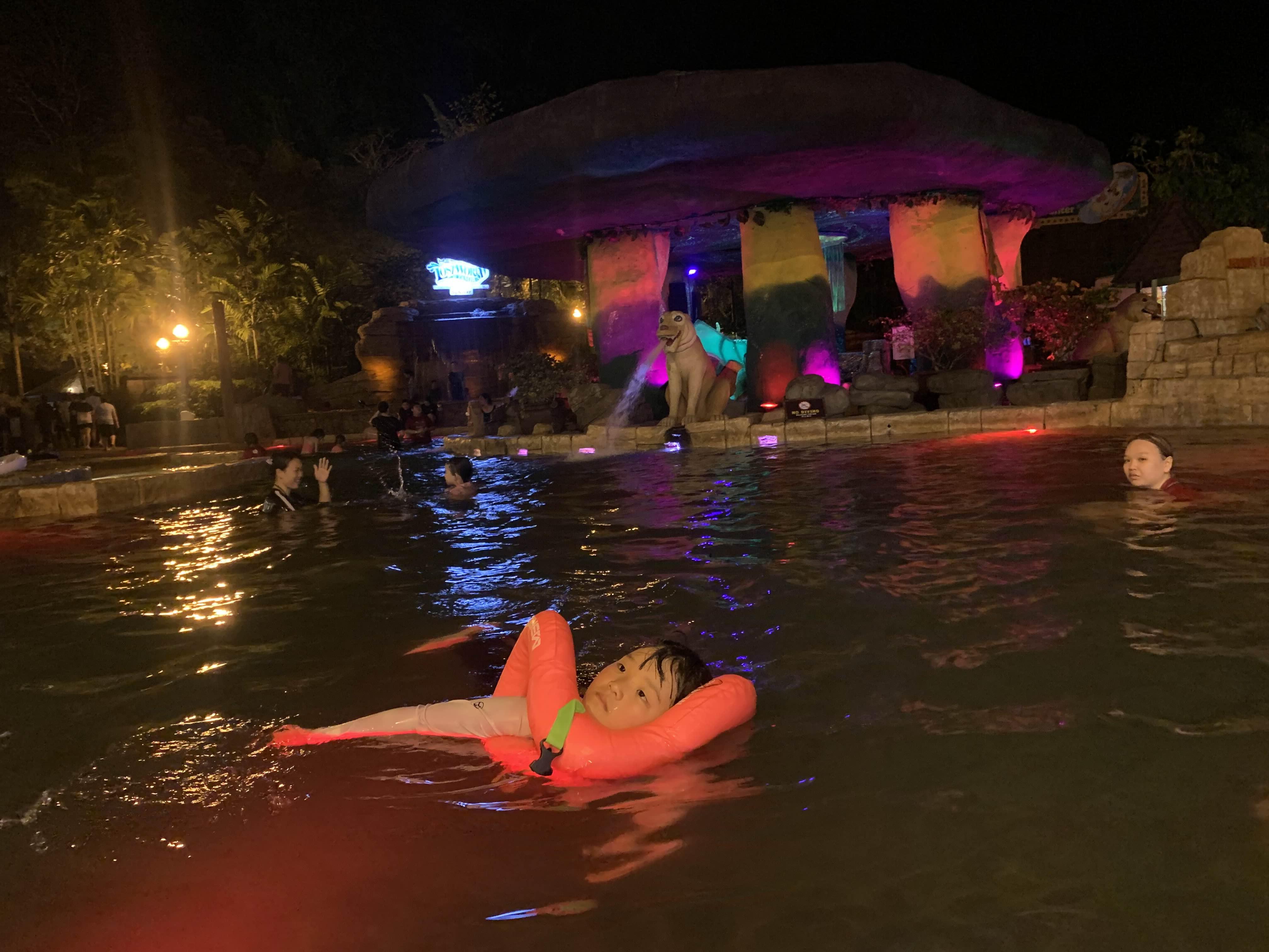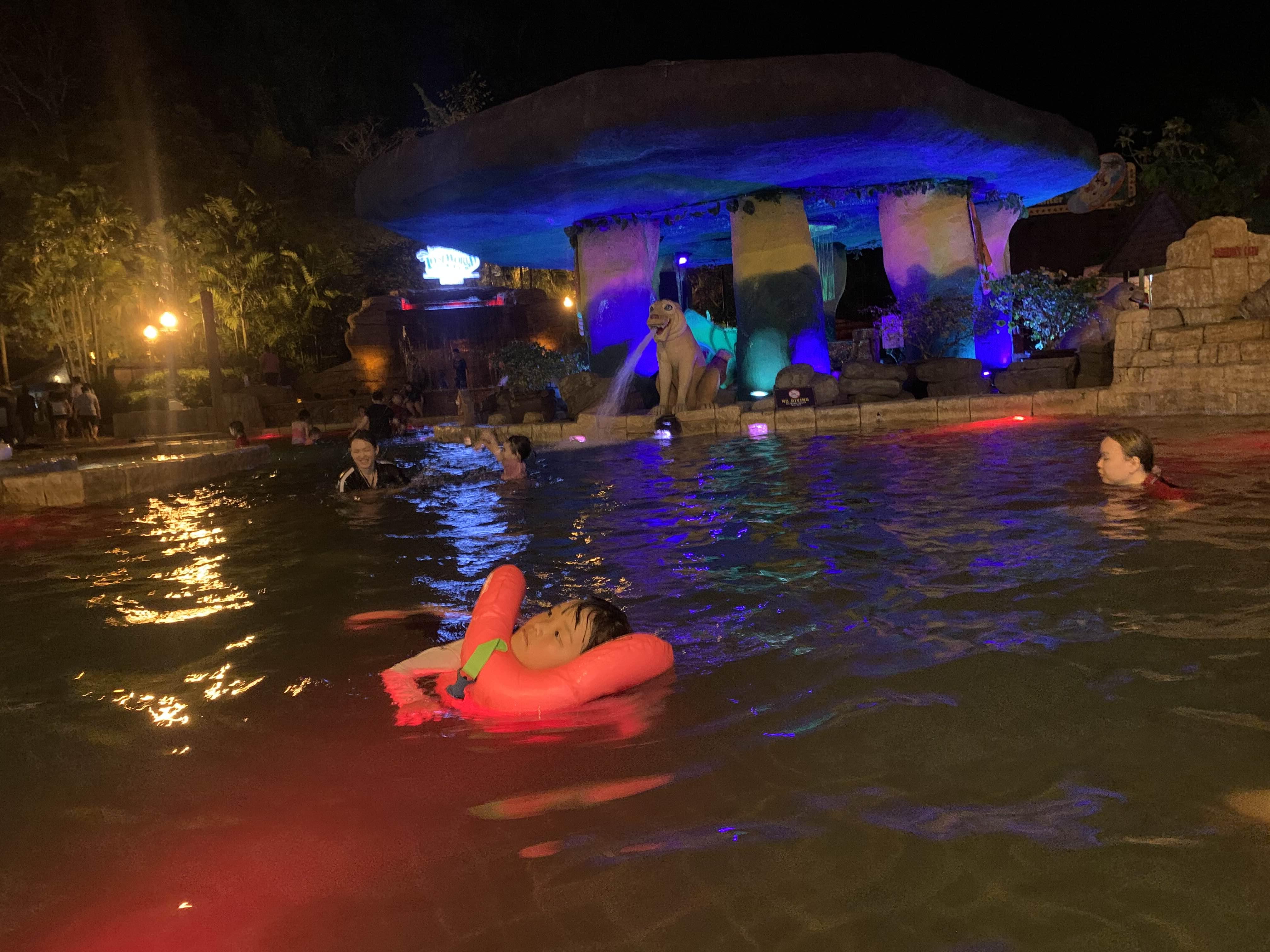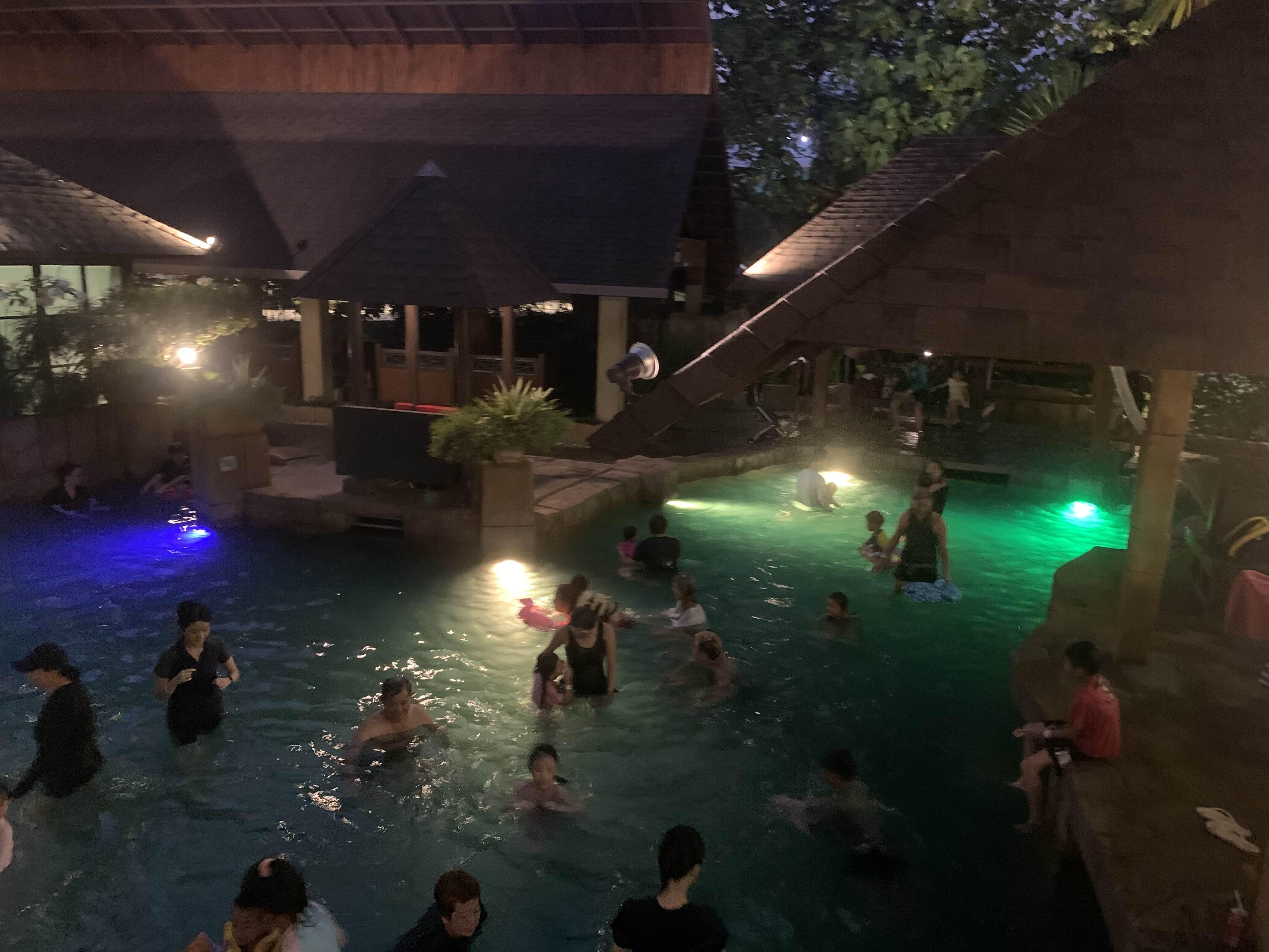 파도풀과 온천에서 6시 이후부터 놀기 시작한다.