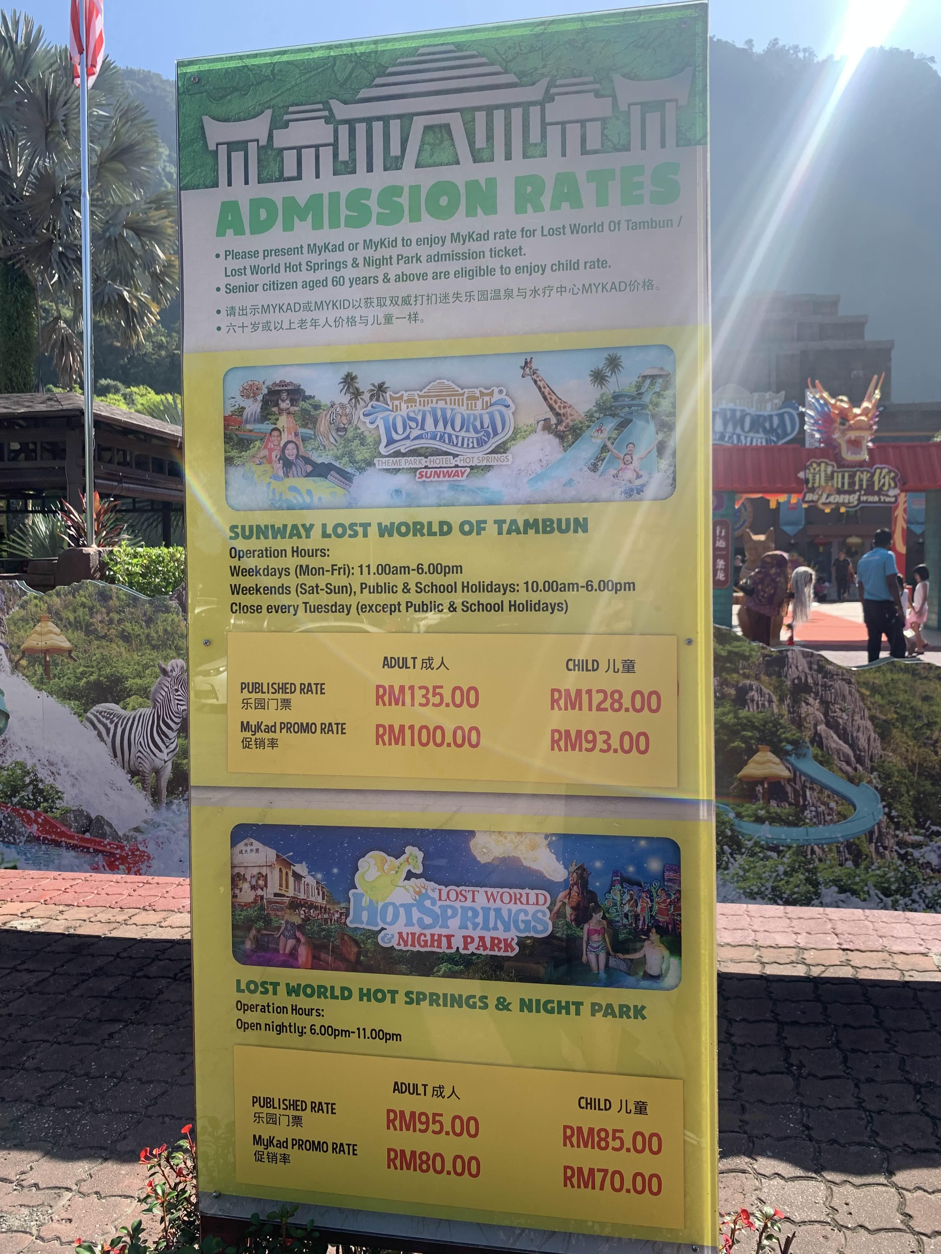 로스트월드에 도착하니, 입장료에 대한 안내문이 보인다.