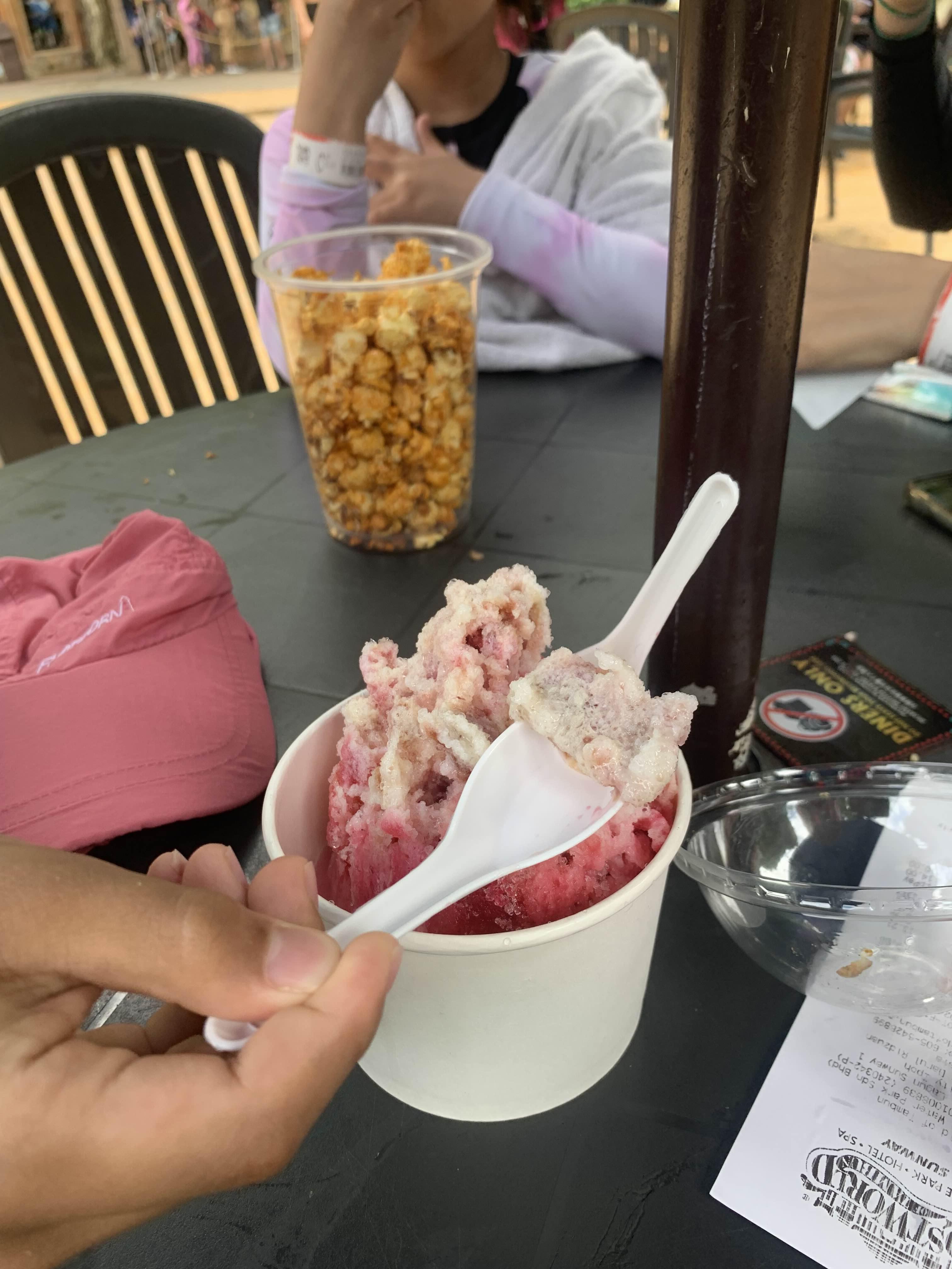 작은 아이가 입맛에 맞는 음식이 없어서..... 팝콘이나 아이스크림 밖에 못 먹는다.