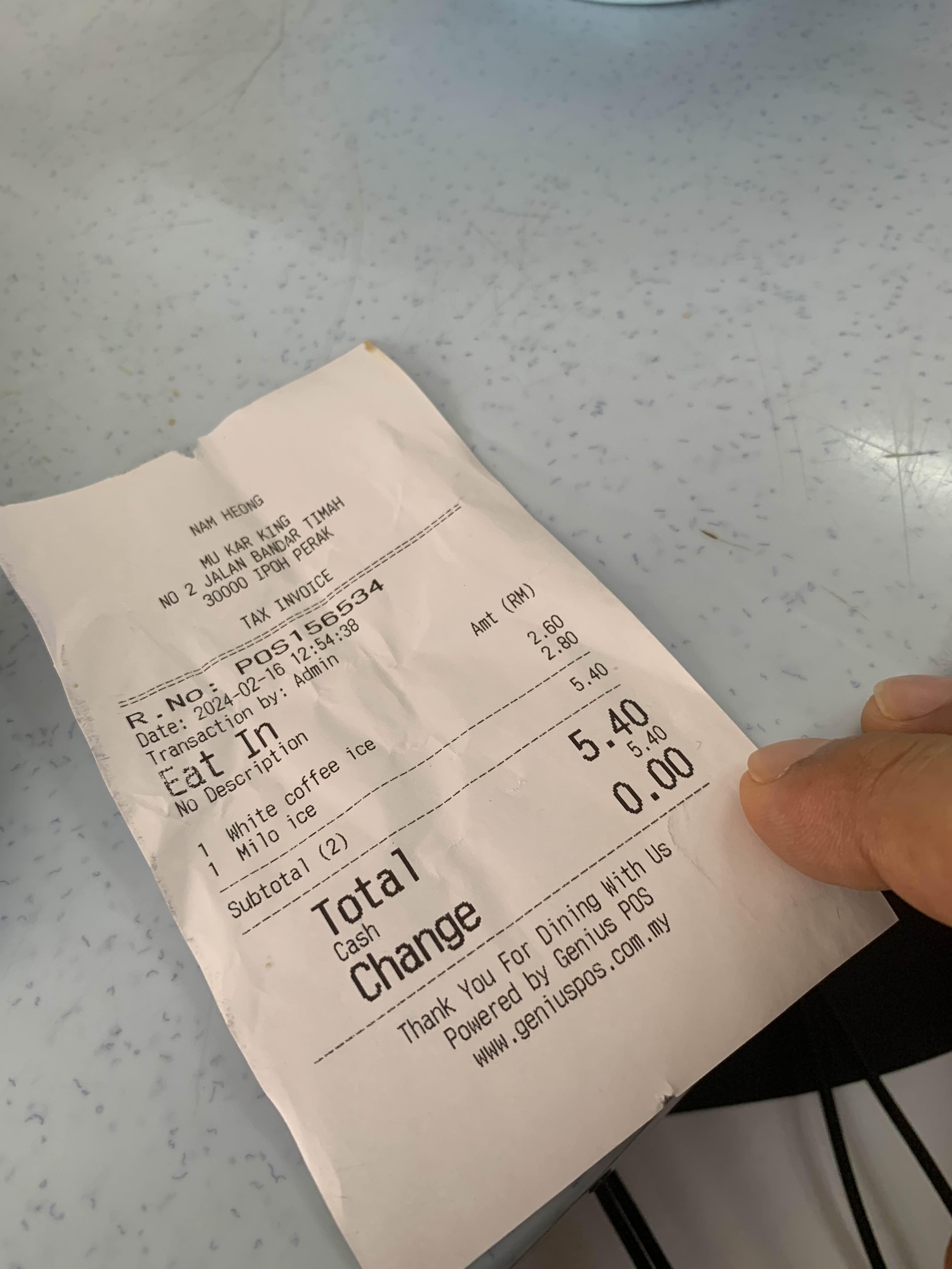 가격은 2.6링깃..... 내 커피보다! 아이들 마일로 아이스가 더 비싸네요.ㅎㅎ