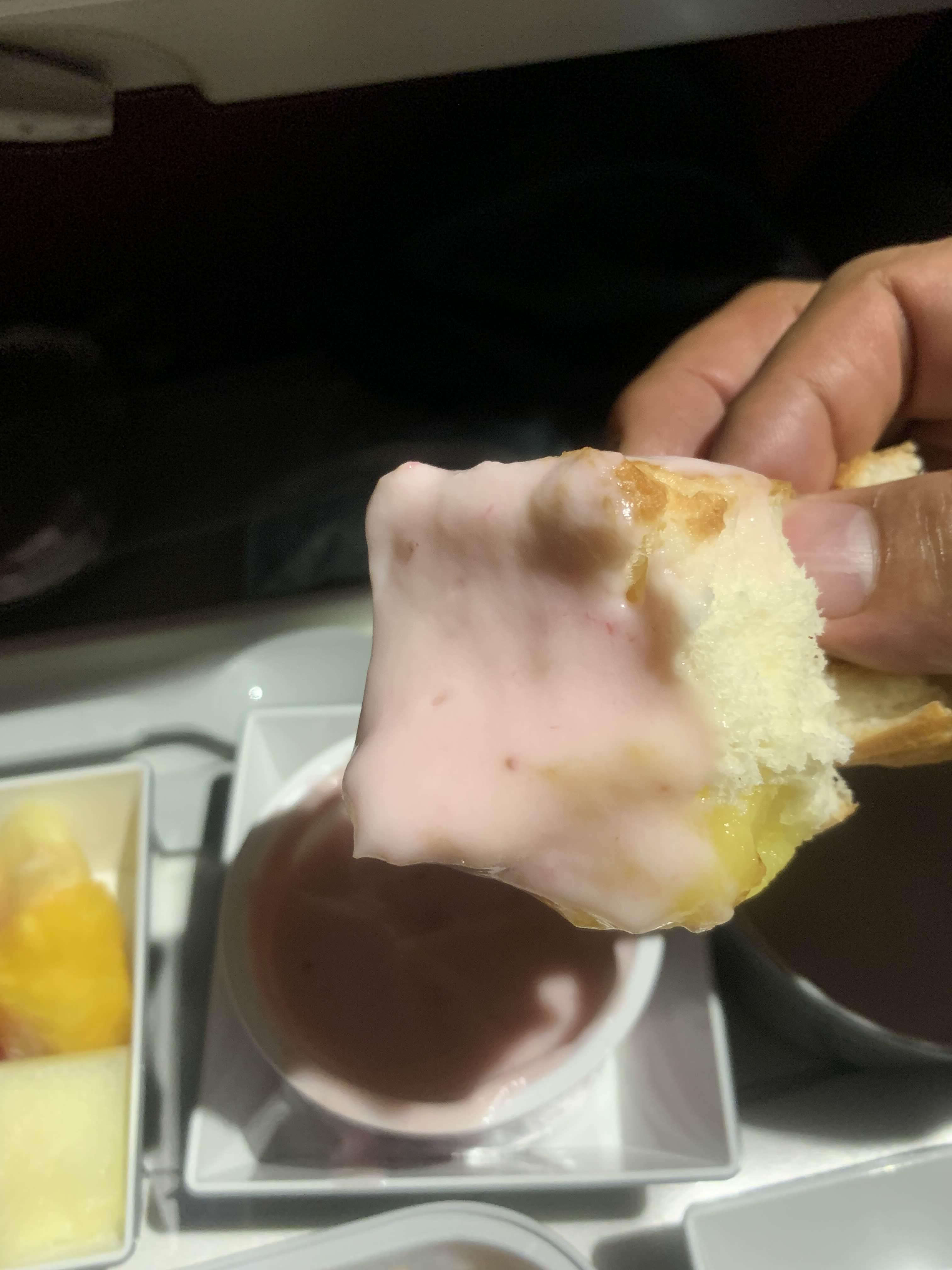 빵은..... 조금 퍽퍽하기는 한데!! 함께 나온 요구르트에 찍어 먹으니 맛나다.
