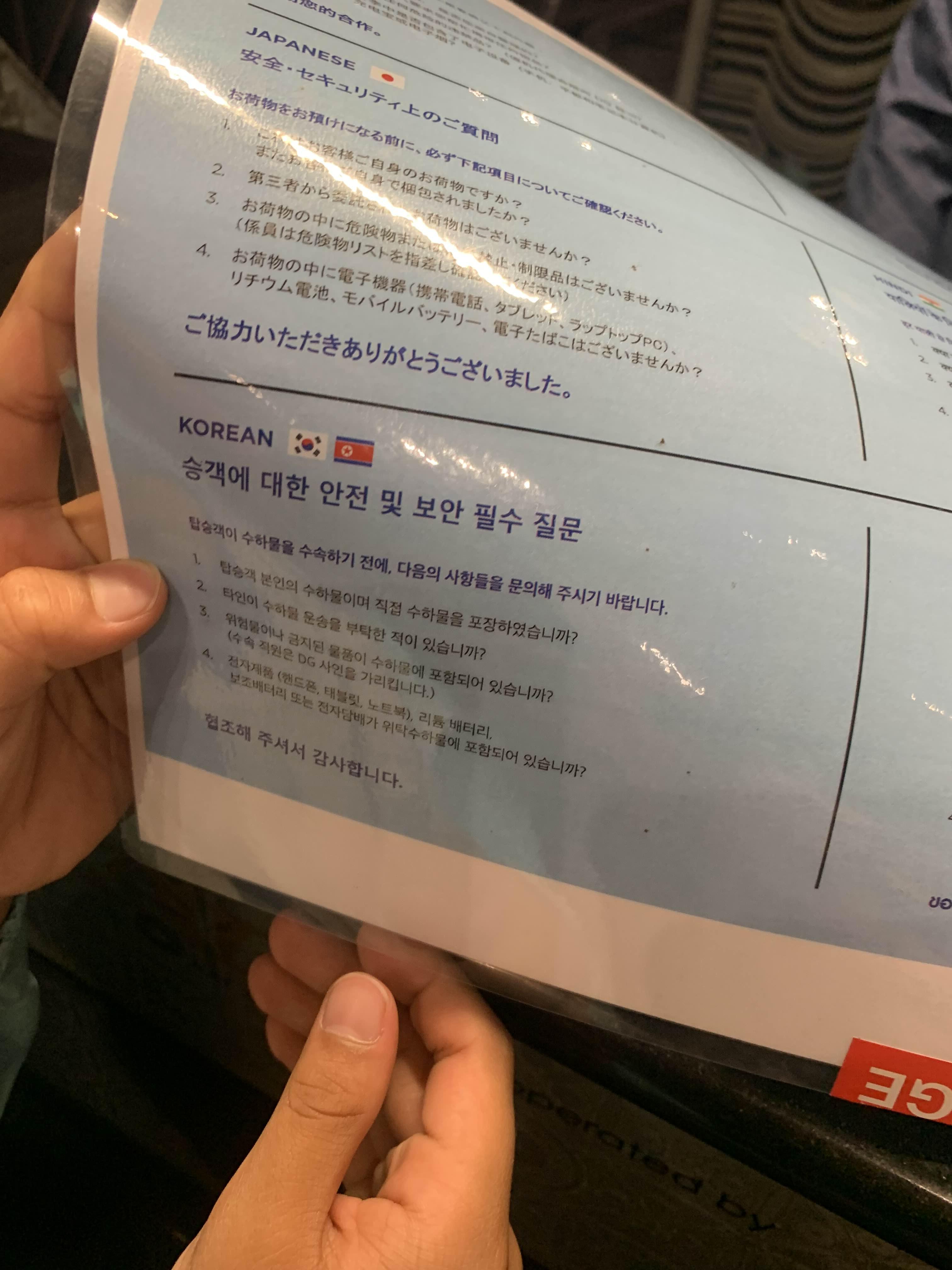 수화물을 맡기는 과정에서 안내문을 보여주신다. ㅎㅎ