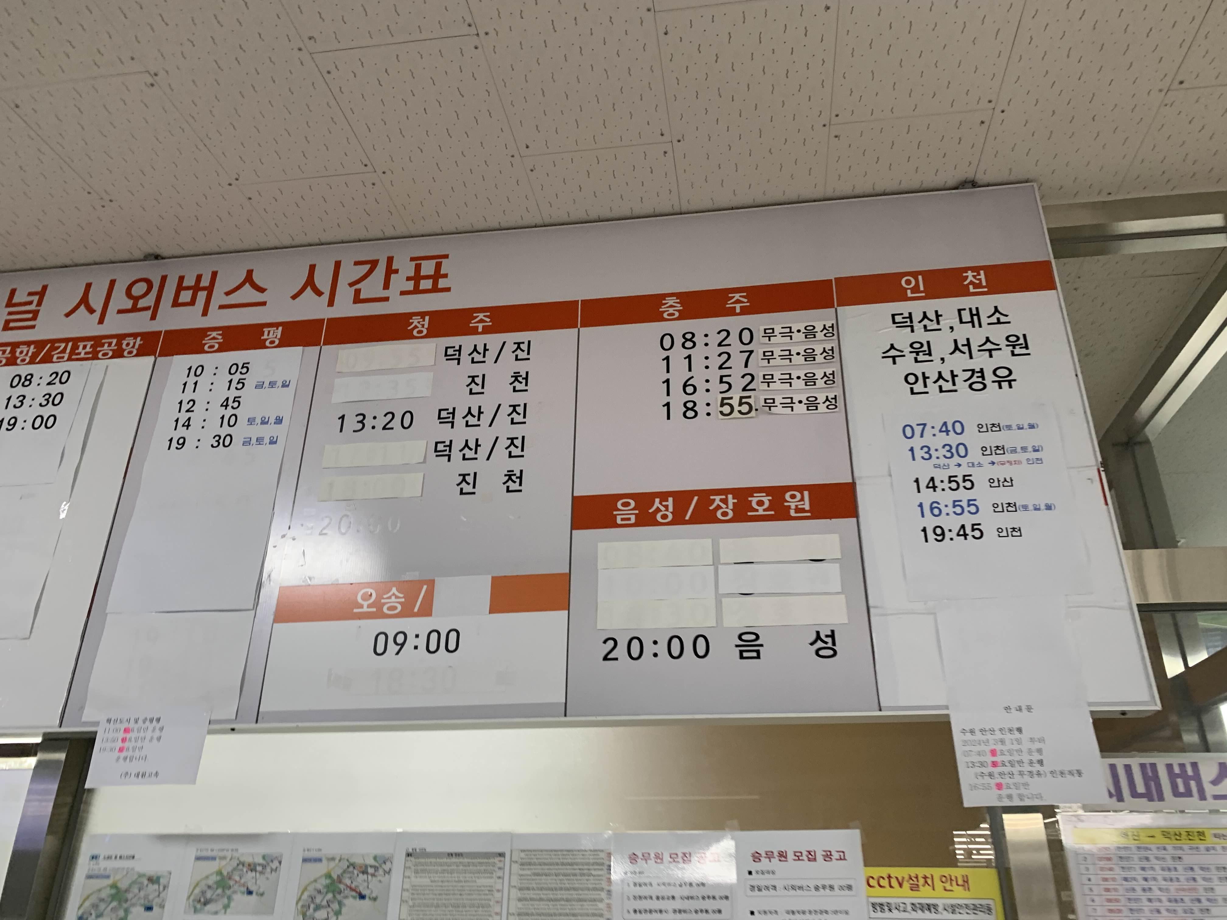 증평, 충주, 오송, 음성/창호원 등 근처를 운행하고 있다.