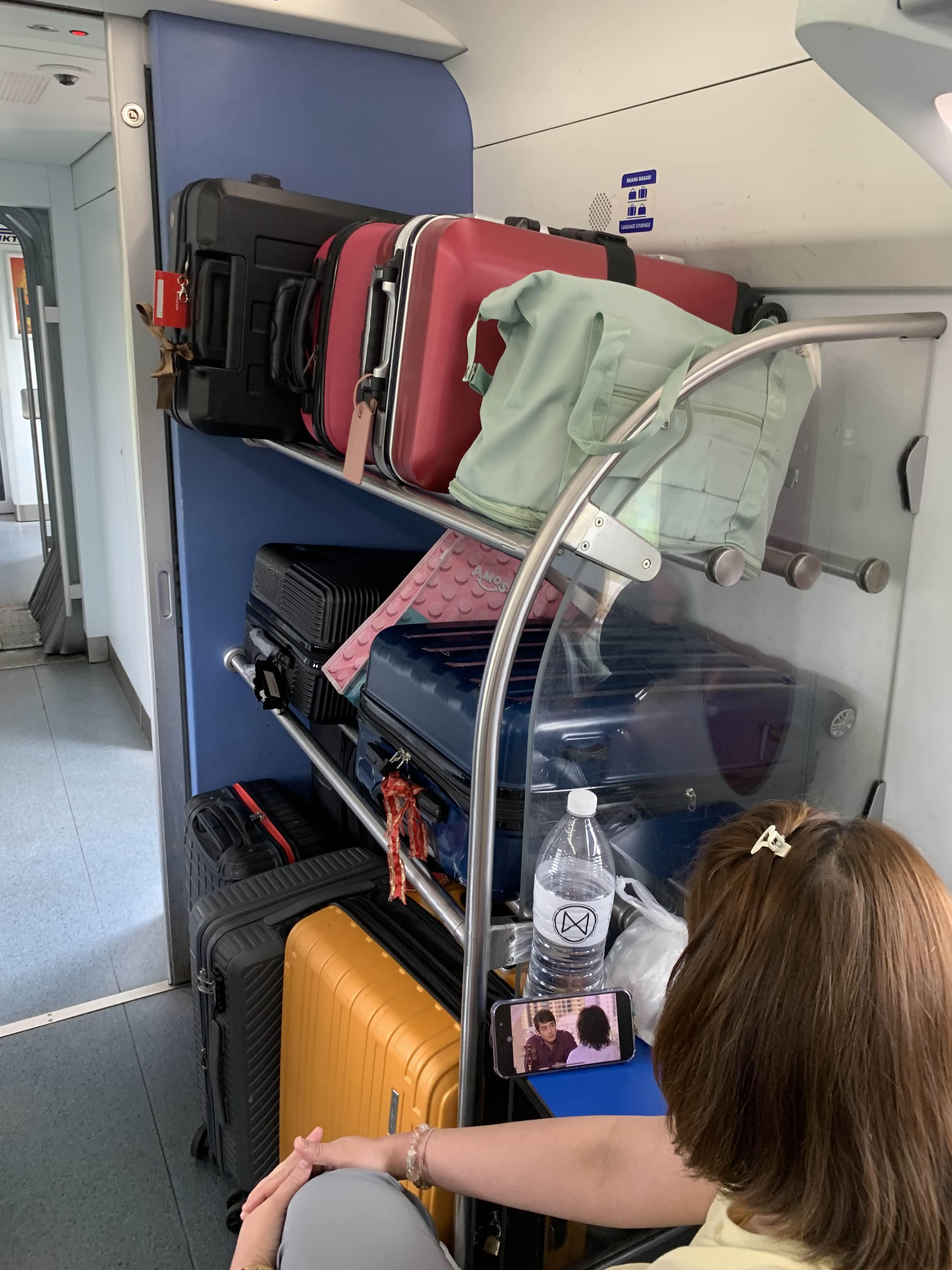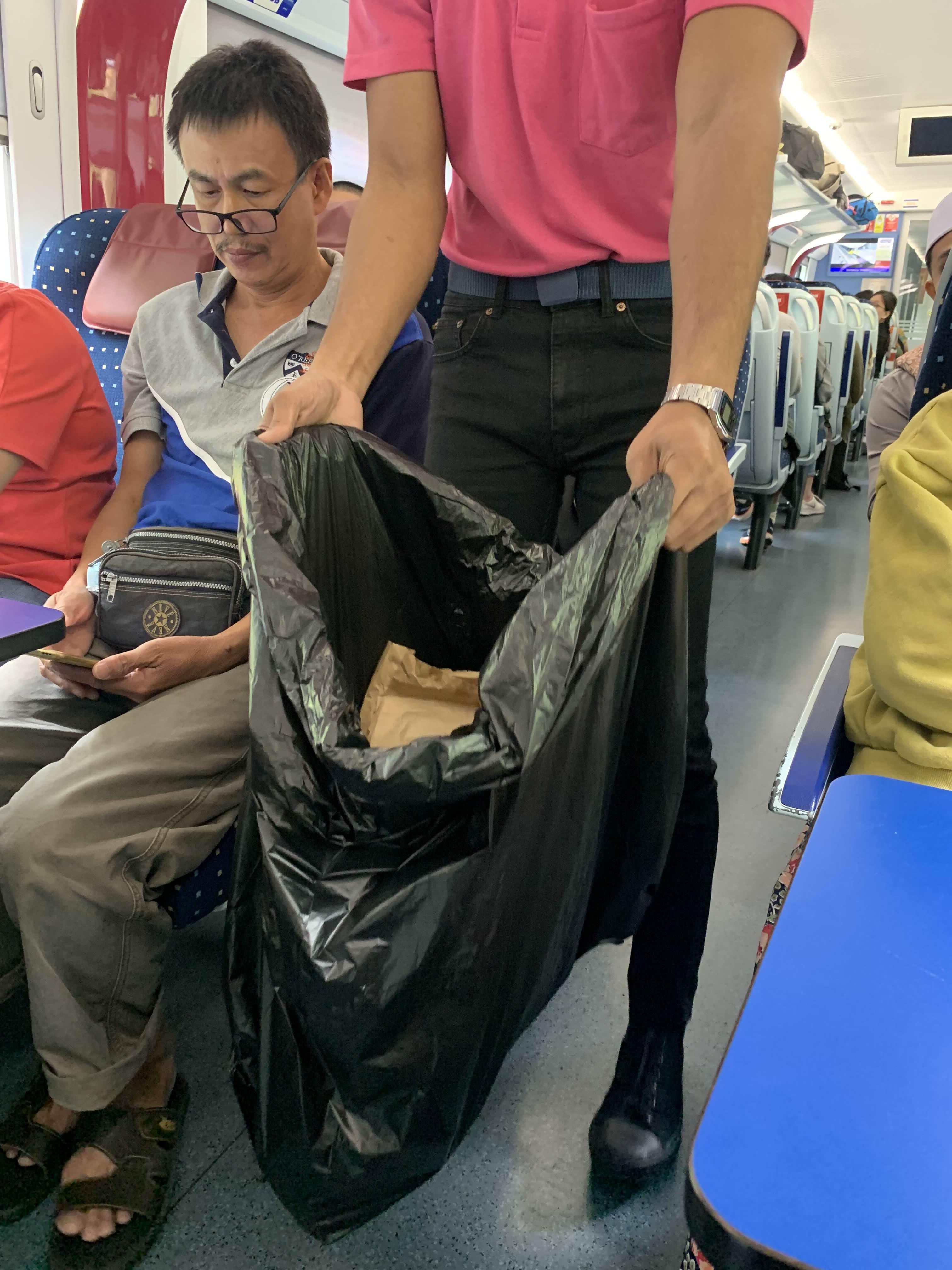 열차는 5호차까지(영문 알파벳 ABCDE로 호차 구분되어 있음) 있으며, 중간의 3호(C호차)에 식당칸을 운행하고 있습니다. 준비해 온 음식을 먹고서 쓰레기통을 찾고 있는데... 쓰레기를 수거하시는 분이 돌아다니시더군요.