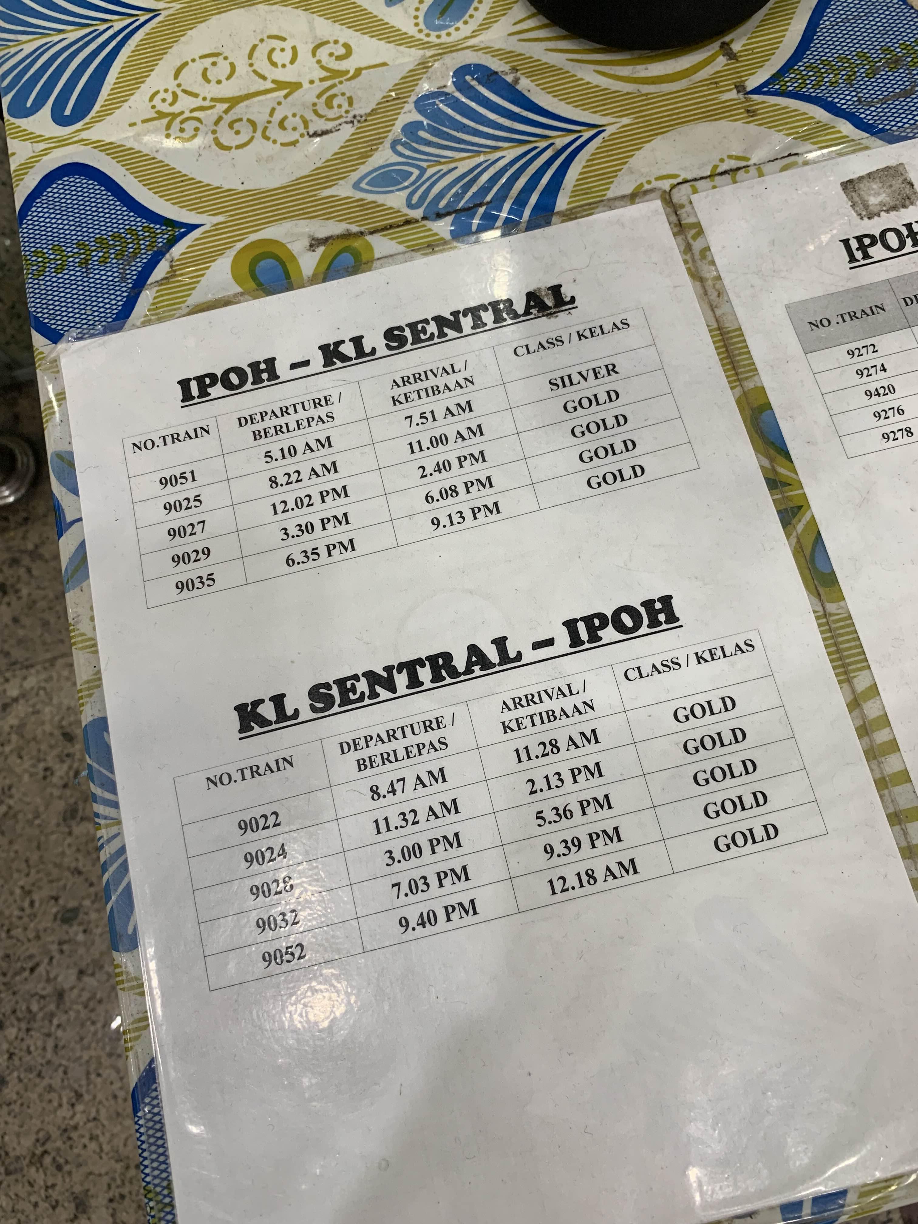 이포에서 쿠알라룸푸르 KL센트럴까지 5편의 기차가 운행하고 있습니다.
