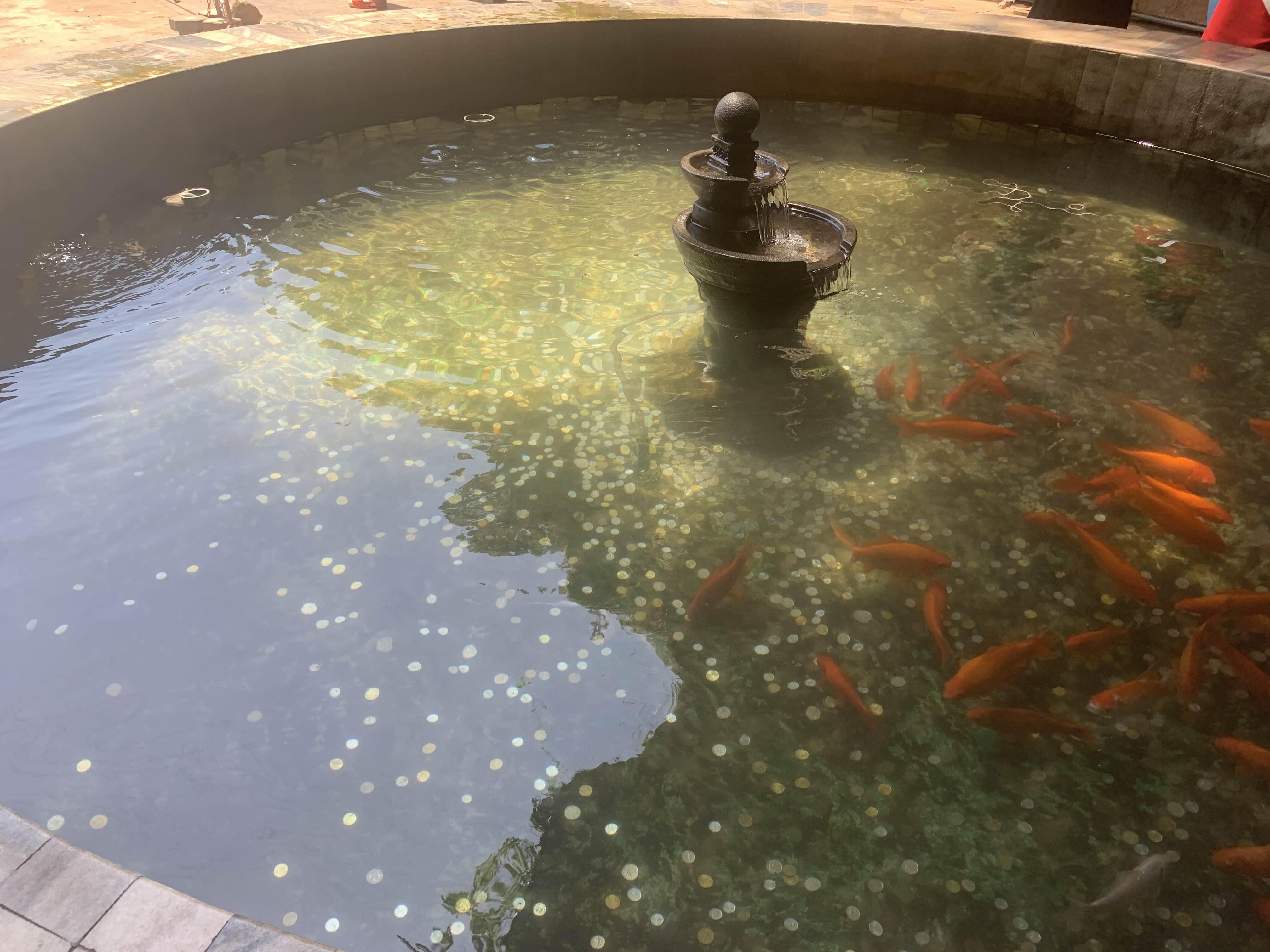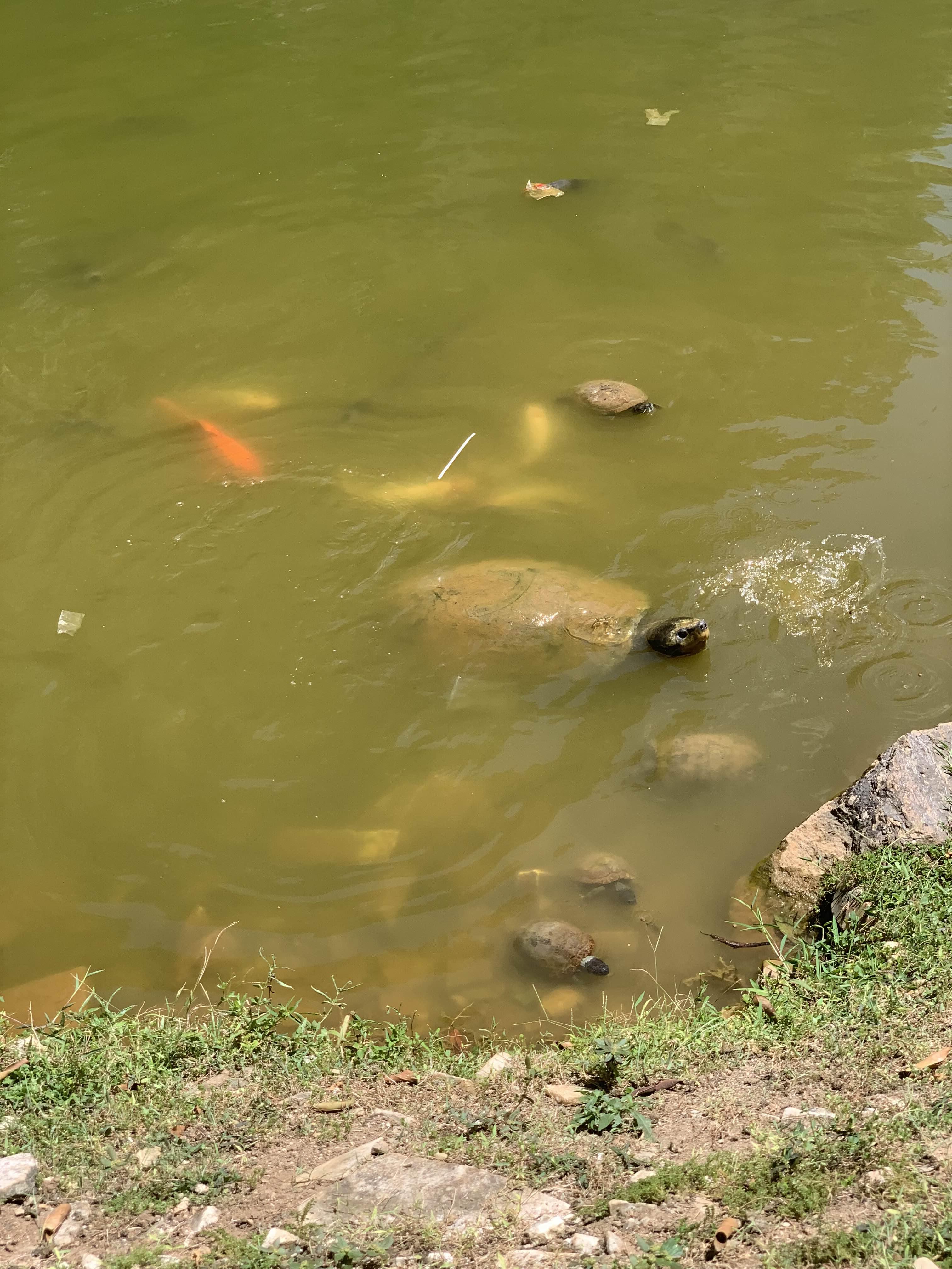 연못에는 자라가 보이는데..... 무슨 자라가 왕거북이 크기만큼 크다.