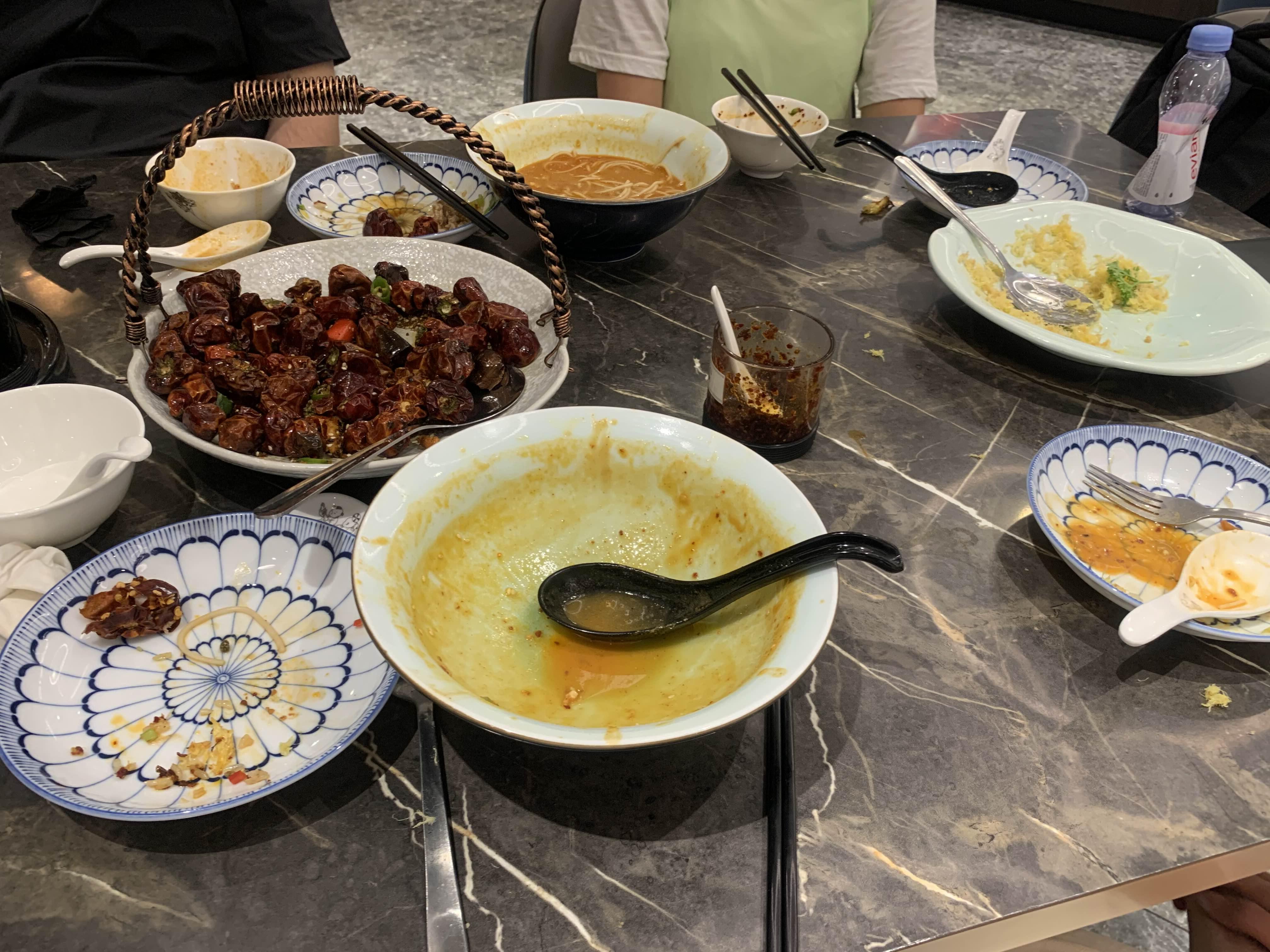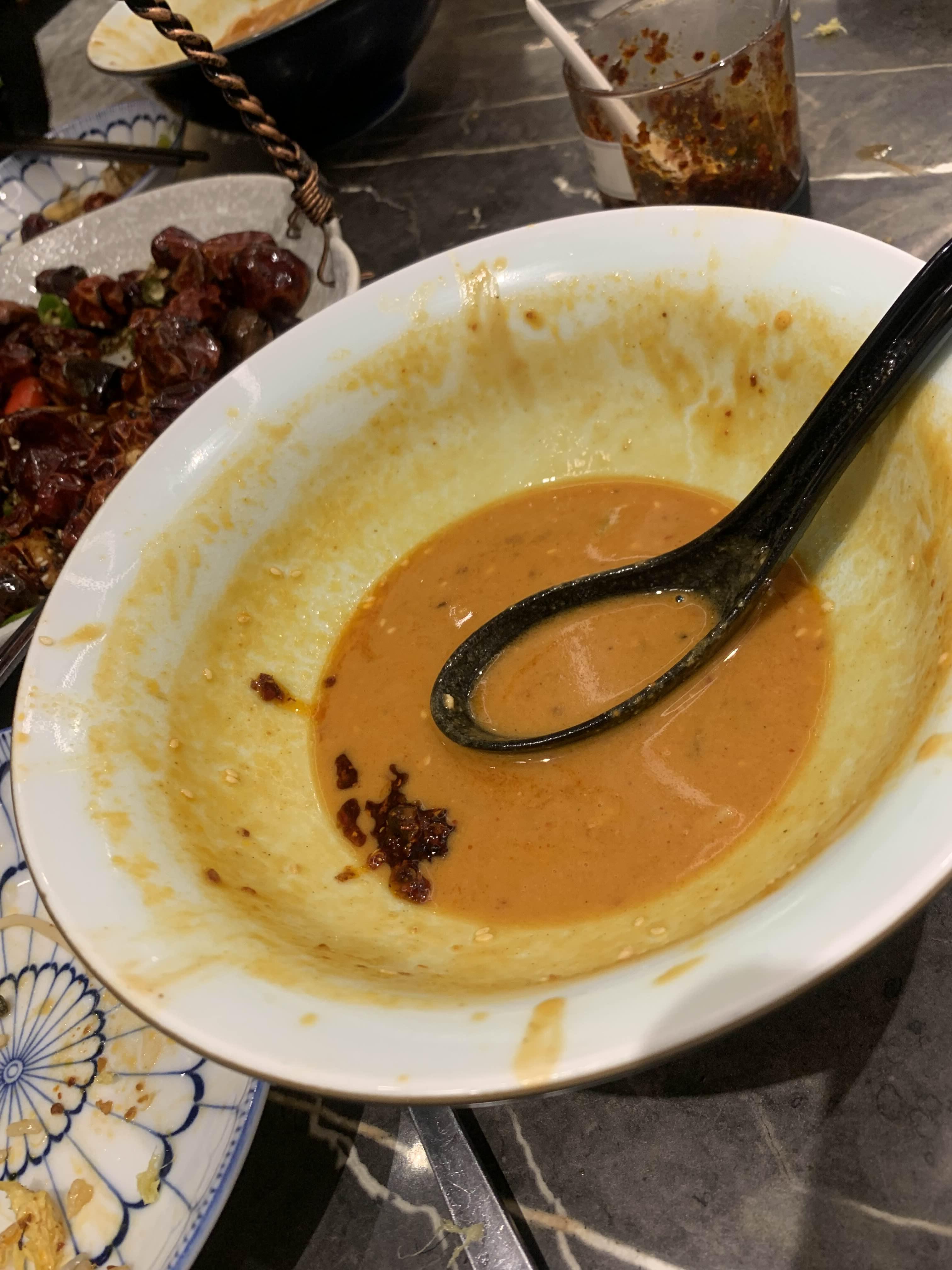 다른 음식과 마찬가지로 고추기름 소스를 듬뿍 넣어 먹으니 먹을만하다.