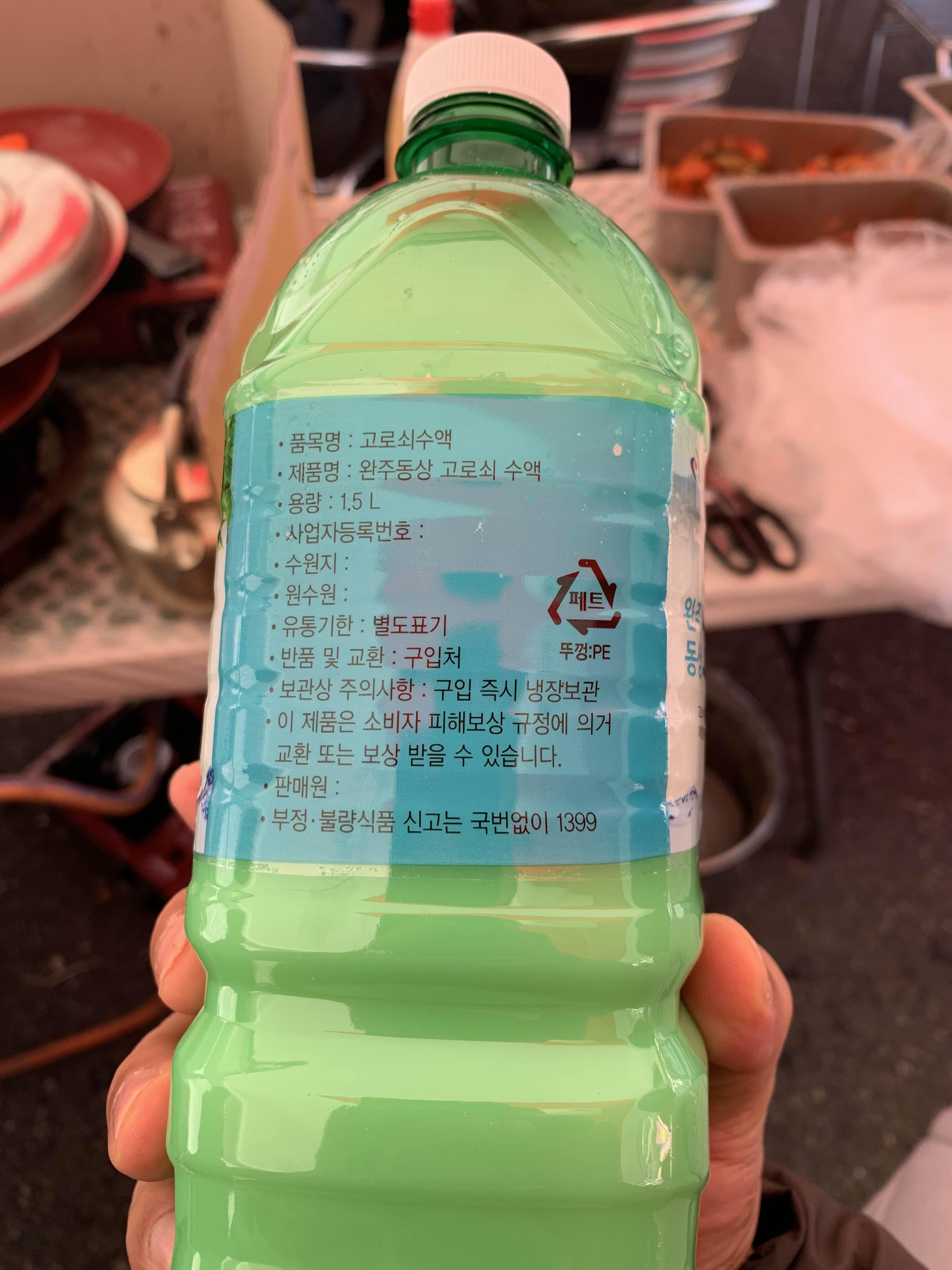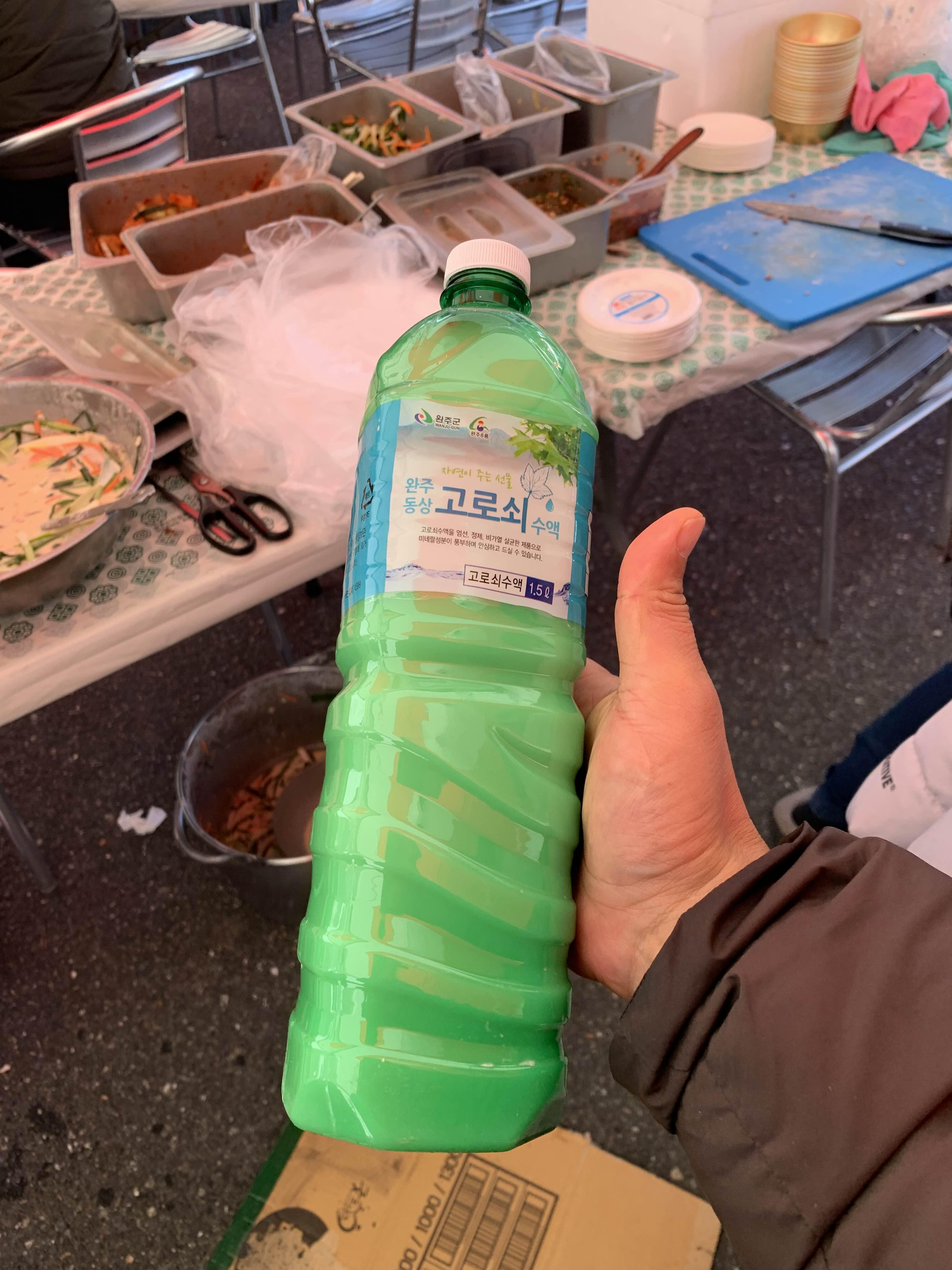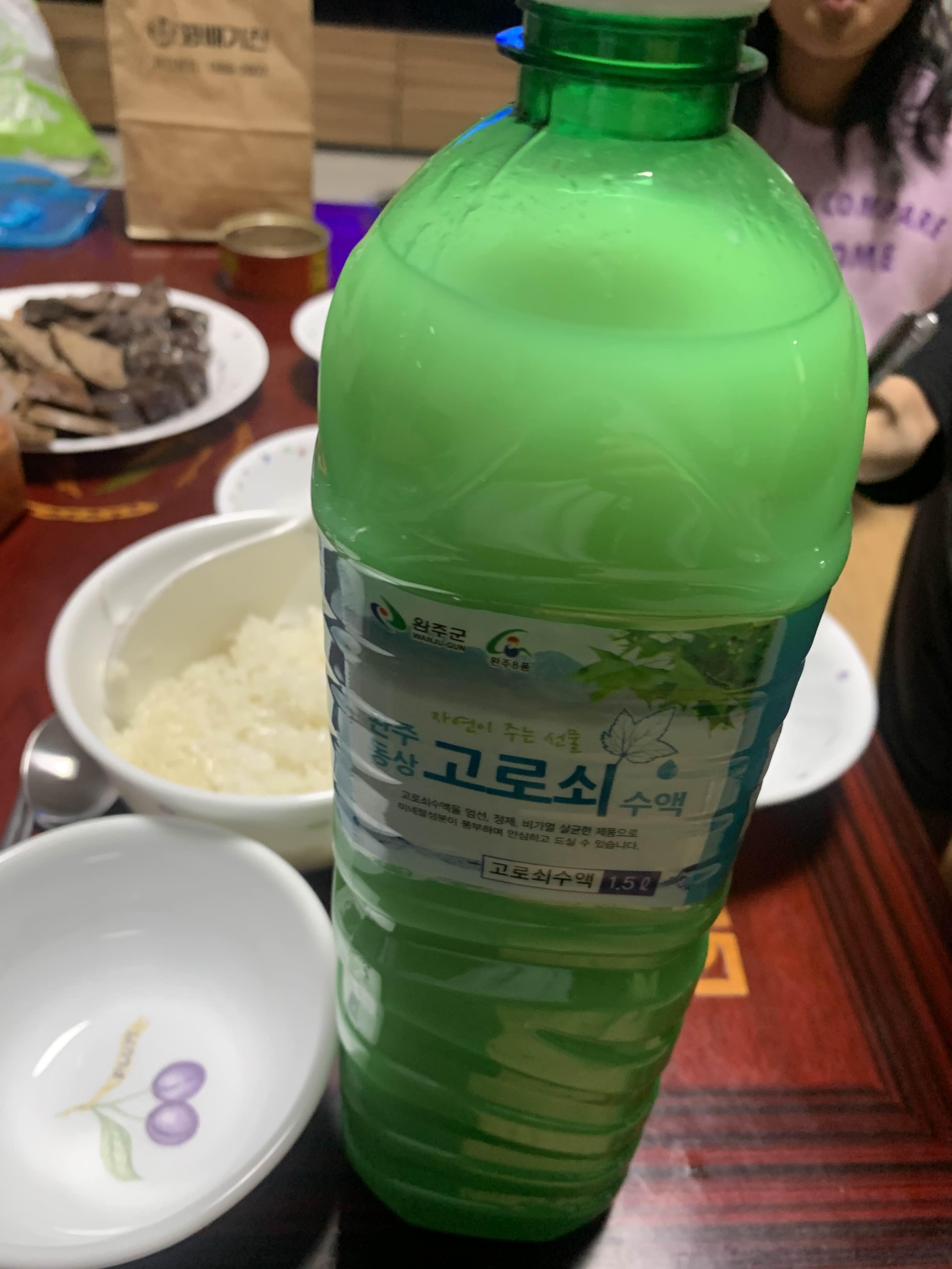 막걸리에 고로쇠를 썩어서 그런지... 막걸리 끝맛이 쓰다.