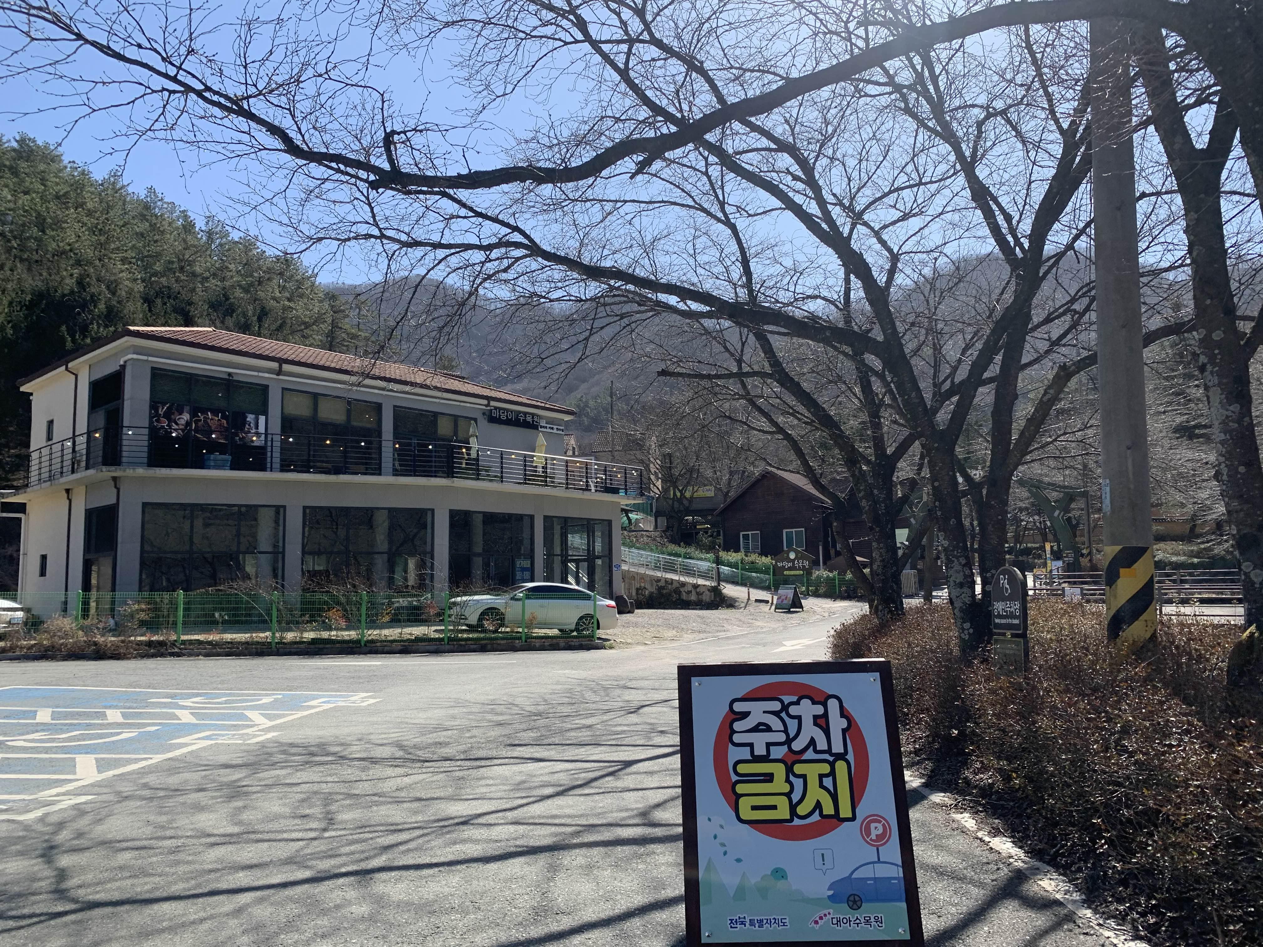 주차장에서 자동차를 주차하고, 수목원 안쪽으로 조금 걸어가야 한다.
