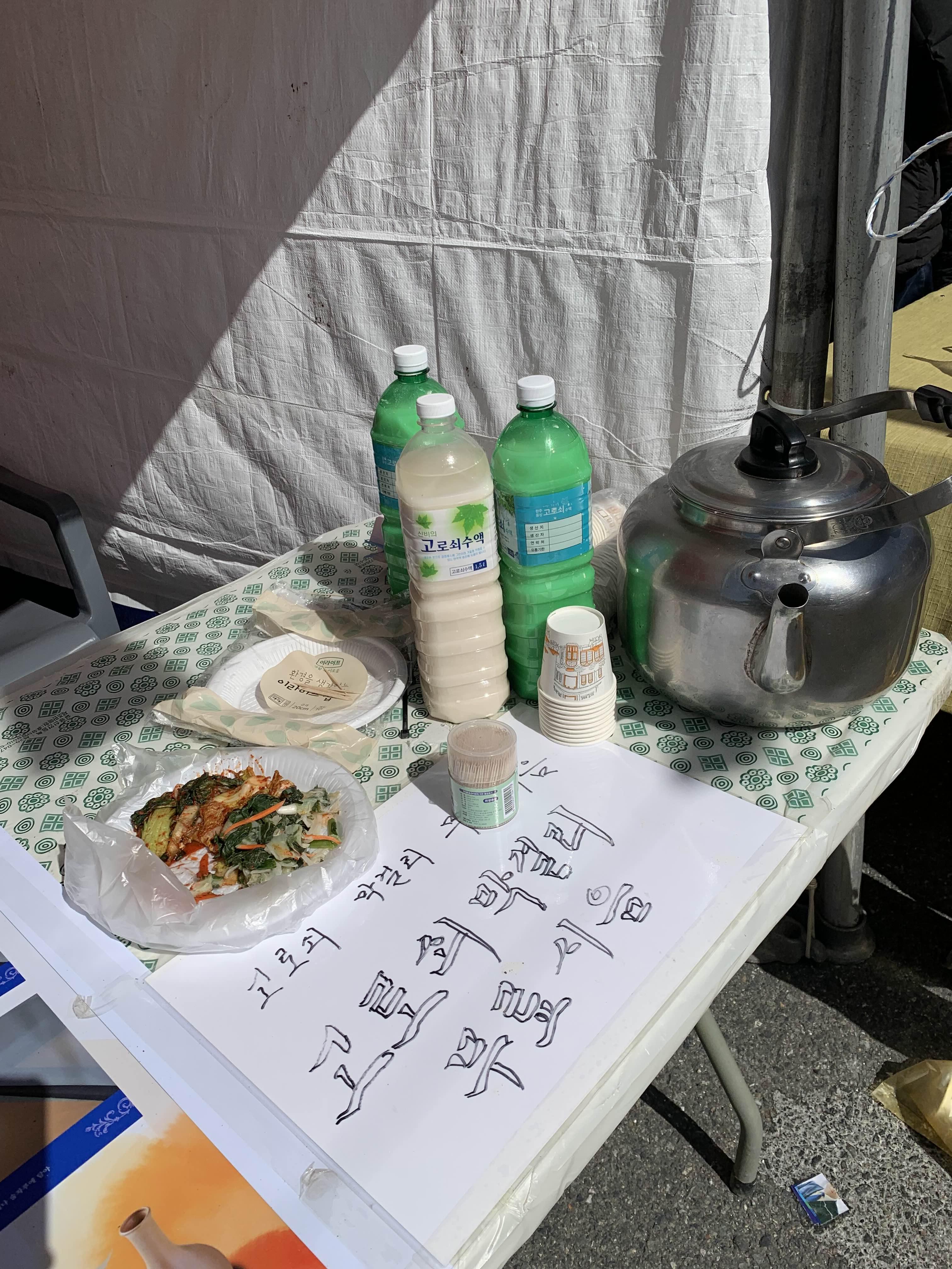 고로쇠 막걸리 무료시음!! 막걸리의 끝맛이 시큼하다.