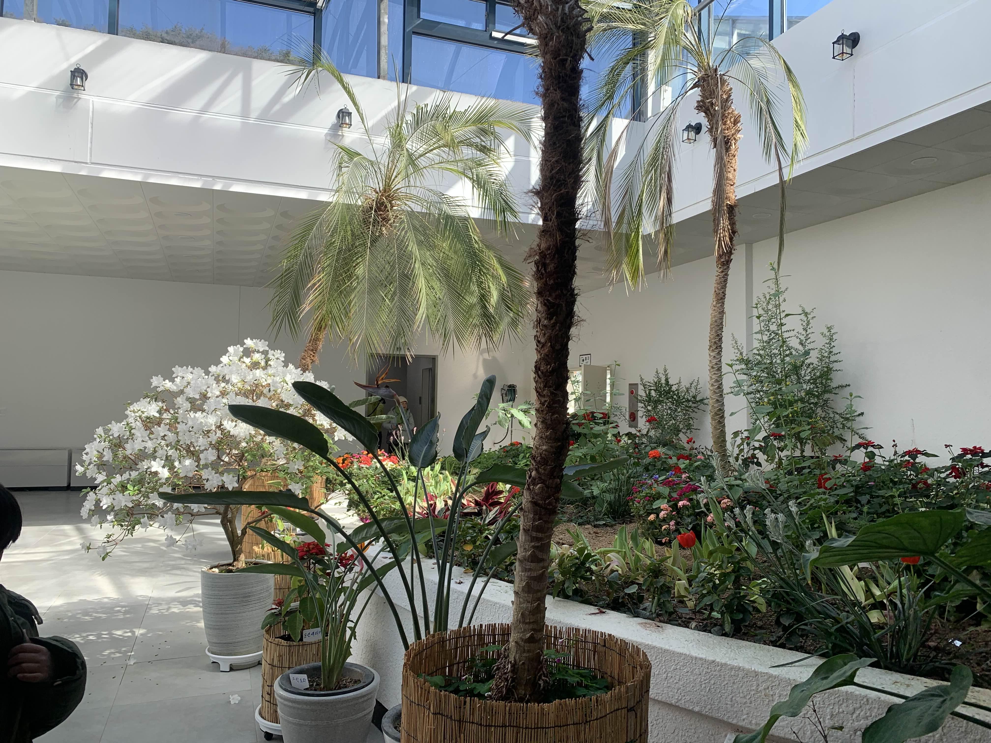열대 식물들이 천정에 막혀서, 더 자라지 못한다.