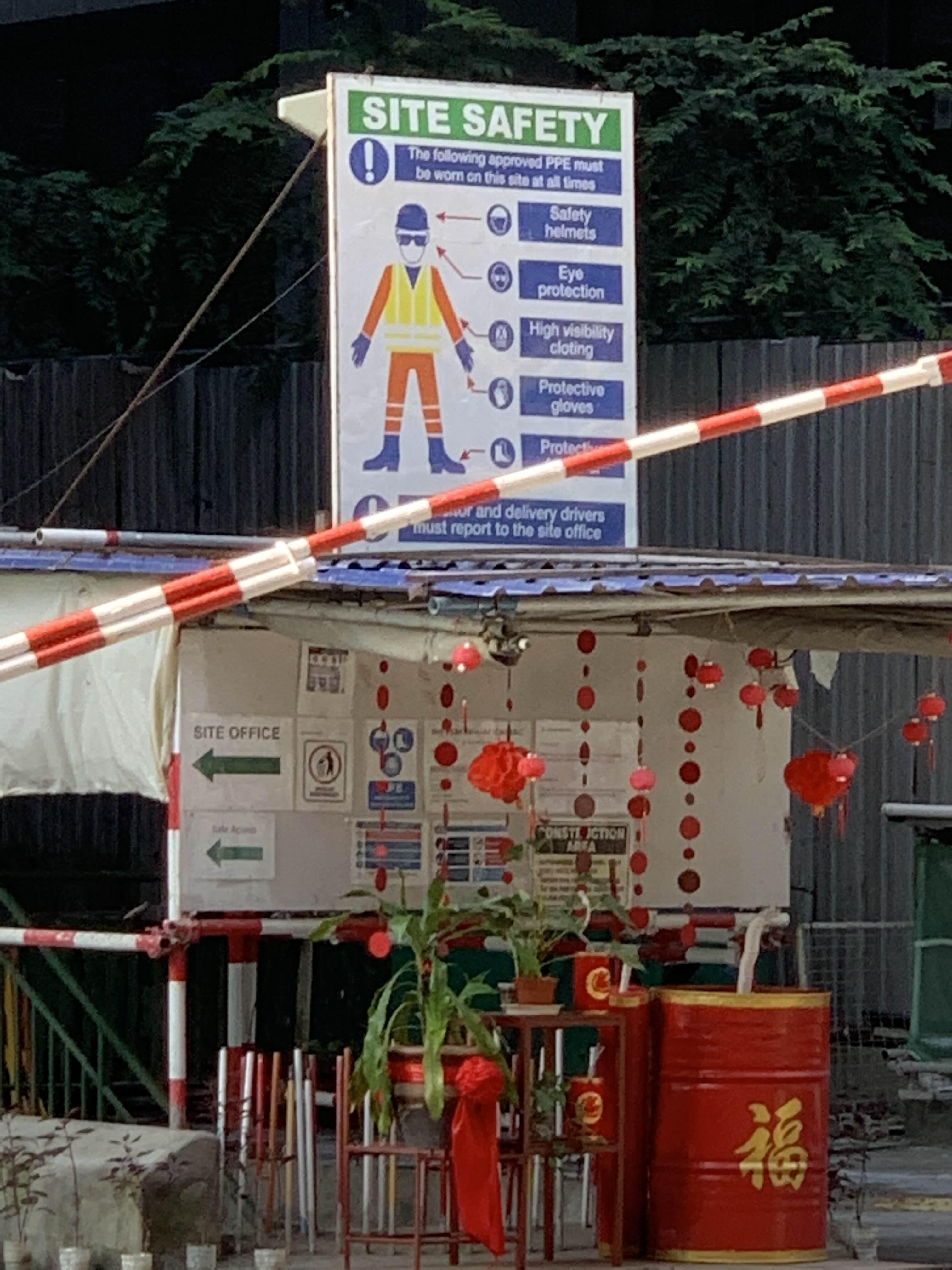 공사현장이 눈에 들어온다. 안전보호구 착용(안)이 나온다.ㅎㅎ