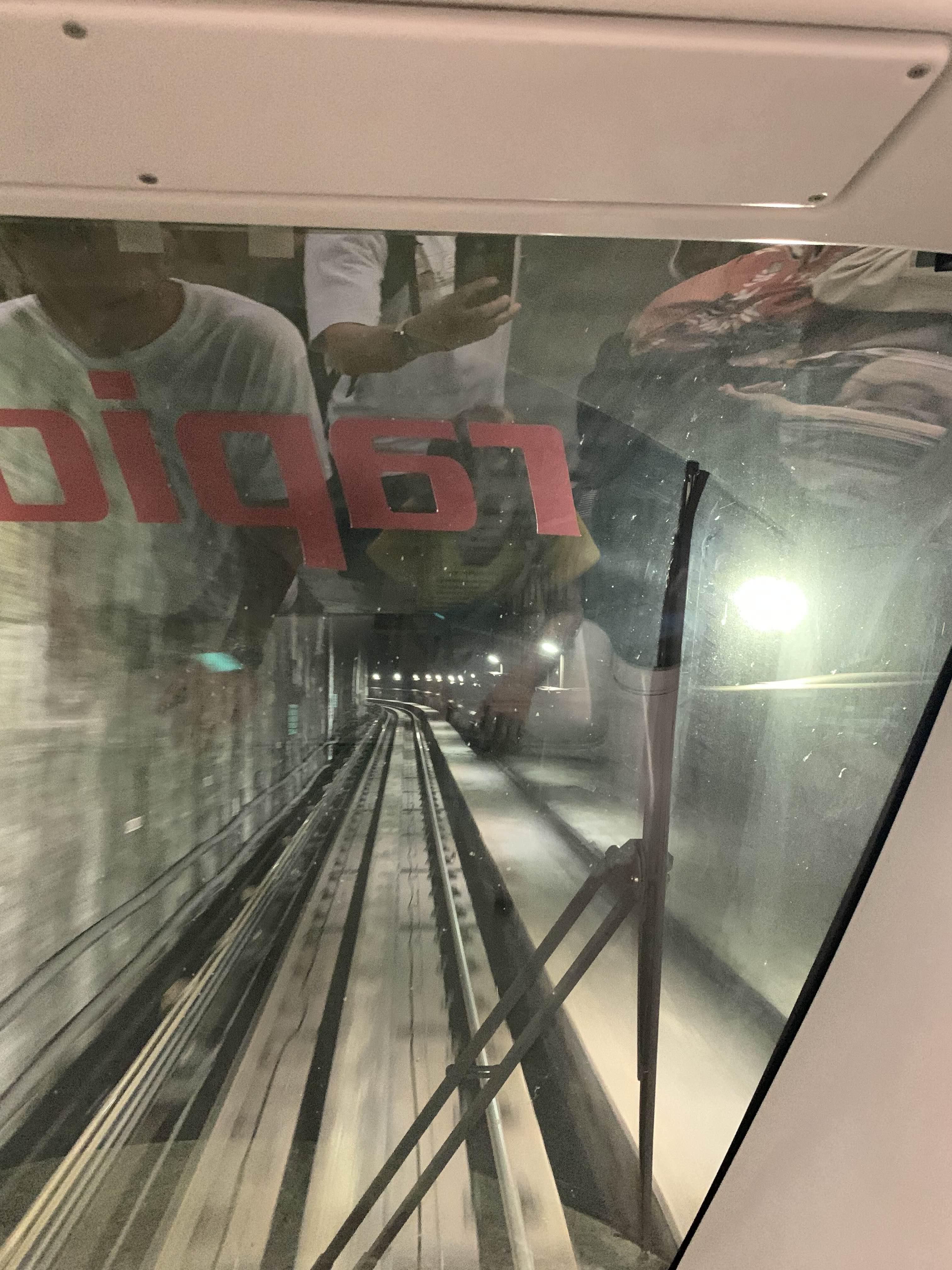 전철을 탑승했는데, 전철 앞쪽이 오픈되어 있다.