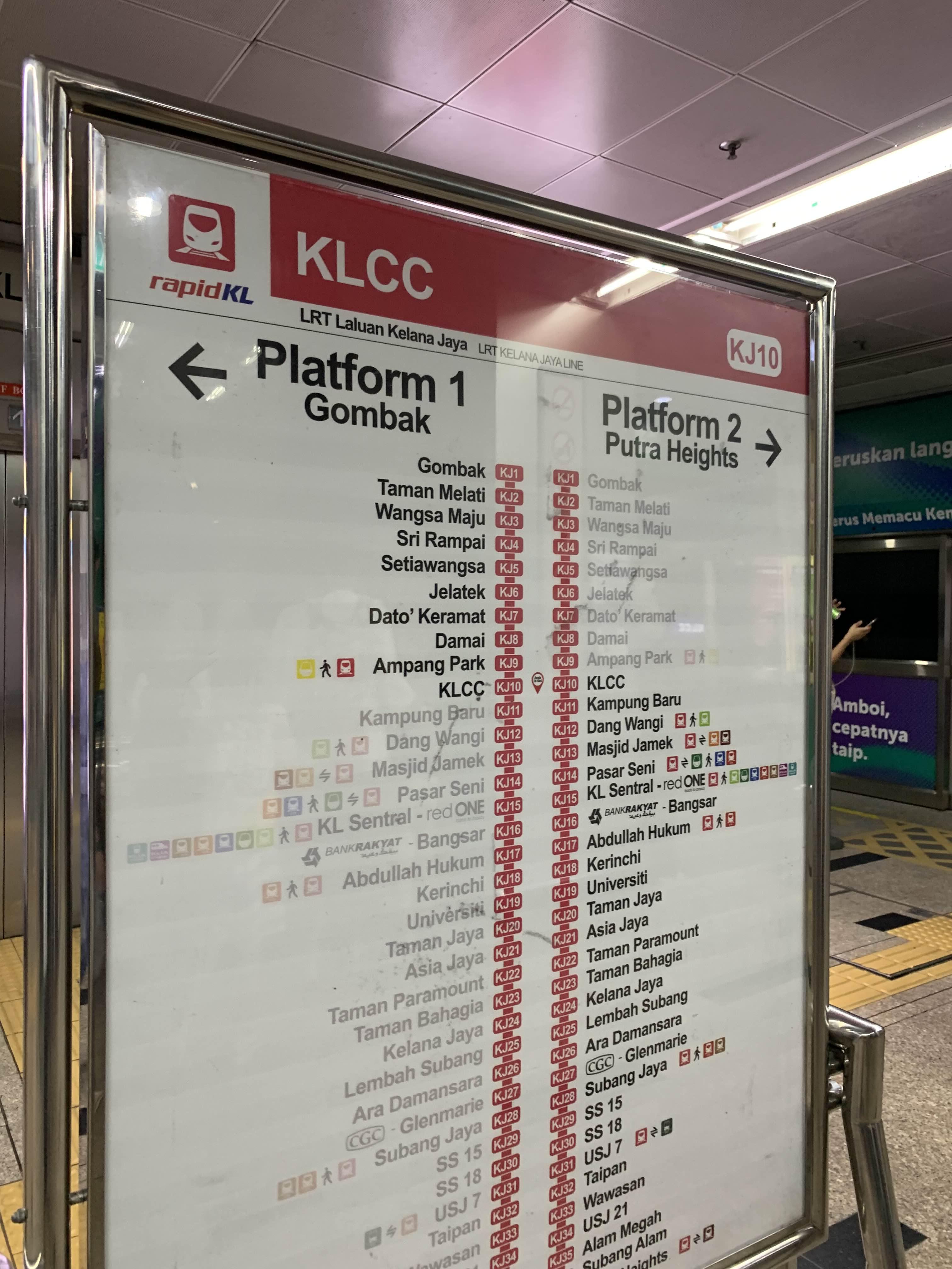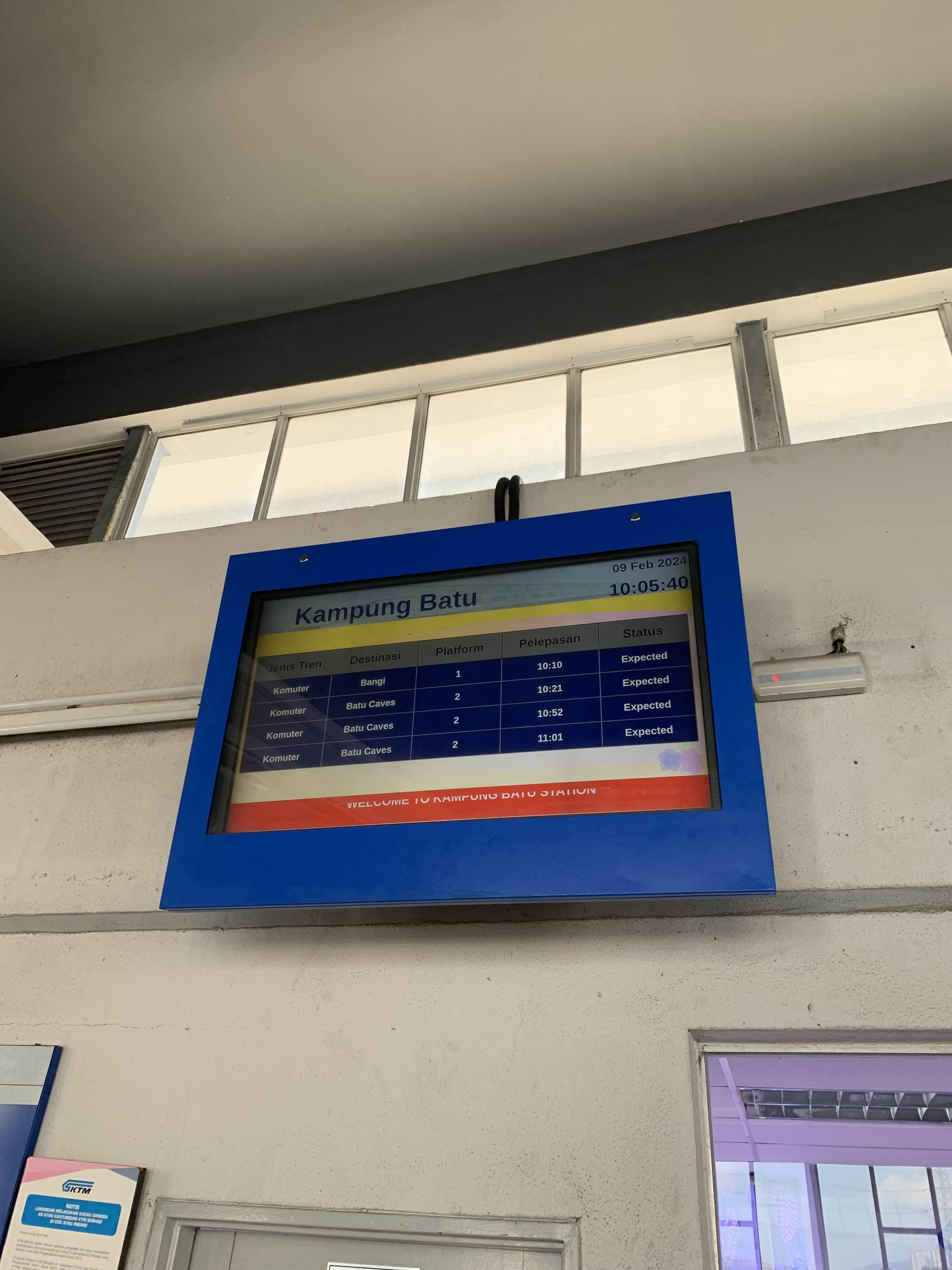 전철 시간을 확인하고 탑승장소로 이동한다. 한 정거장 이동하면, 목적지인 바투동굴이다.